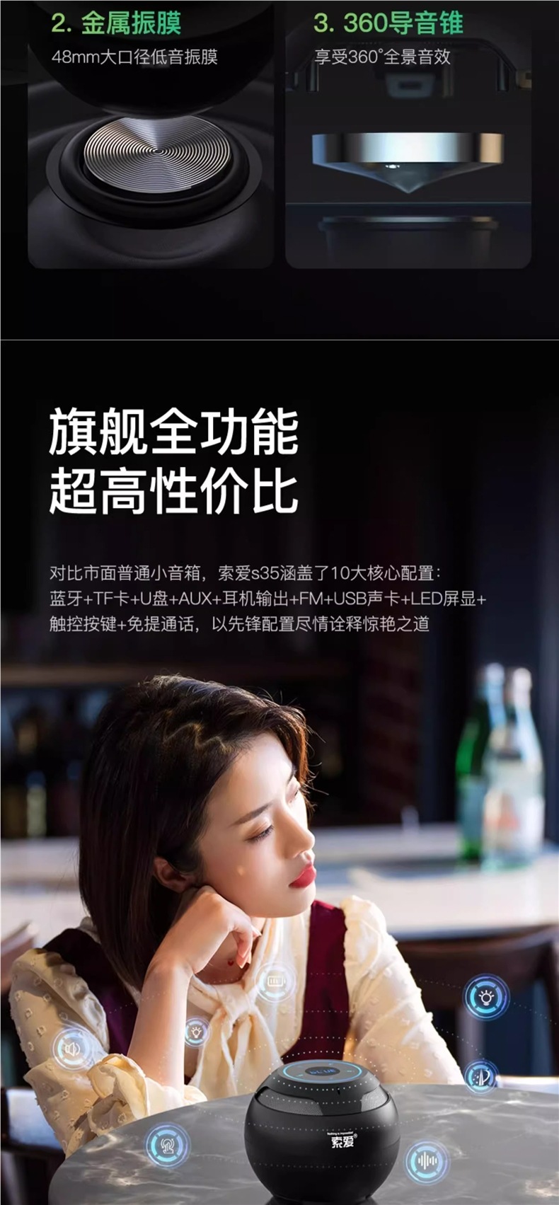 S35 오디오 블루투스 스피커 고품질 홈 무선 소형 스마트 자동차 미니 서브 우퍼스토어 가기