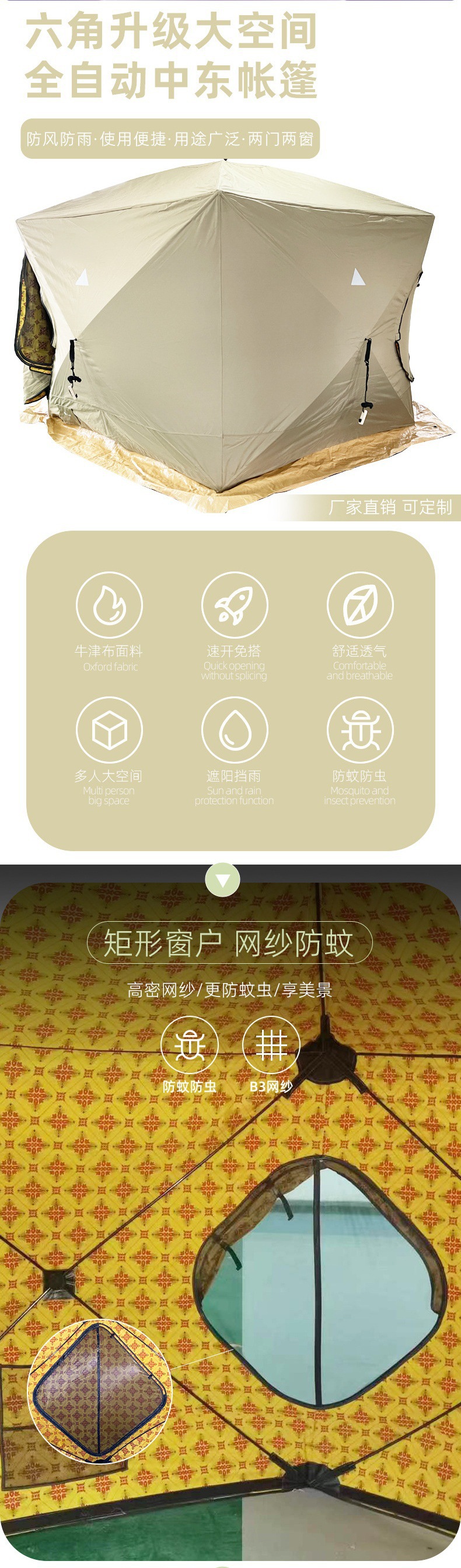 캠핑 텐트 육각형 자동 빠른 설치 접이식 중동 자외선 차단 캠핑 텐트 넓은 공간 캠프 자외선 차단 및 단열스토어 가기