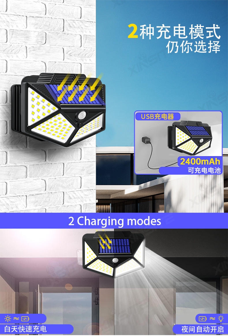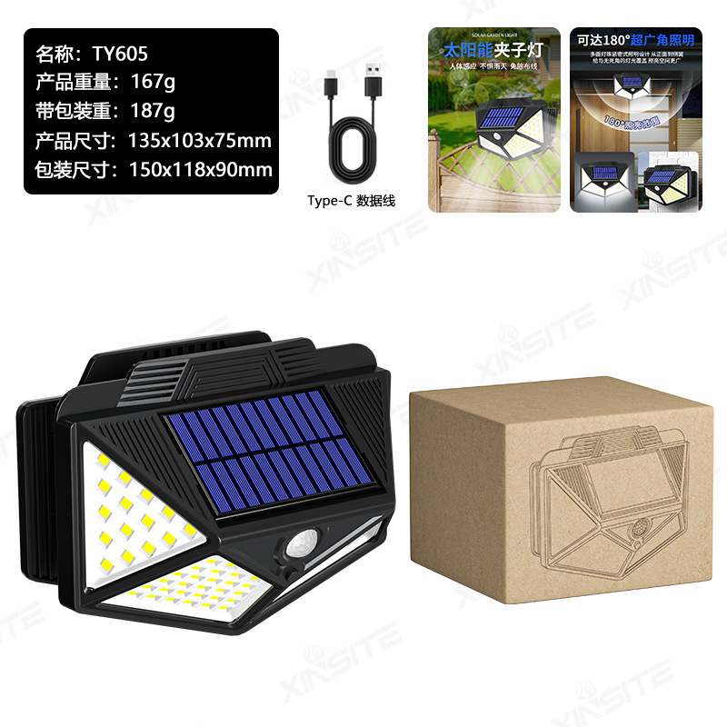 국경 간 새로운 태양 광 정원 조명 가정용 고휘도 유도 벽 조명 다기능 클립 조명 비상 야외 조명