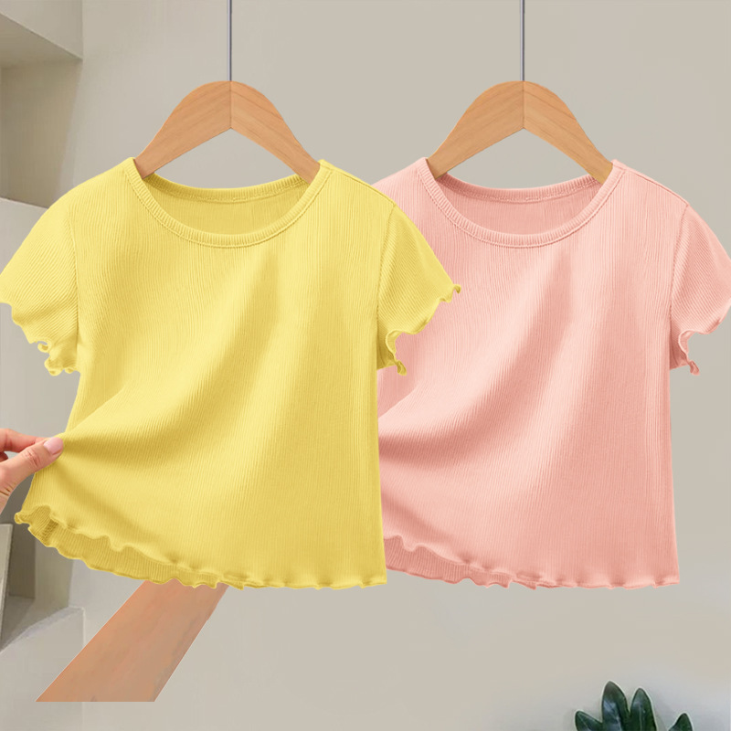 여자 반팔 2025 여름 새 스타일 아기 소녀 티셔츠 여름 어린이 여름 옷 소녀 여름 모달 스타일 아동 의류스토어 가기