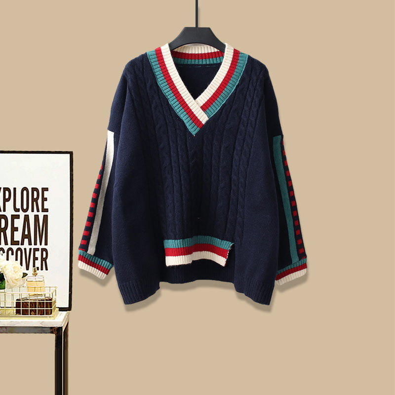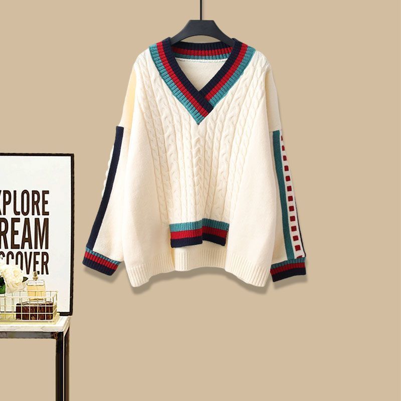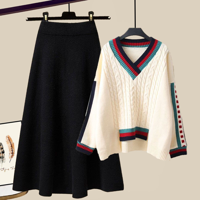 플러스 사이즈 가을 겨울 세트 여자 2025 새로운 게으른 느슨한 스타일 니트 스웨터 여성용 슬림 핏 스커트 투피스 세트스토어 가기