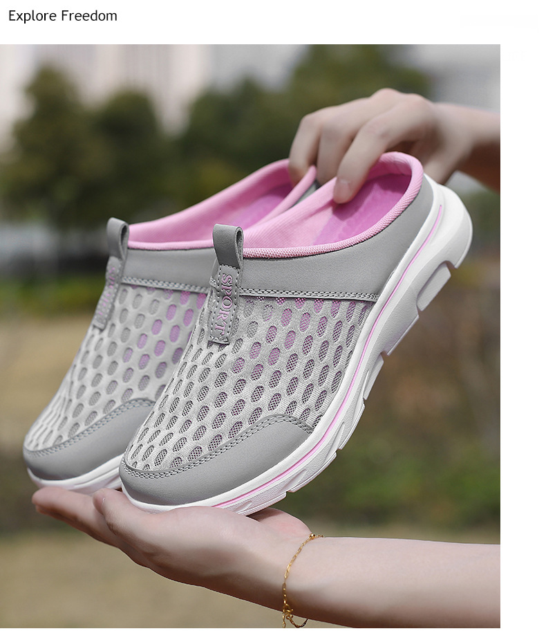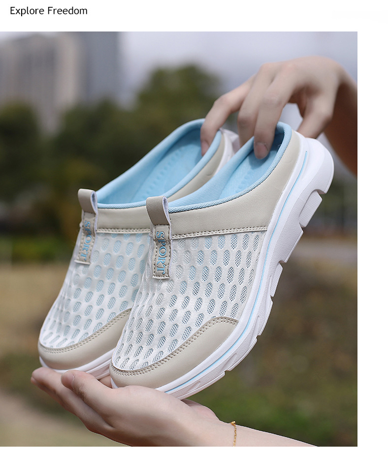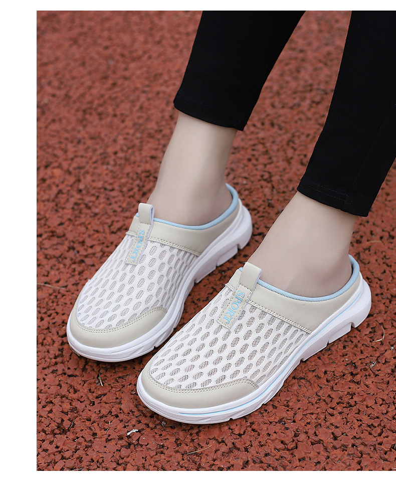 2025 국경 간 플러스 사이즈 메쉬 여성 신발 봄과 여름 매일 슬리퍼 슬립 온 및 하프 슬립 온 통기성 경량 애호가 신발스토어 가기