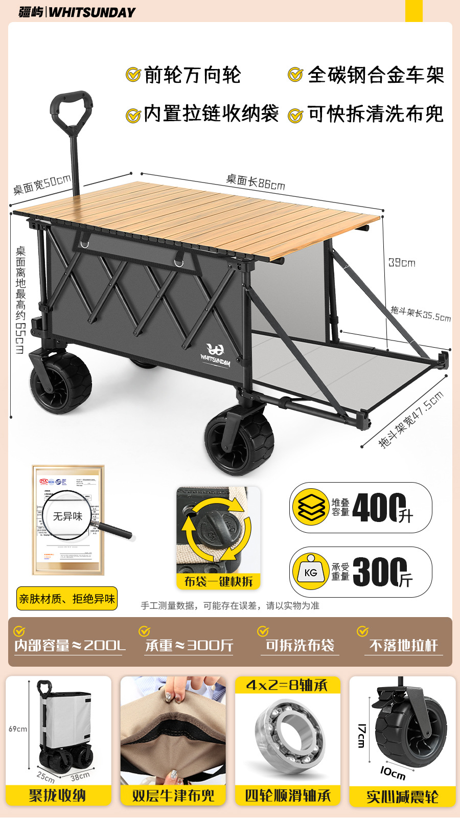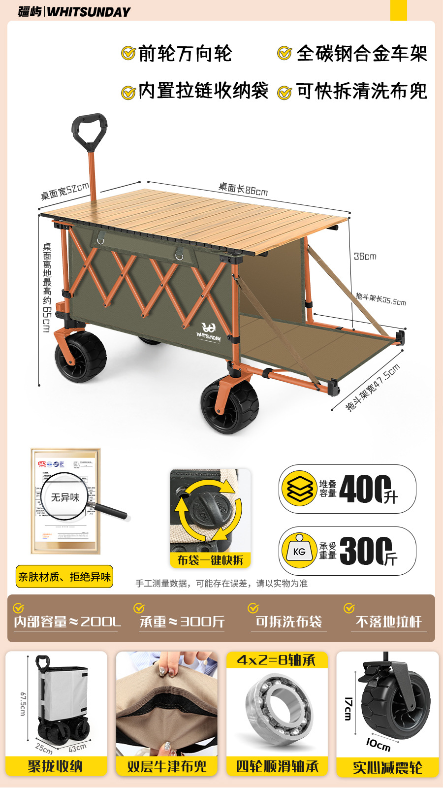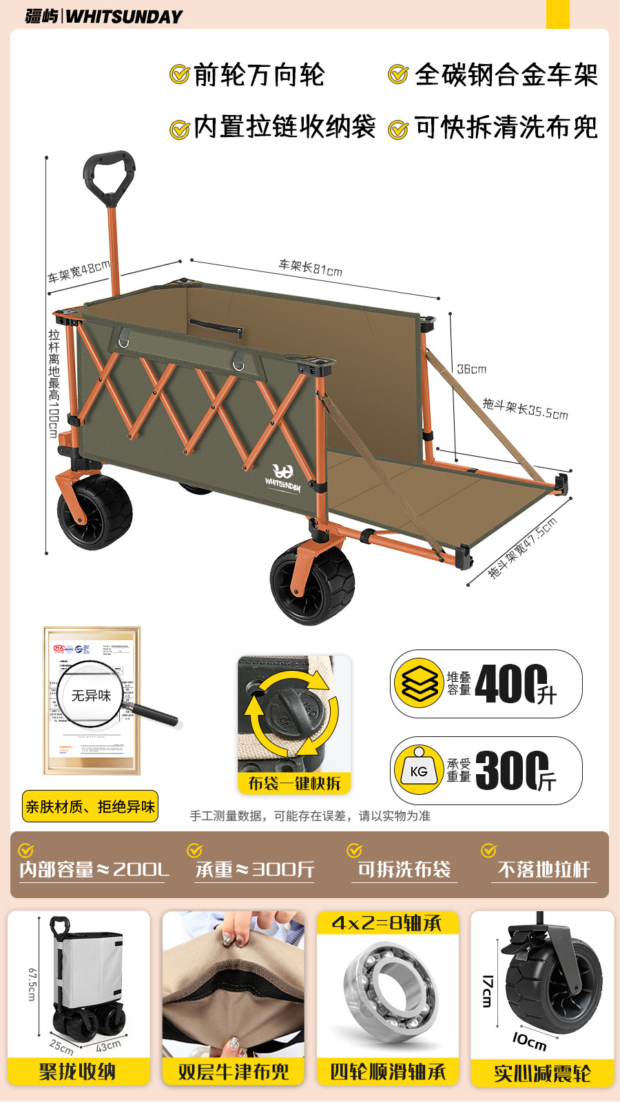 • 코랄 오렌지 [길어지고 깊어짐] 집결된 드래그 버킷 + 10CM 솔리드 와이드 휠 + 탈착식 리바운드 당김 막대 [냄새 없음, 신속하게 분해 및 세탁 가능한 천 가방]