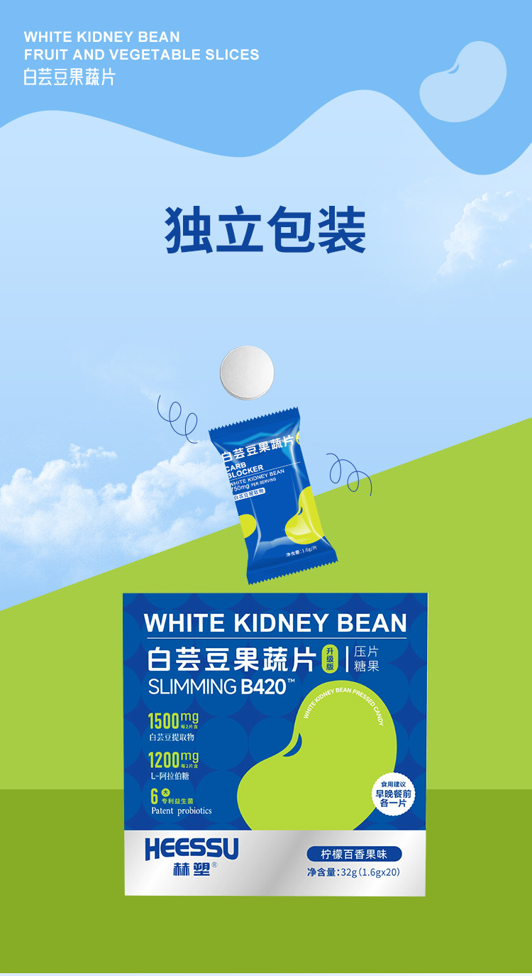 헤수 레몬 패션프루트 맛 백두콩 과일채소 정제 간편한 식사 무부하 소포장 씹는 정제 사탕스토어 가기