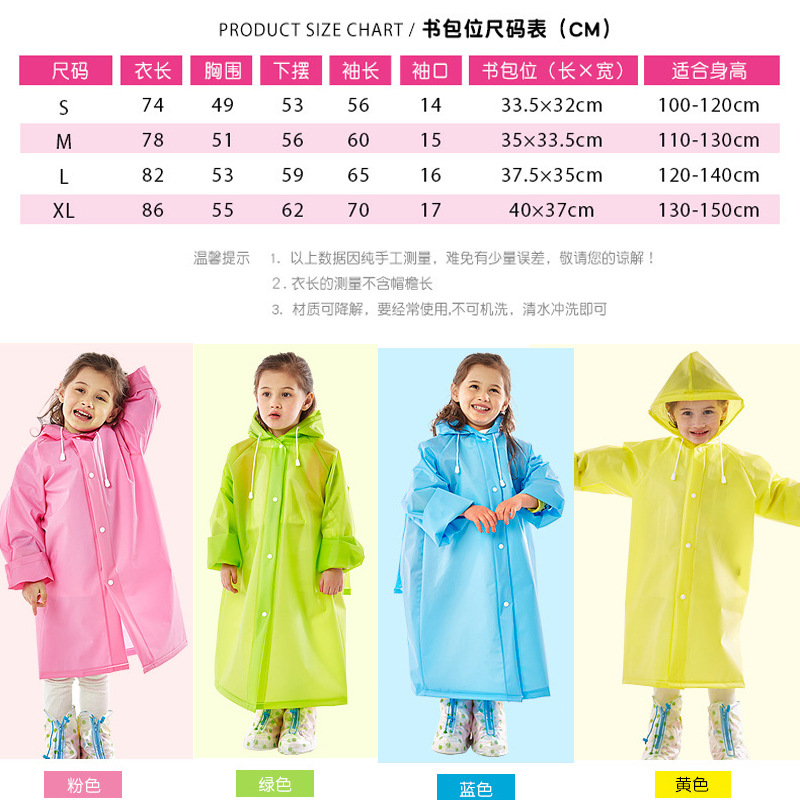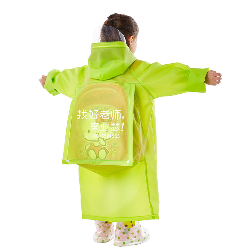맞춤형 어린이 배낭 비옷 6-12 스냅 버튼이 있는 투명한 챙 학생용 특수 긴 비옷 야외 방수스토어 가기