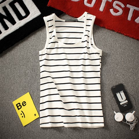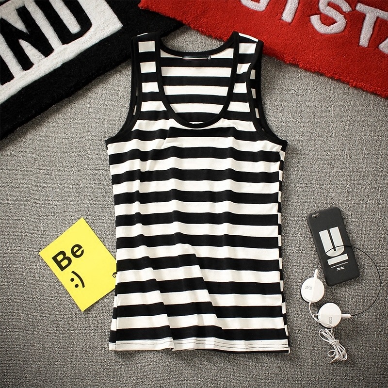 남성 조끼 청소년 여름 유행 꽉 슬림 한국 스타일 스트라이프 조끼 민소매 티셔츠 2025스토어 가기