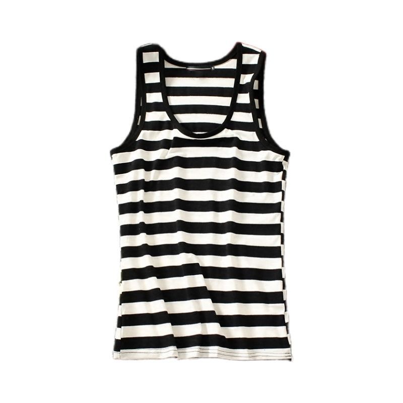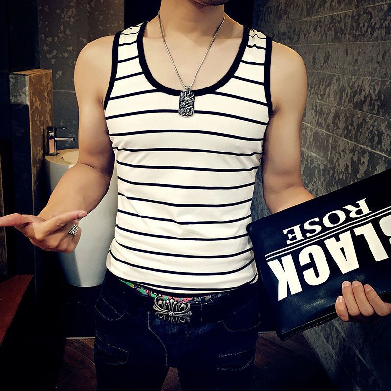 남성 조끼 청소년 여름 유행 꽉 슬림 한국 스타일 스트라이프 조끼 민소매 티셔츠 2025