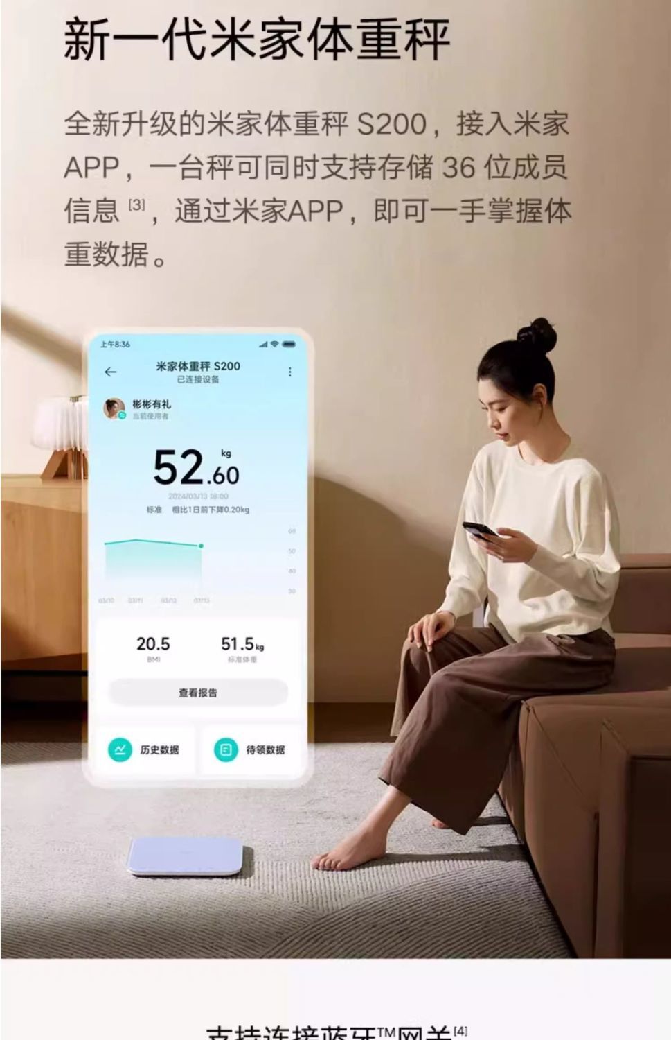 Xiaomi 계량 규모 S200 전자 계량 규모 2 세대 스마트 홈 체중 감소 특수 정밀스토어 가기