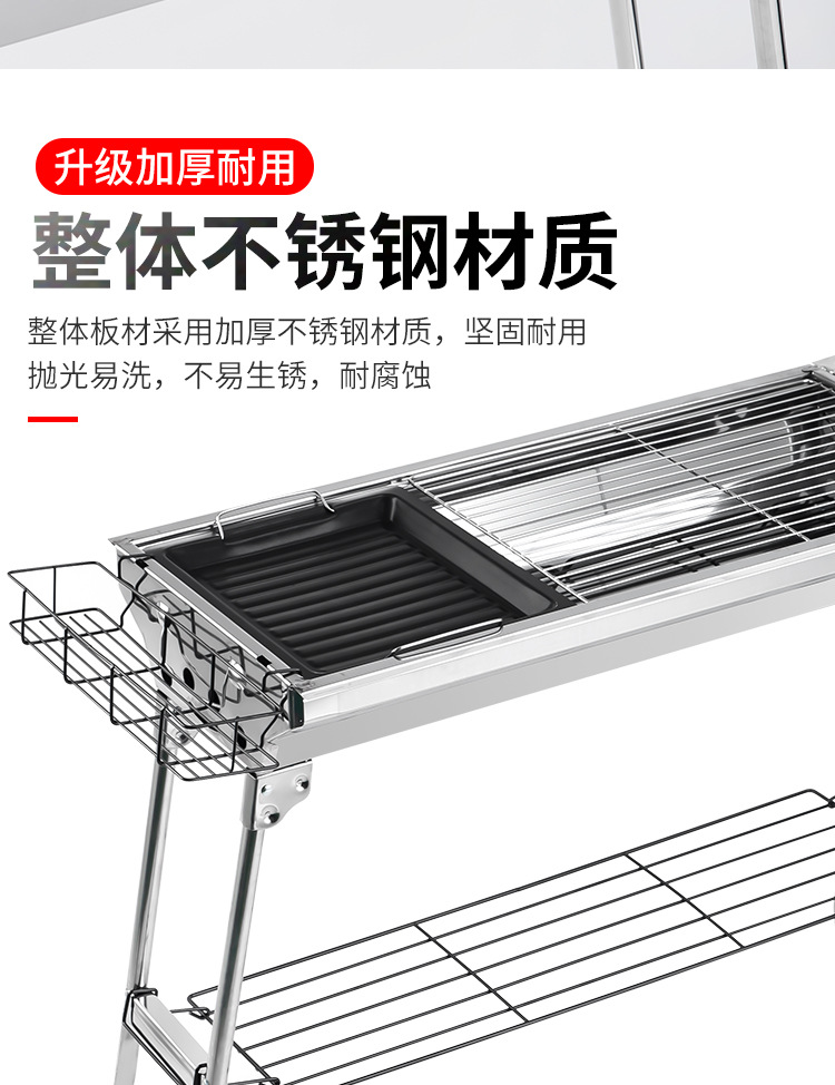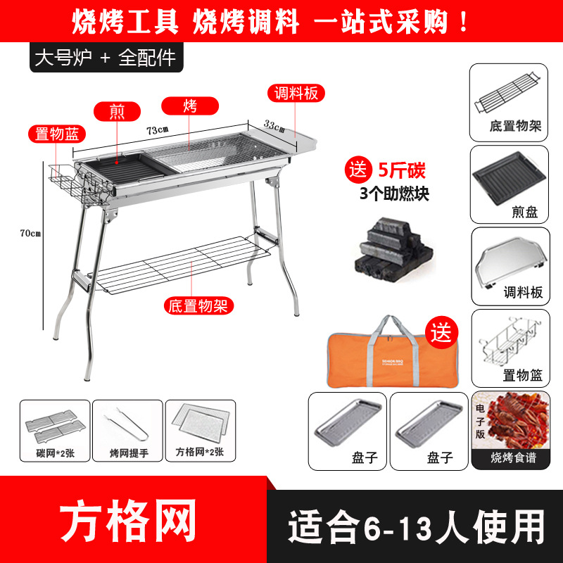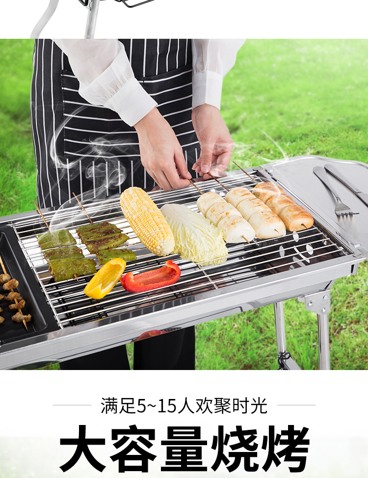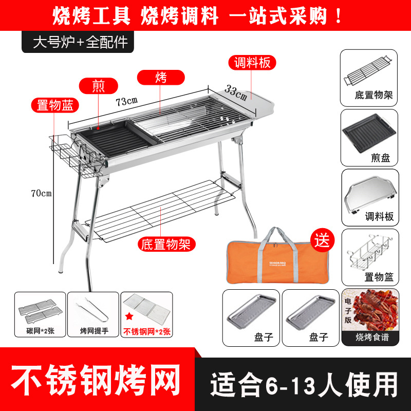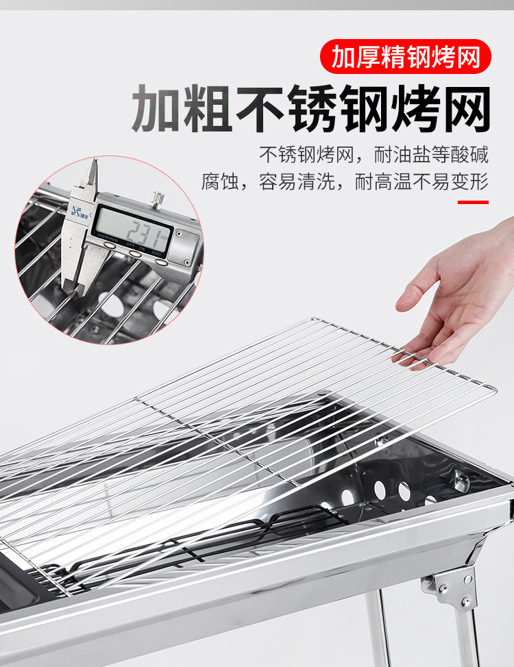 바베큐 그릴 랙 가정용 숯 야외 접이식 휴대용 대형 두꺼운 탄소 바베큐 스토브 야외 스테인레스 스틸