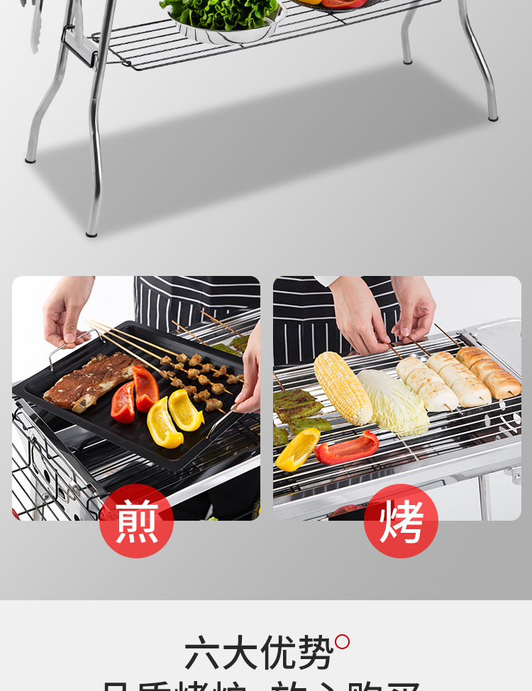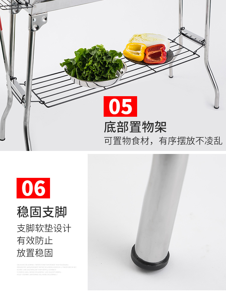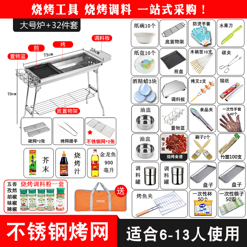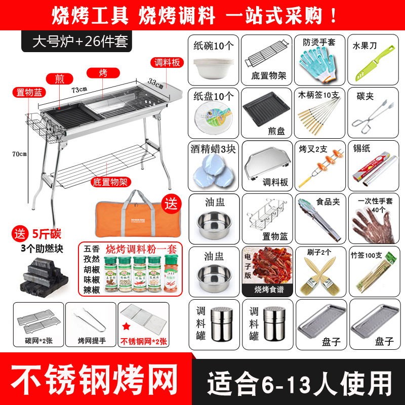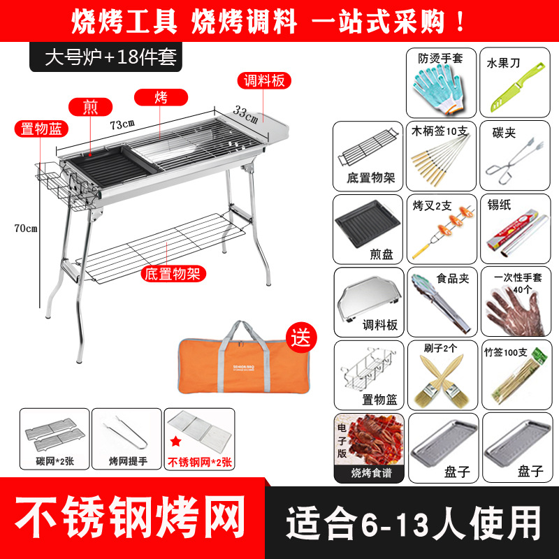 바베큐 그릴 랙 가정용 숯 야외 접이식 휴대용 대형 두꺼운 탄소 바베큐 스토브 야외 스테인레스 스틸