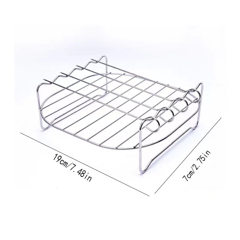 4 개의 로스팅 세이브가있는 에어 프라이어 그릴 430 스테인레스 스틸 더블 레이어 스팀 랙 스퀘어 바베큐 랙 그릴 생선 랙 토스트 국수