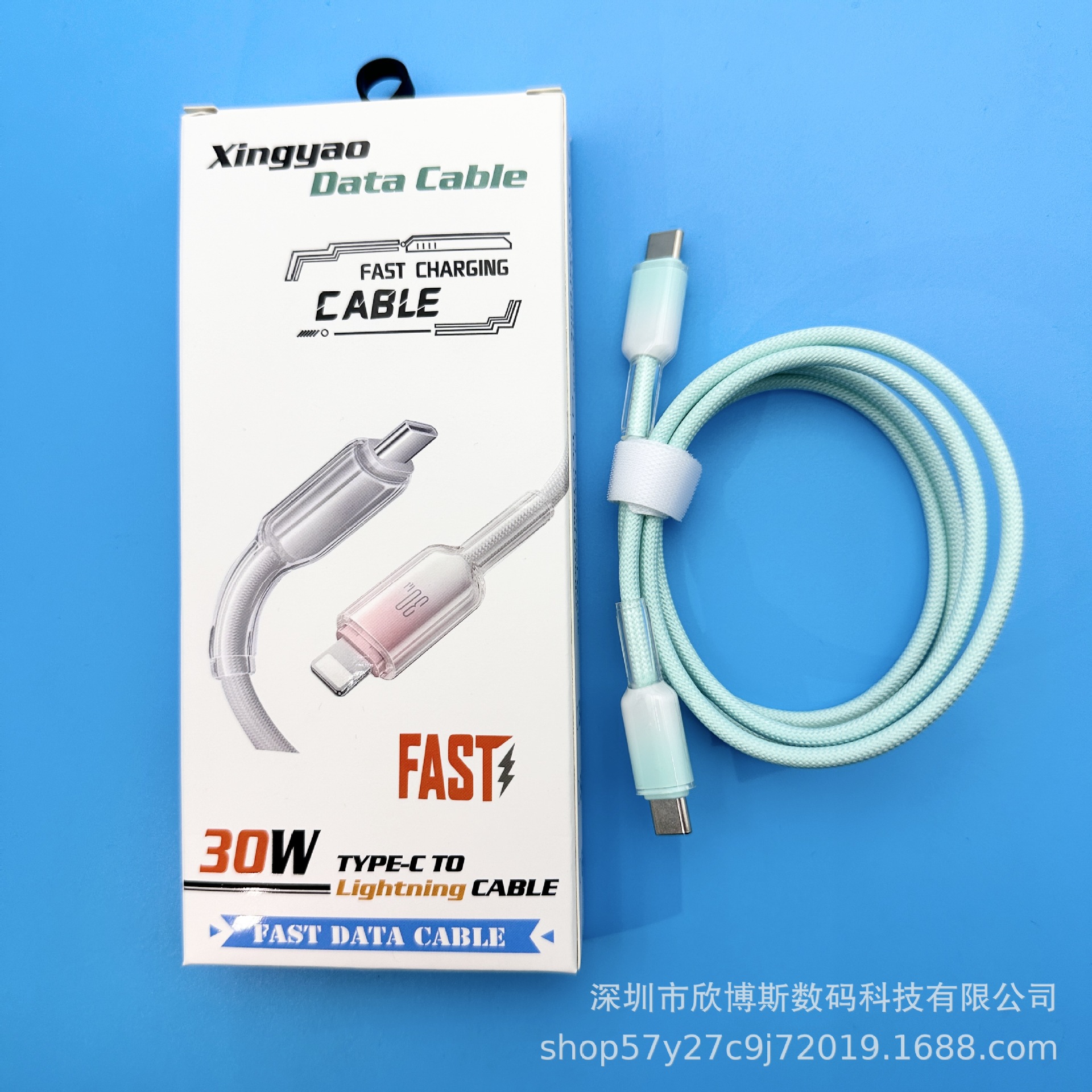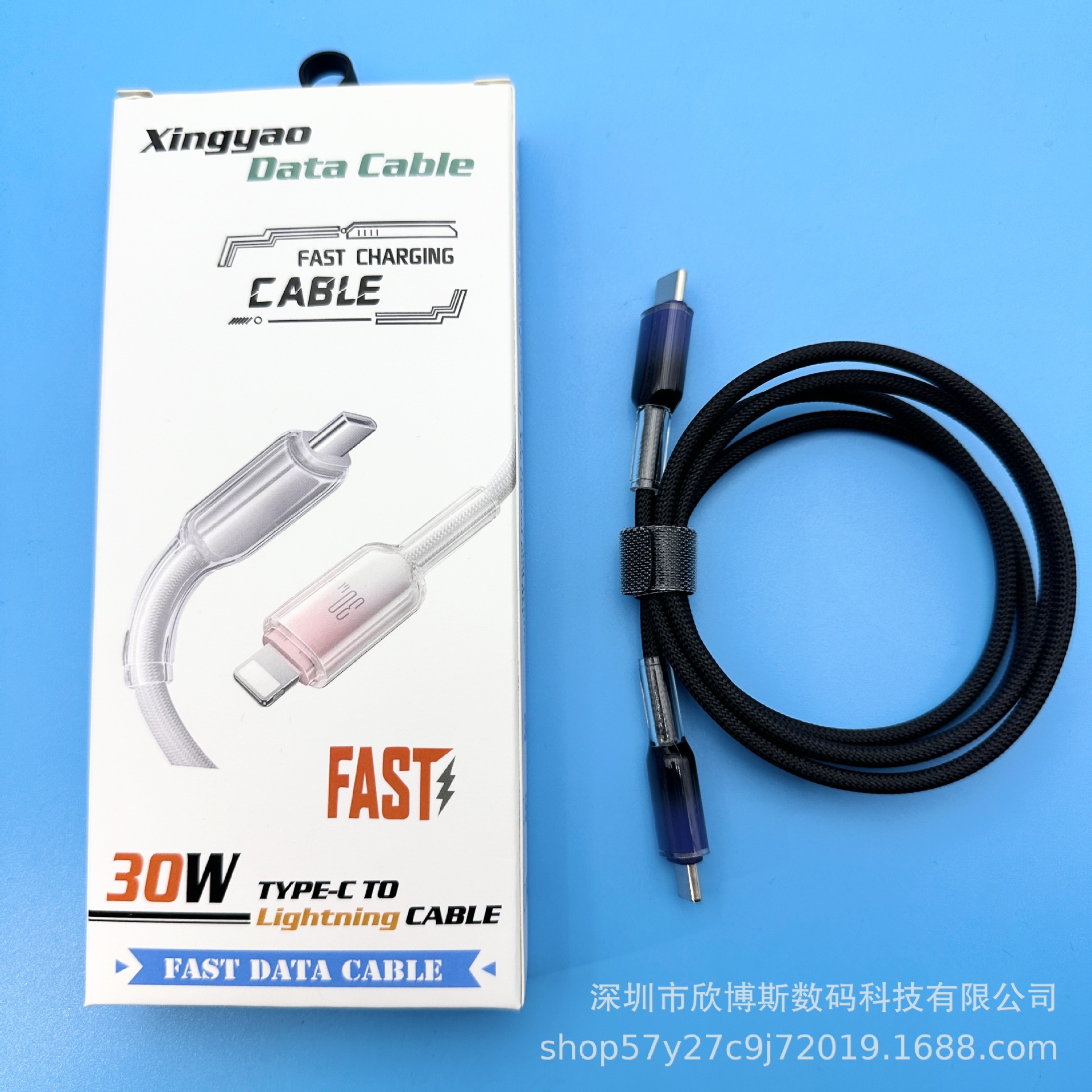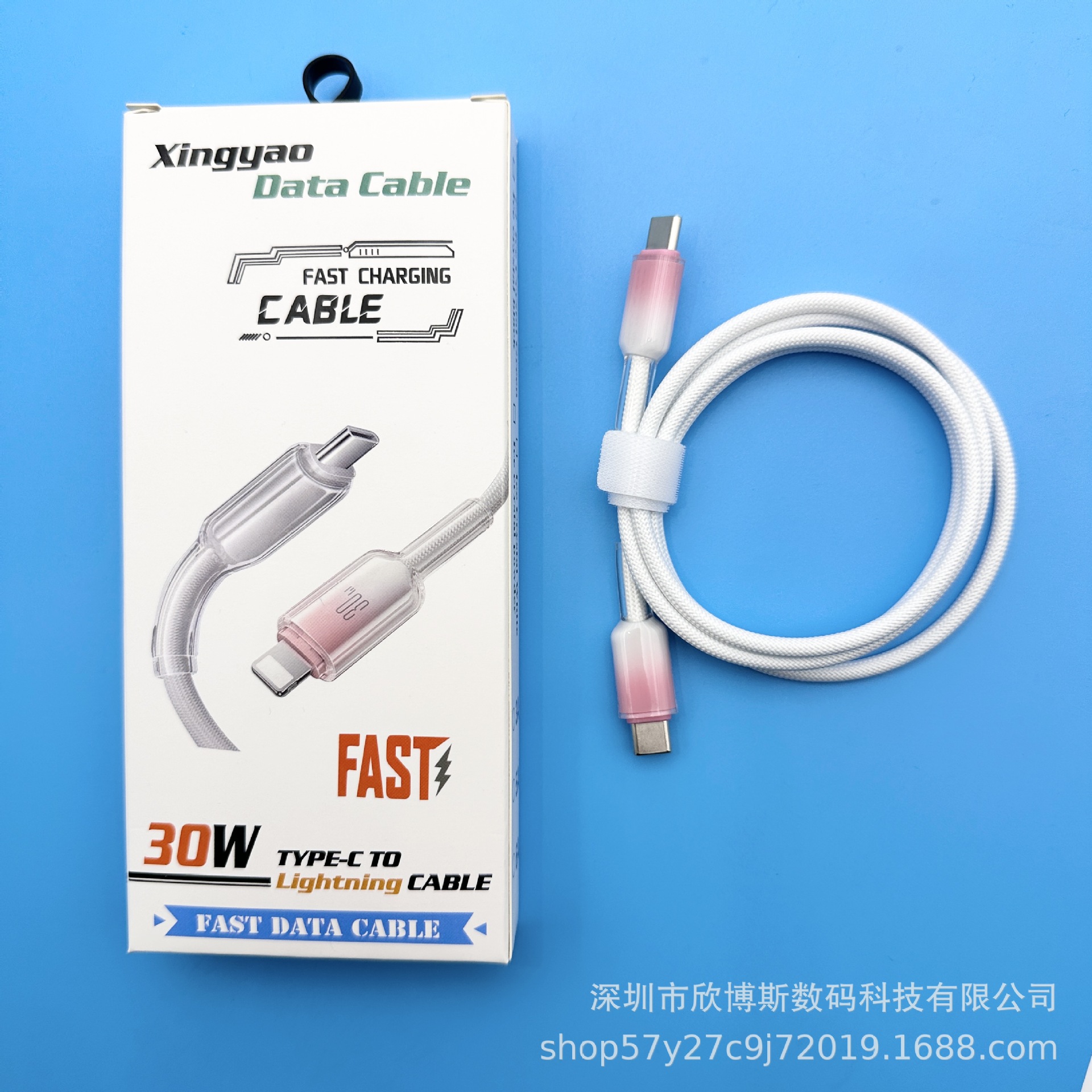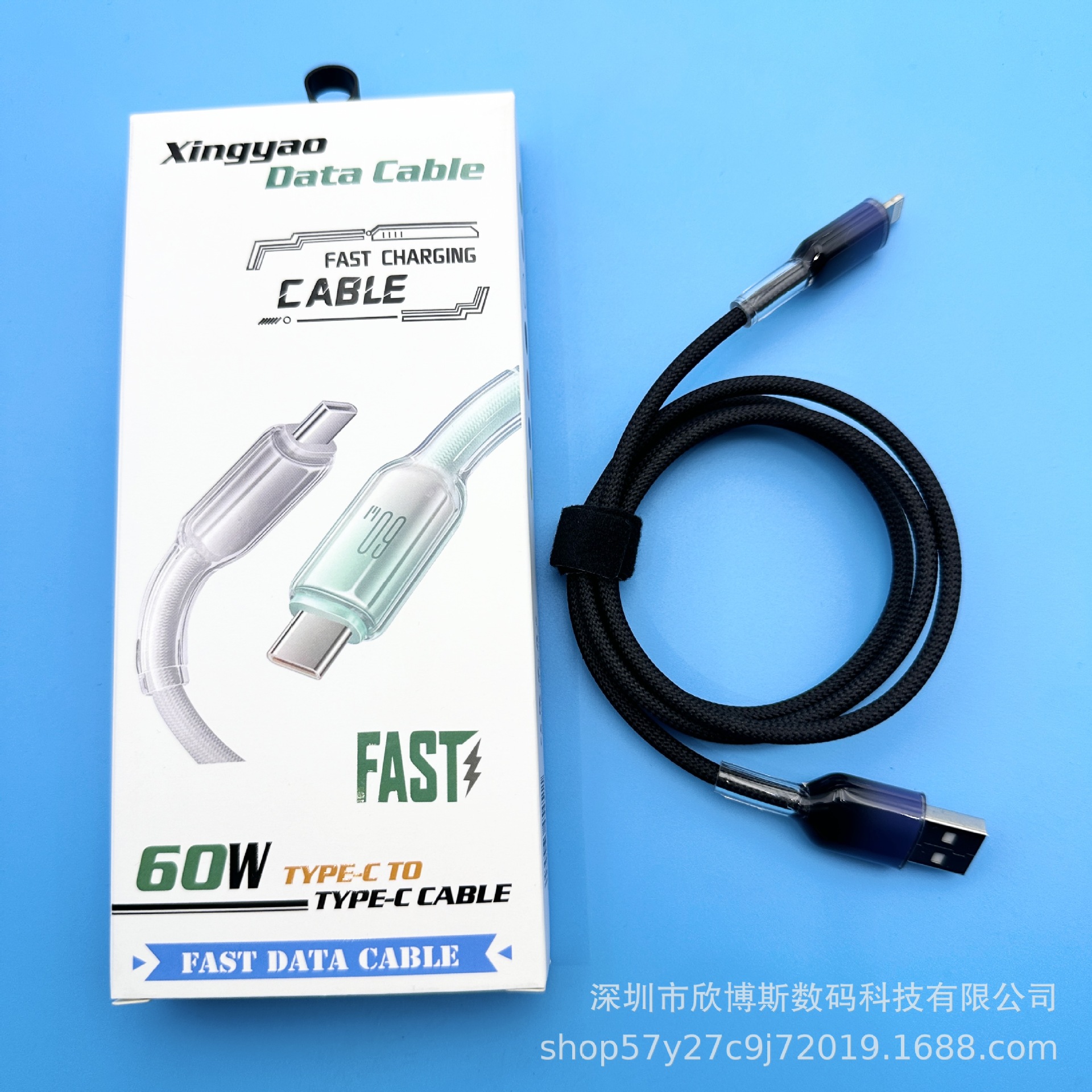 애플 15/16 휴대 전화 60W 더블 타입 화웨이 충전 라인을 위한 그라디언트 투명 크리스탈 투명 데이터 라인 PD27W스토어 가기
