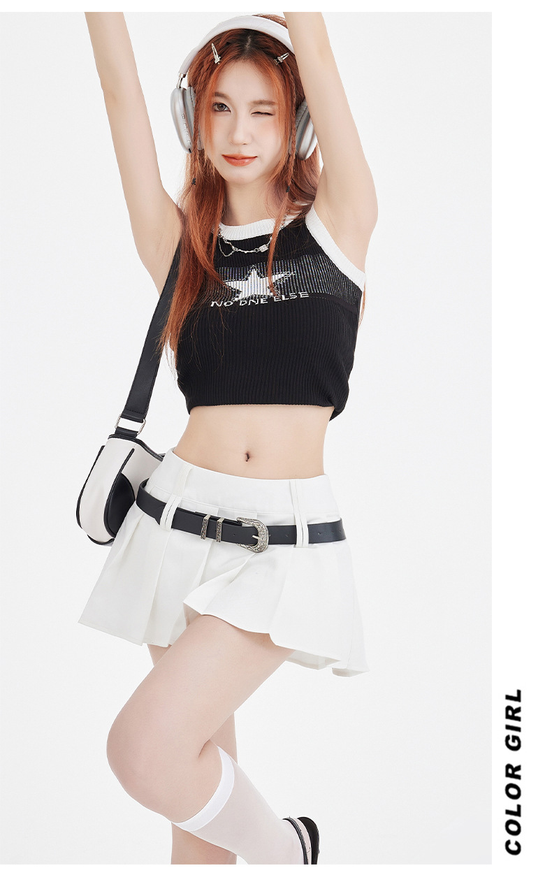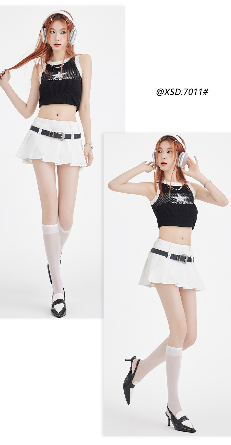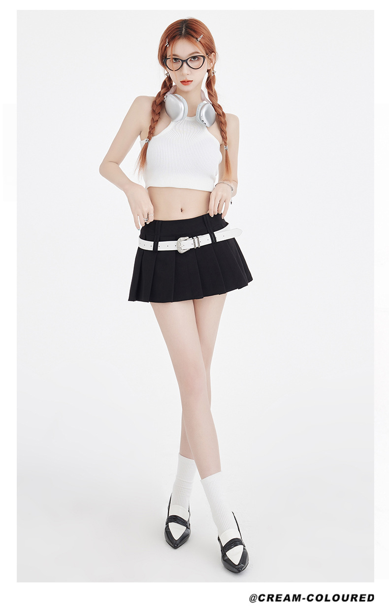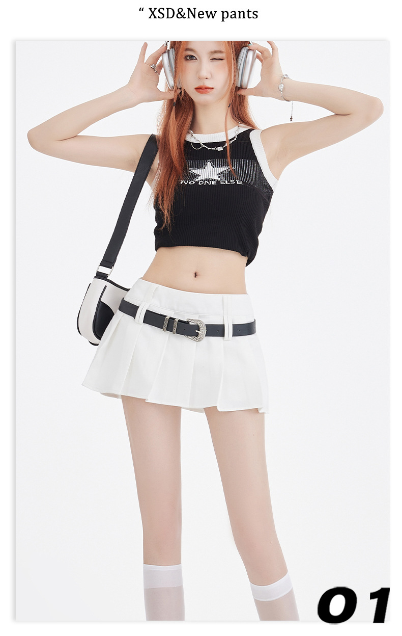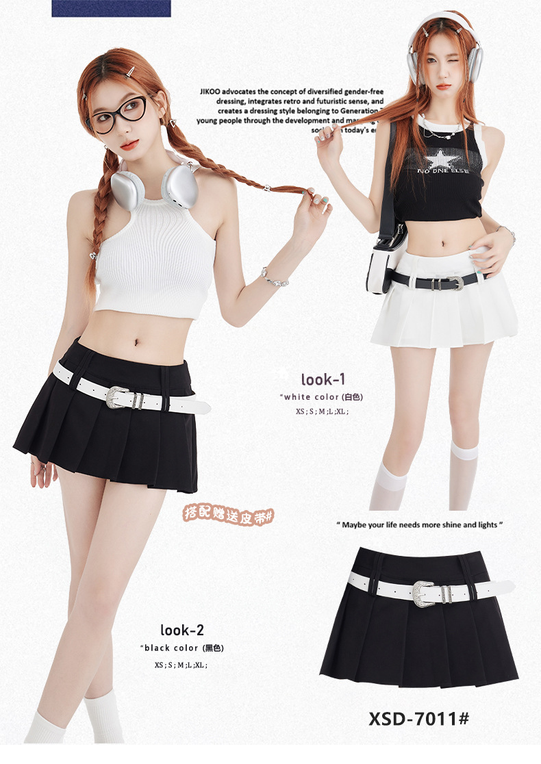 25번째 ootd! 아메리칸 캠퍼스 핫걸 플리츠 스커트 버전 A jk 그룹 다용도 슬리밍 미니 스커트(벨트 포함)스토어 가기