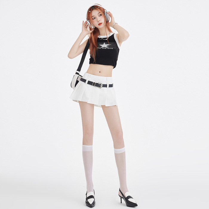 25번째 ootd! 아메리칸 캠퍼스 핫걸 플리츠 스커트 버전 A jk 그룹 다용도 슬리밍 미니 스커트(벨트 포함)