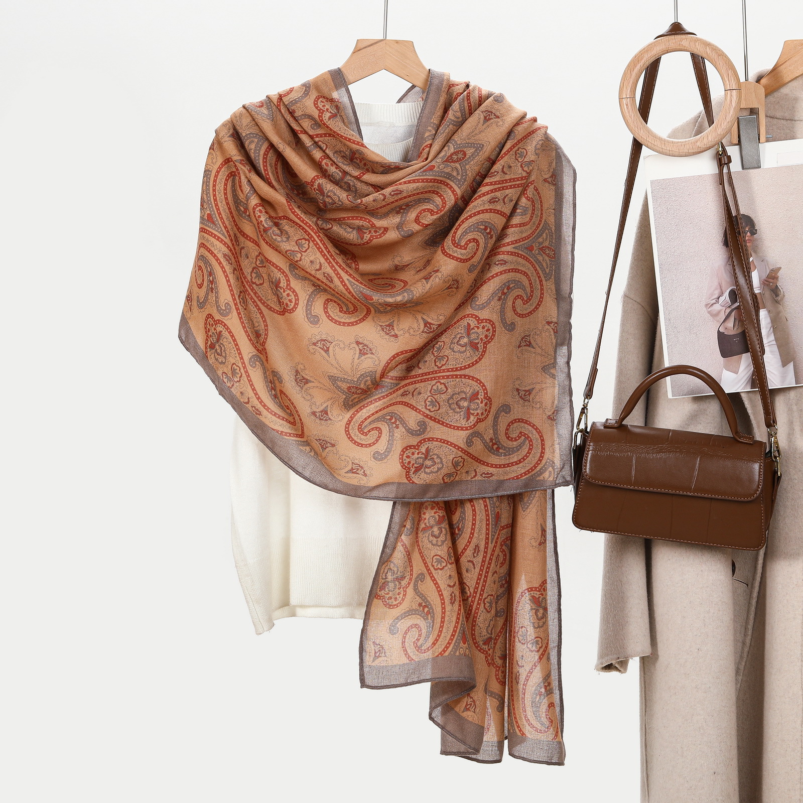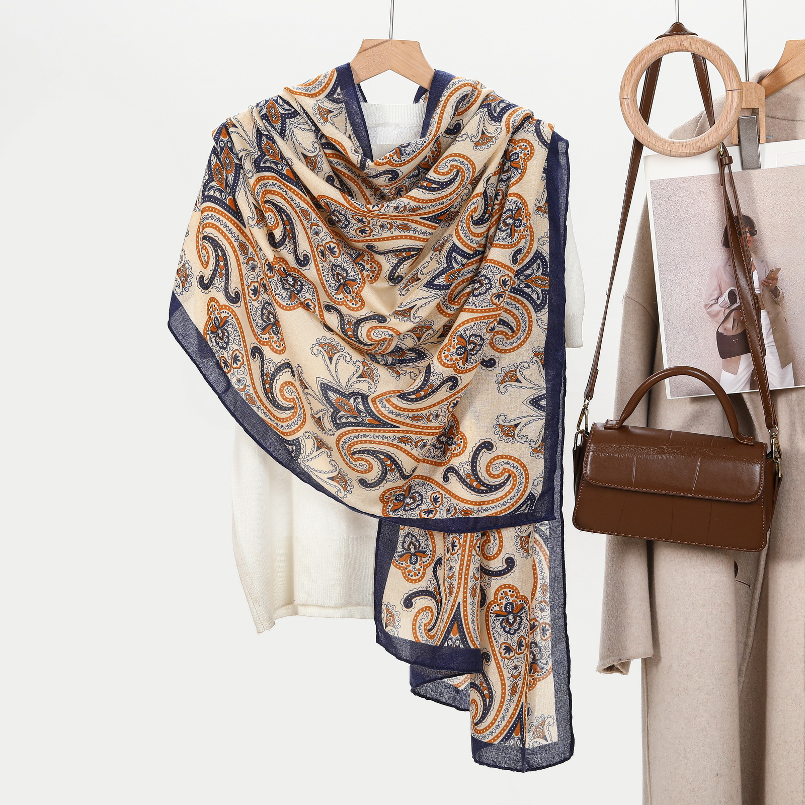 여성 복고풍 캐슈 프린트 스카프 봄, 가을 한국 패션 대형 목도리 여름 자외선 차단제 거즈 스카프 인터넷 연예인 핫 세일