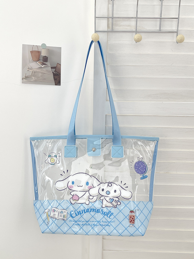 정품 라이센스 산리오 젤리 투명 어깨 가방 대용량 귀여운 만화 학생 휴대용 핸드백스토어 가기
