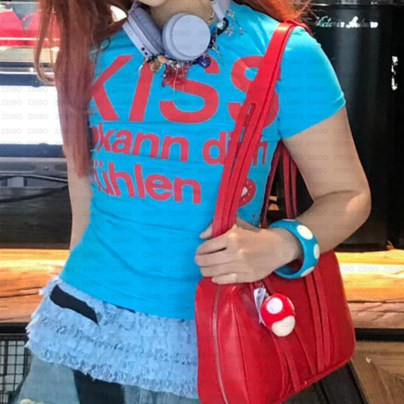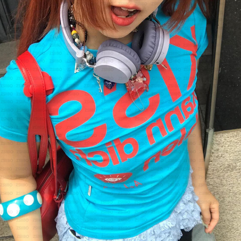 트렌디 브랜드 편지 인쇄 라운드 넥 반팔 티셔츠 여성 봄, 여름 새로운 미국 INS 루즈 캐주얼 핫 소녀 탑