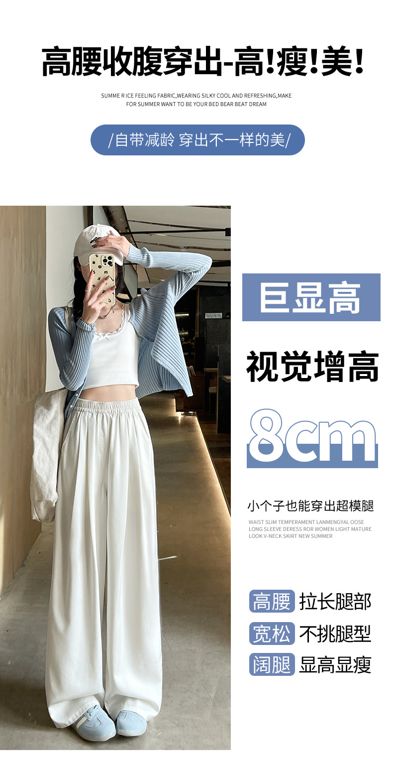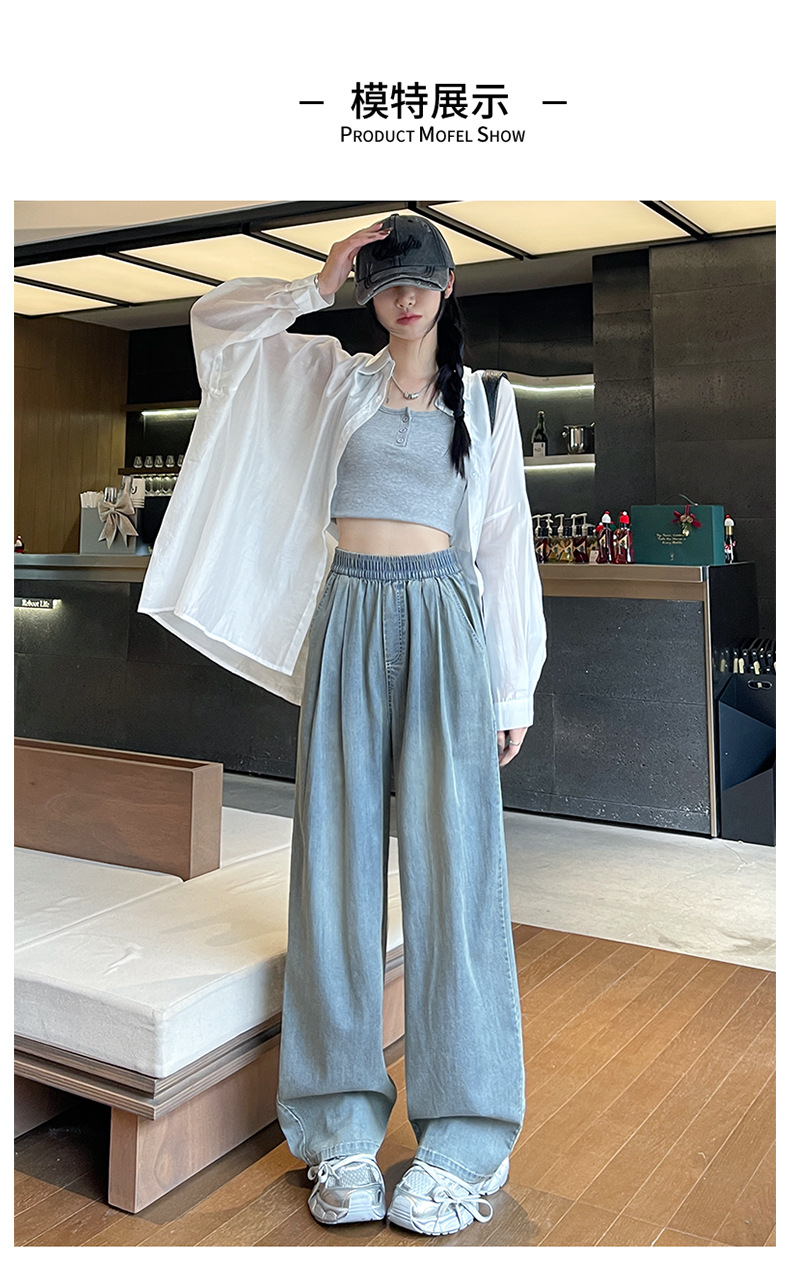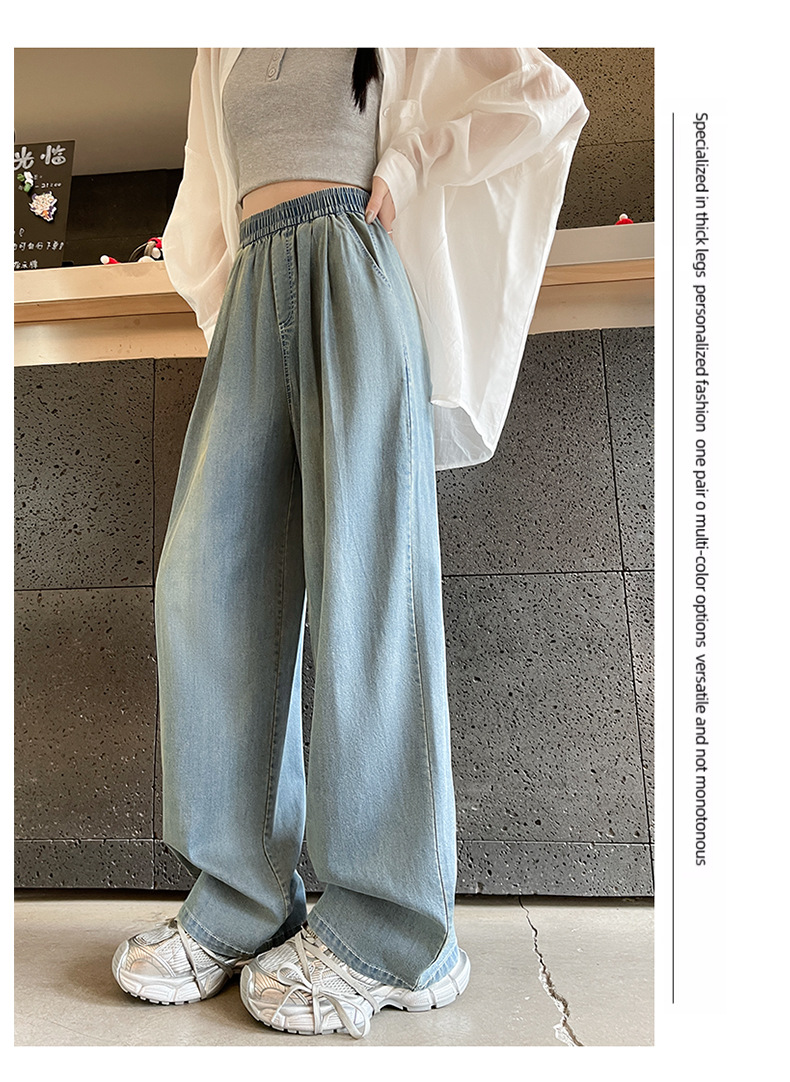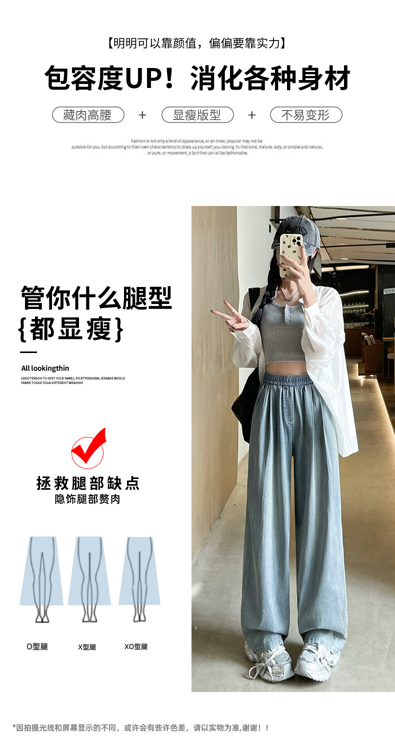 여성용 텐셀 데님 팬츠, 여름용 얇은 모델, 2026년 신상, 작은 체형에 적합한 드레이프 엘라스틱 허리밴드, 루즈핏 아이스 실크 와이드 팬츠