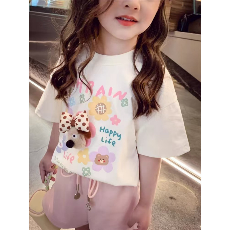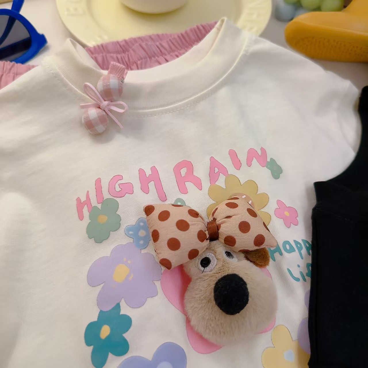 여름 새로운 2025 면 어린이 반팔 티셔츠 만화 소녀 3 차원 인형 소녀 바닥 재킷 도매스토어 가기