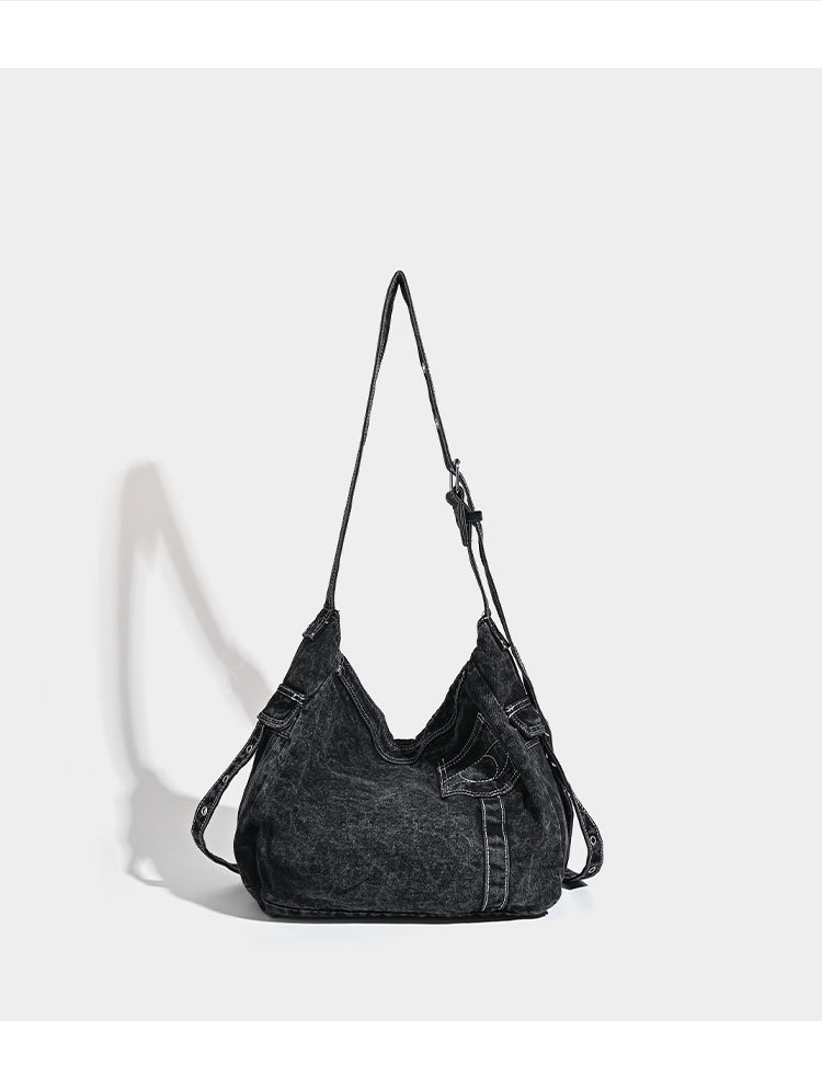 2025 여성 가방 대용량 토트 백 낡은 데님 가방 가을과 겨울 틈새 디자인 리벳 통근 국경스토어 가기