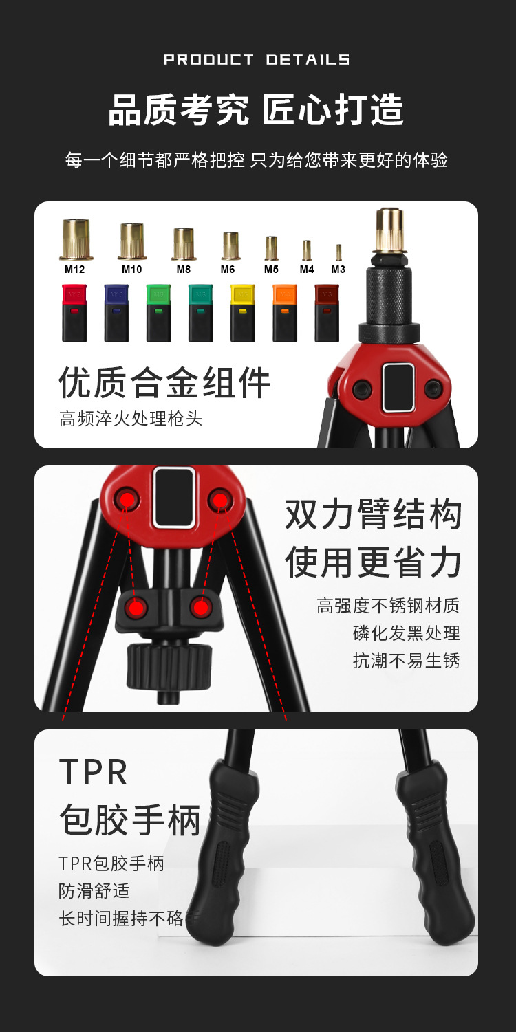 BT-606 더블 핸들 수동 리벳 너트 건 풀러 캡 건 풀러 너트 리벳 건 M3-M8 리벳 너트 도구스토어 가기
