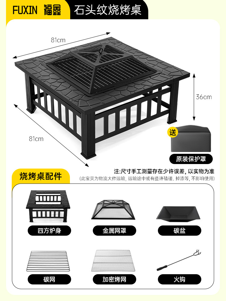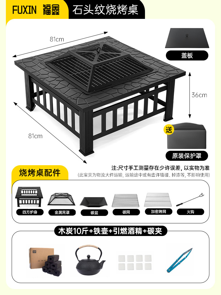 • [높고 두꺼워진 그릴] 아연 합금 나뭇결 바베큐 그릴 + 커버 보호 커버