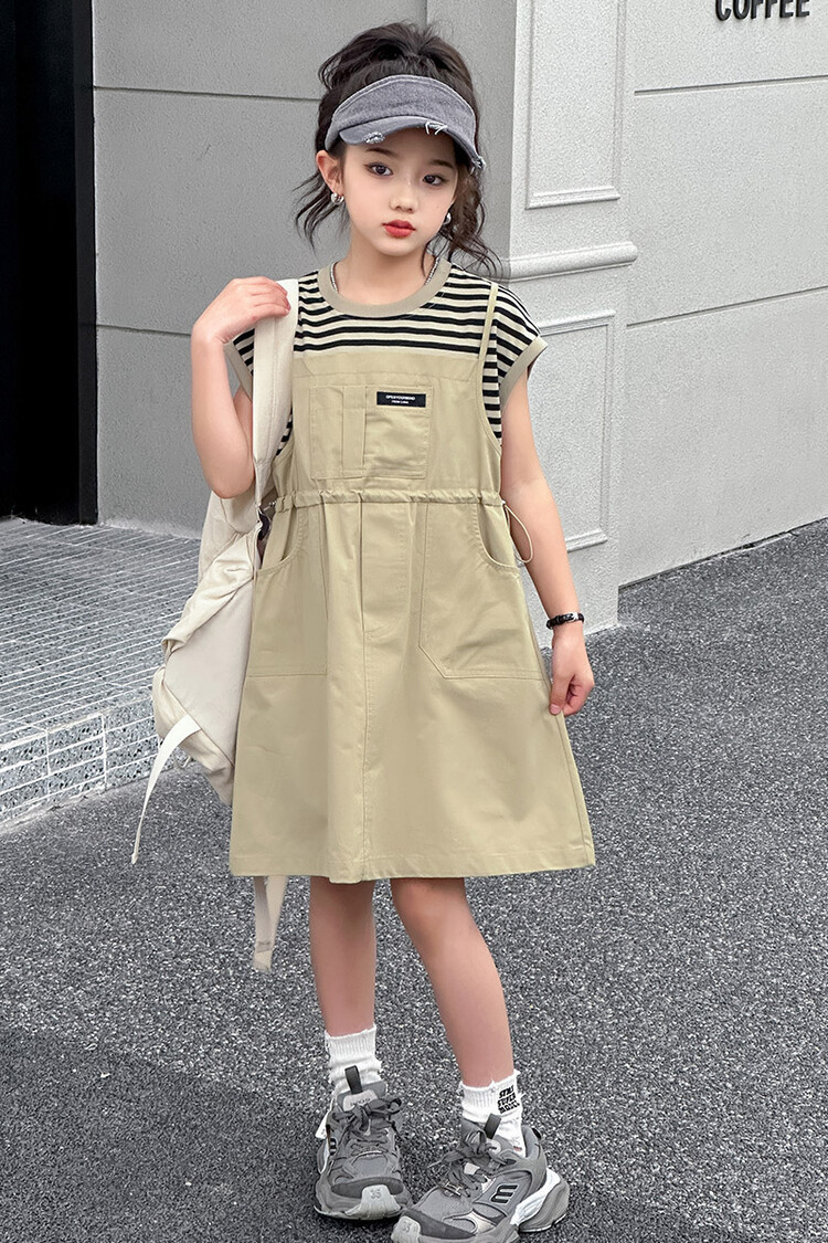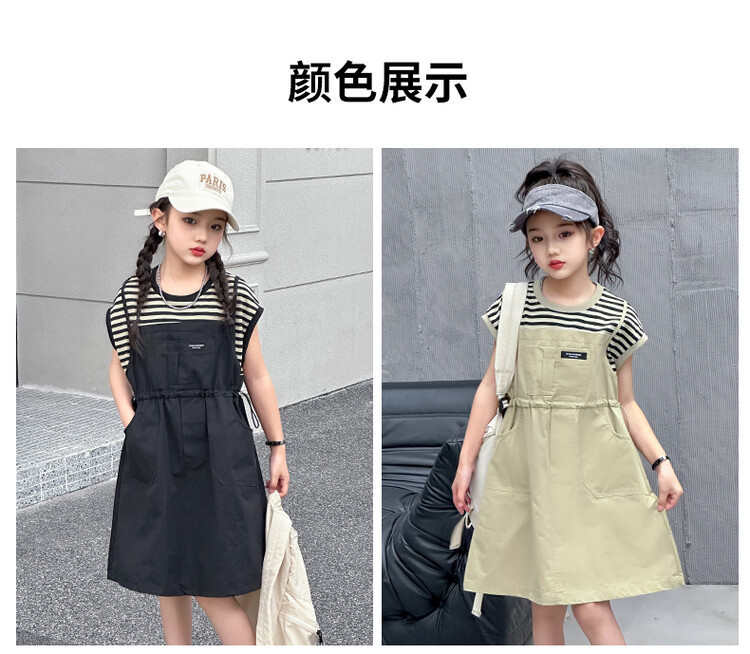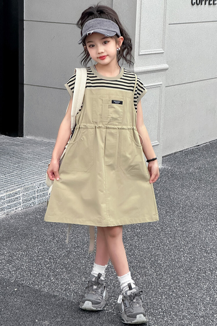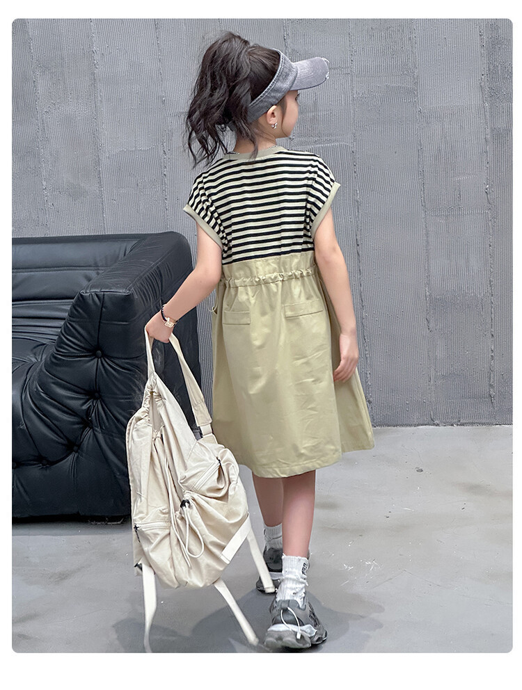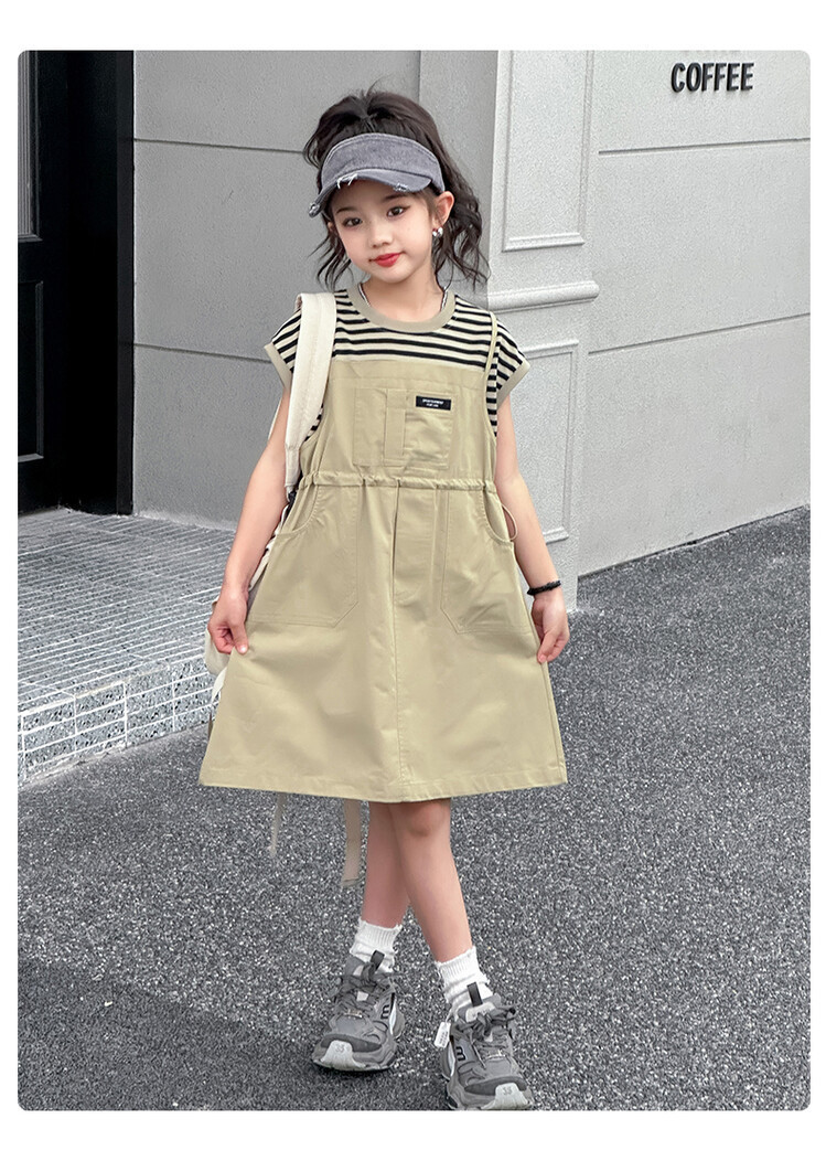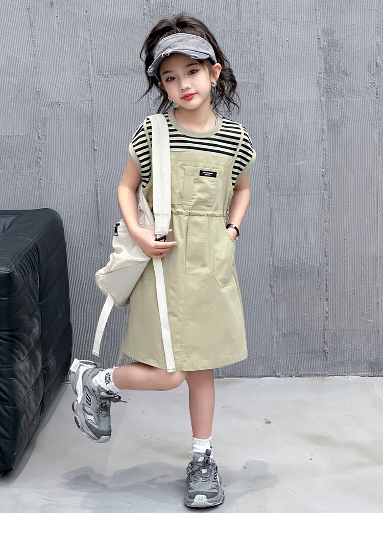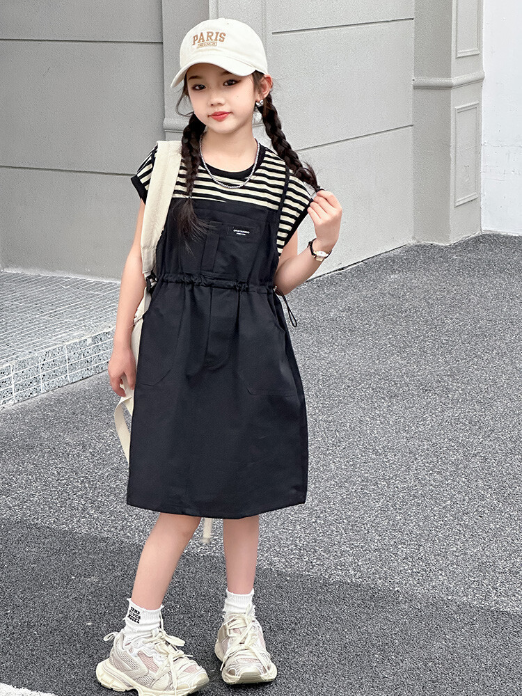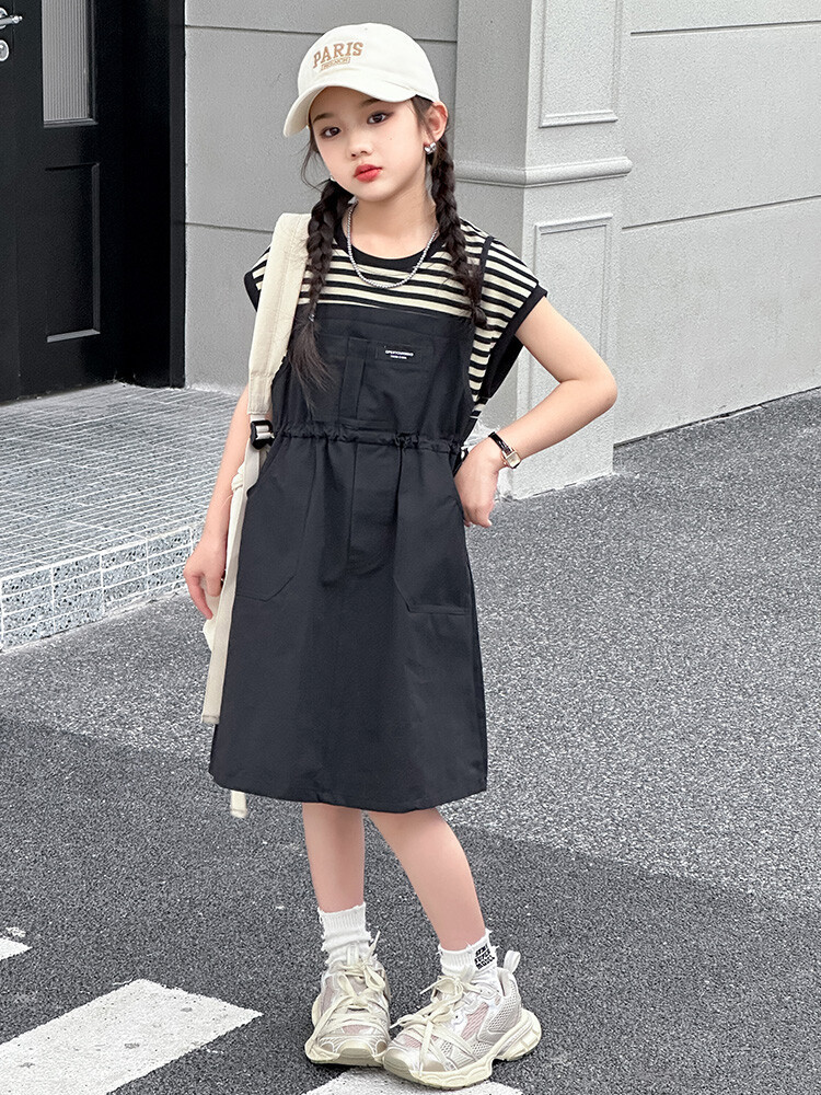 소녀 소녀의 치마 줄무늬 느슨한 어린이 치마 가짜 여름 여름 여름 작업복 캐주얼 스타일 원피스