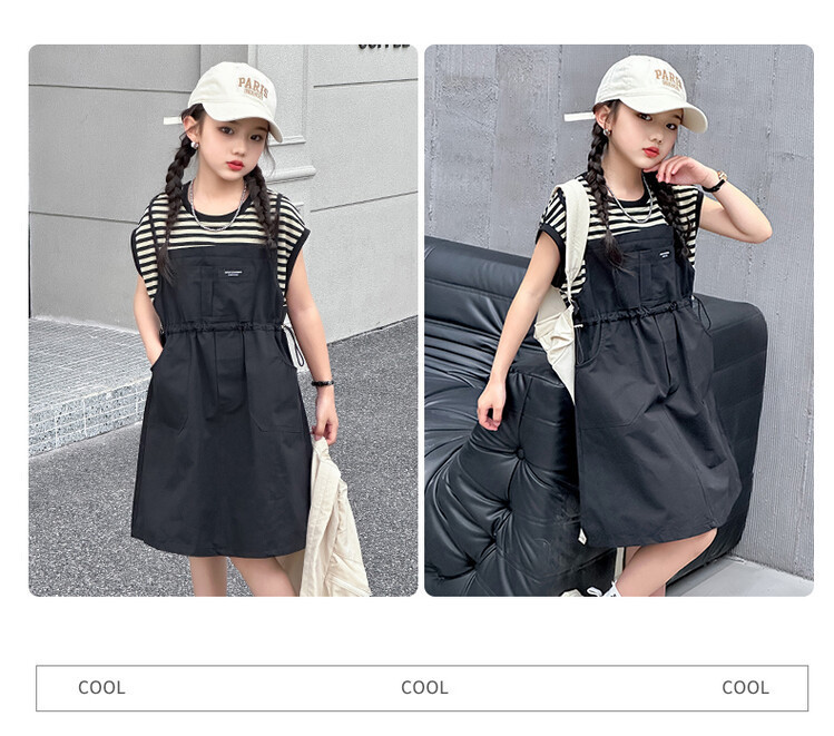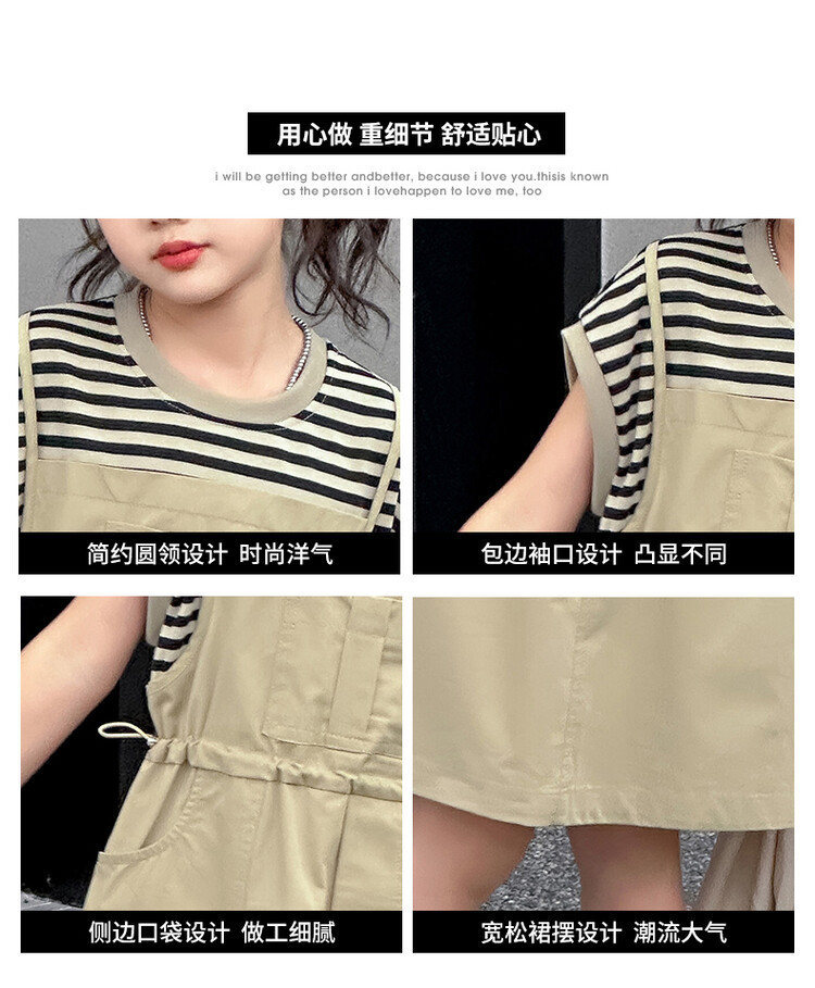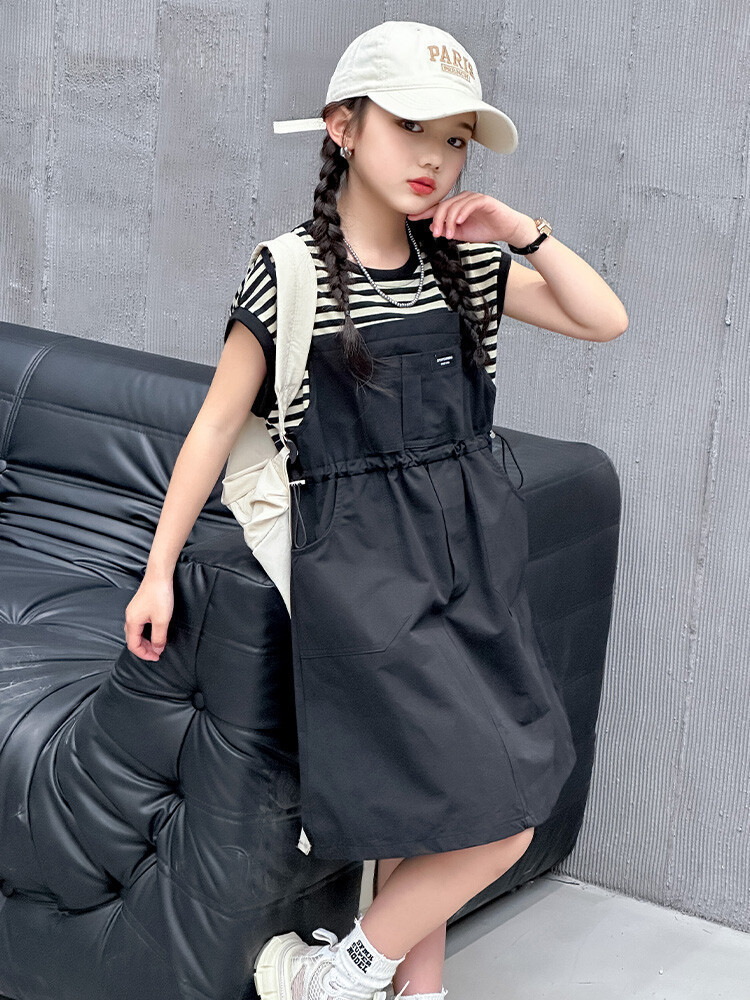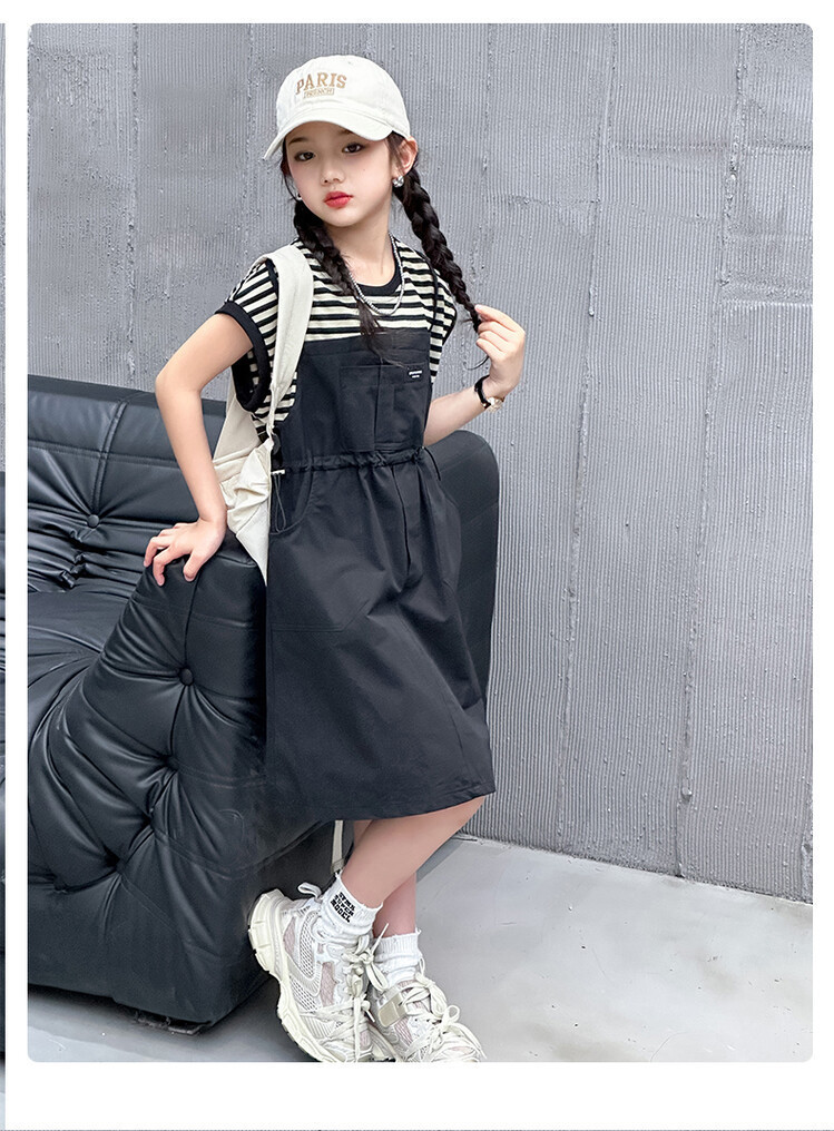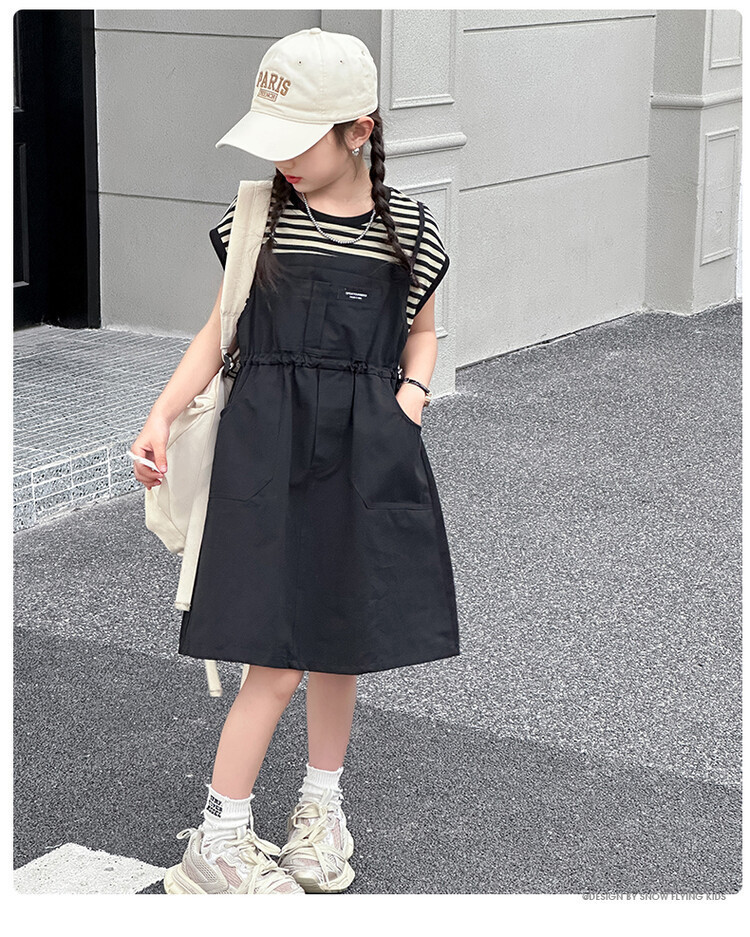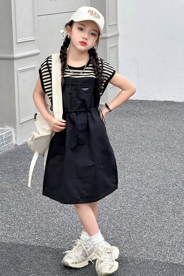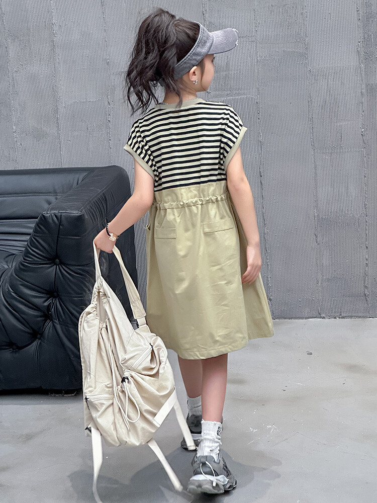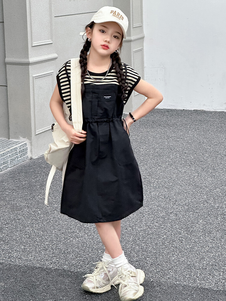 소녀 소녀의 치마 줄무늬 느슨한 어린이 치마 가짜 여름 여름 여름 작업복 캐주얼 스타일 원피스