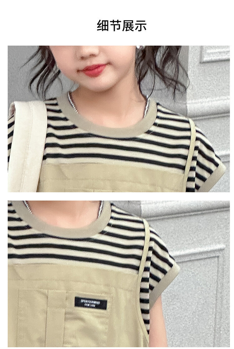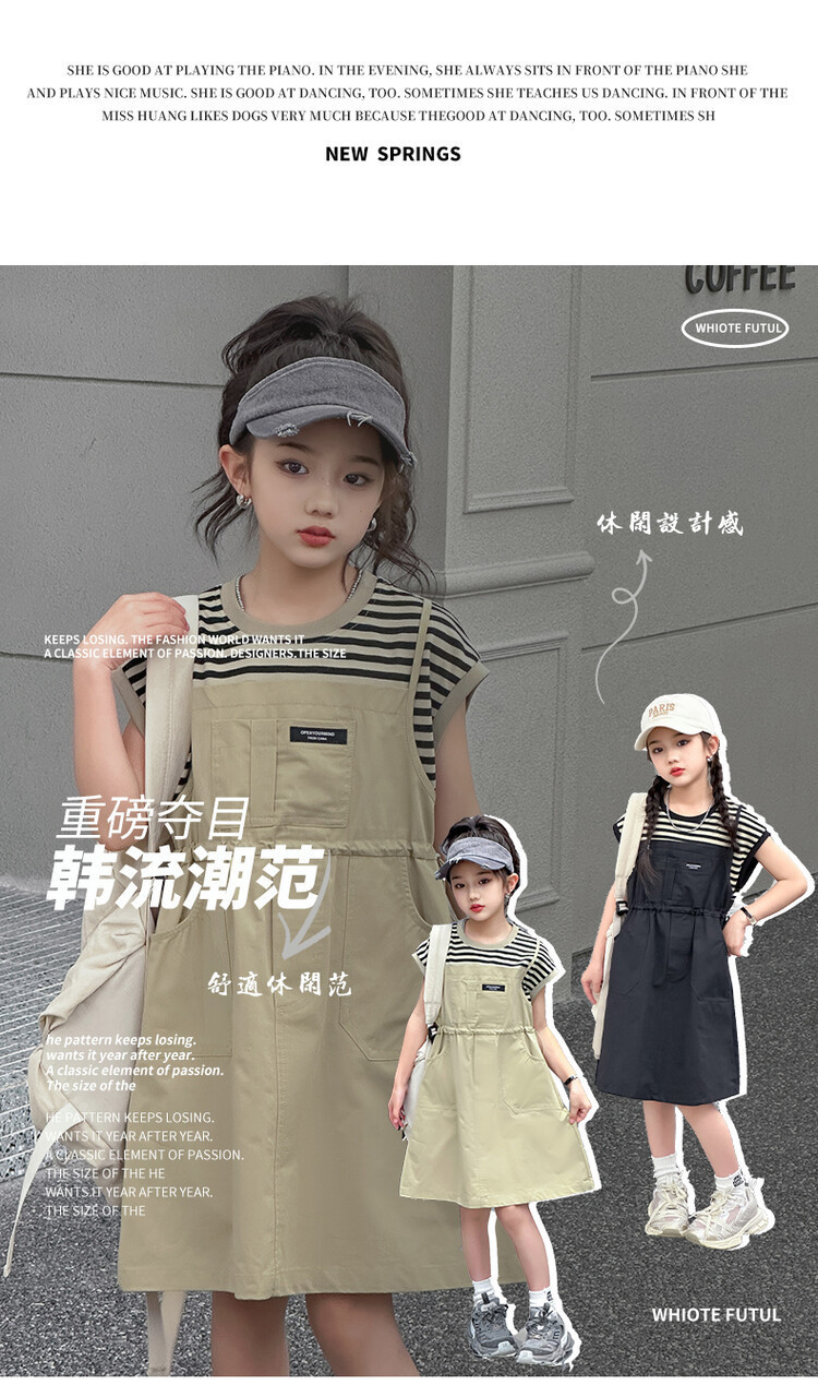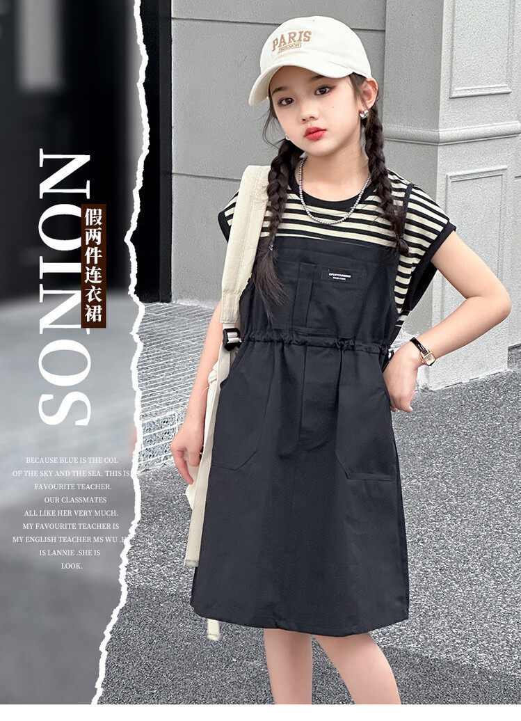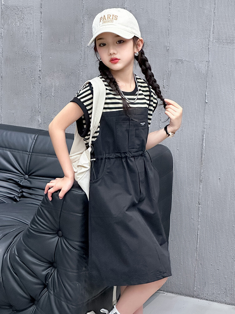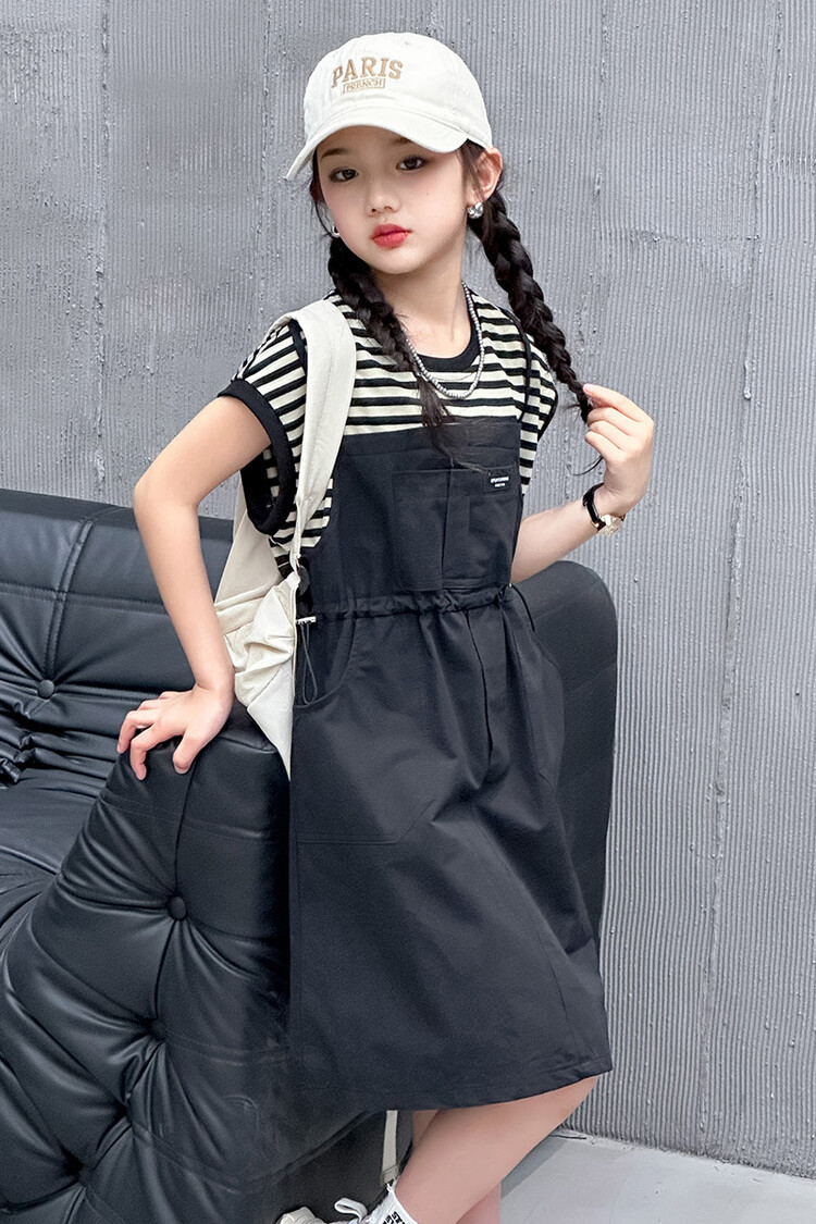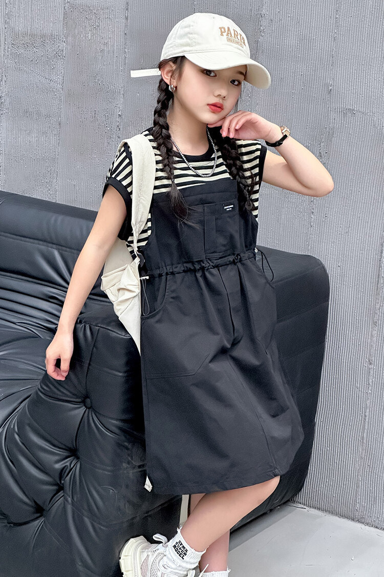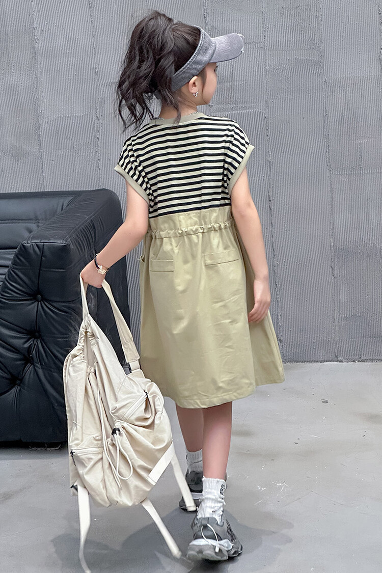 소녀 소녀의 치마 줄무늬 느슨한 어린이 치마 가짜 여름 여름 여름 작업복 캐주얼 스타일 원피스