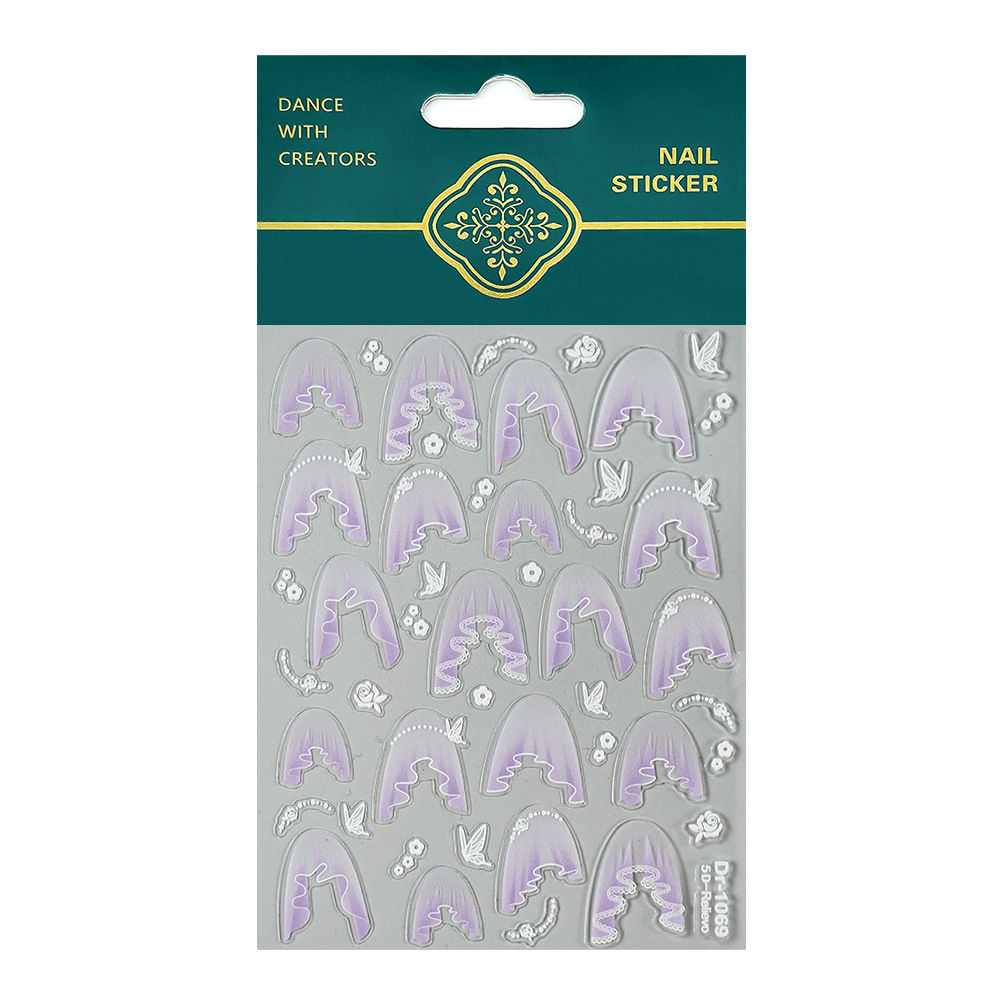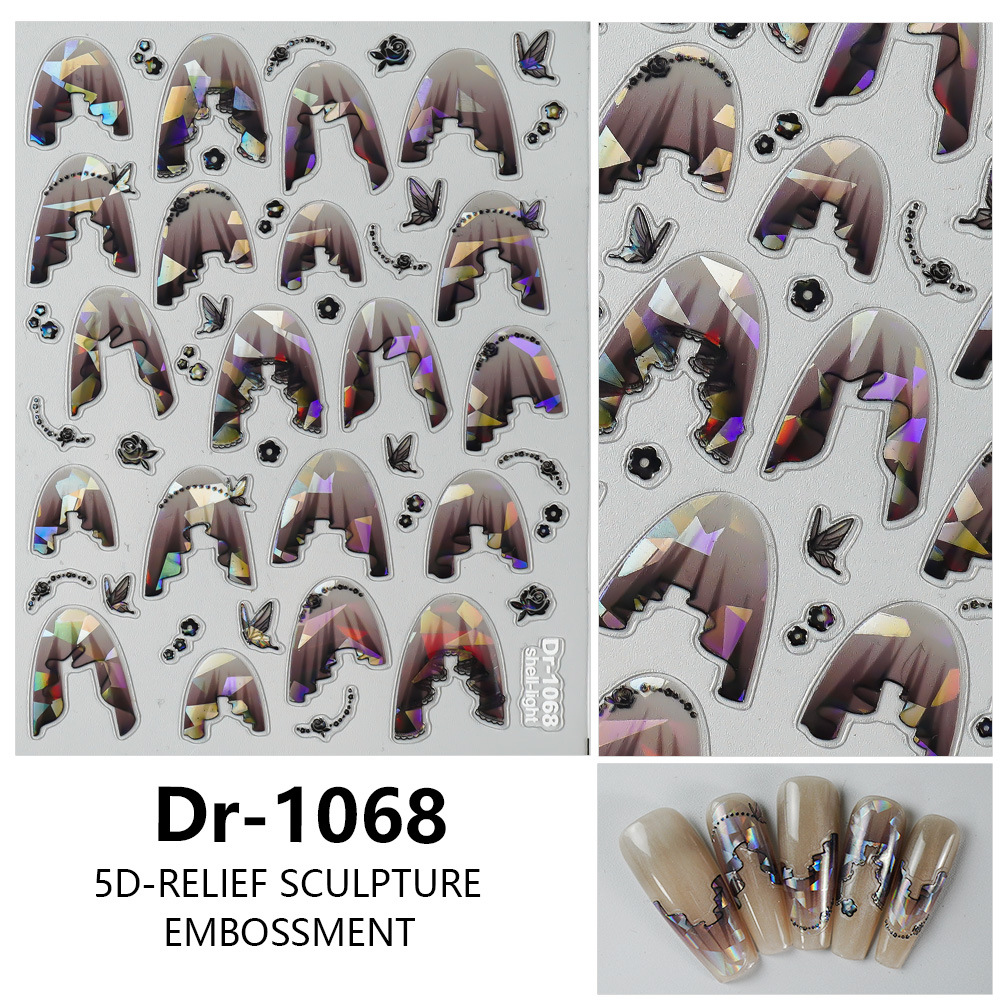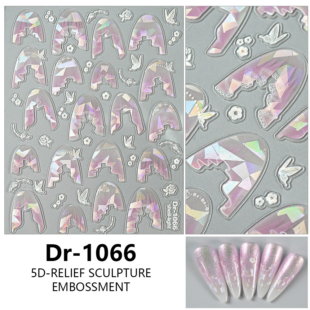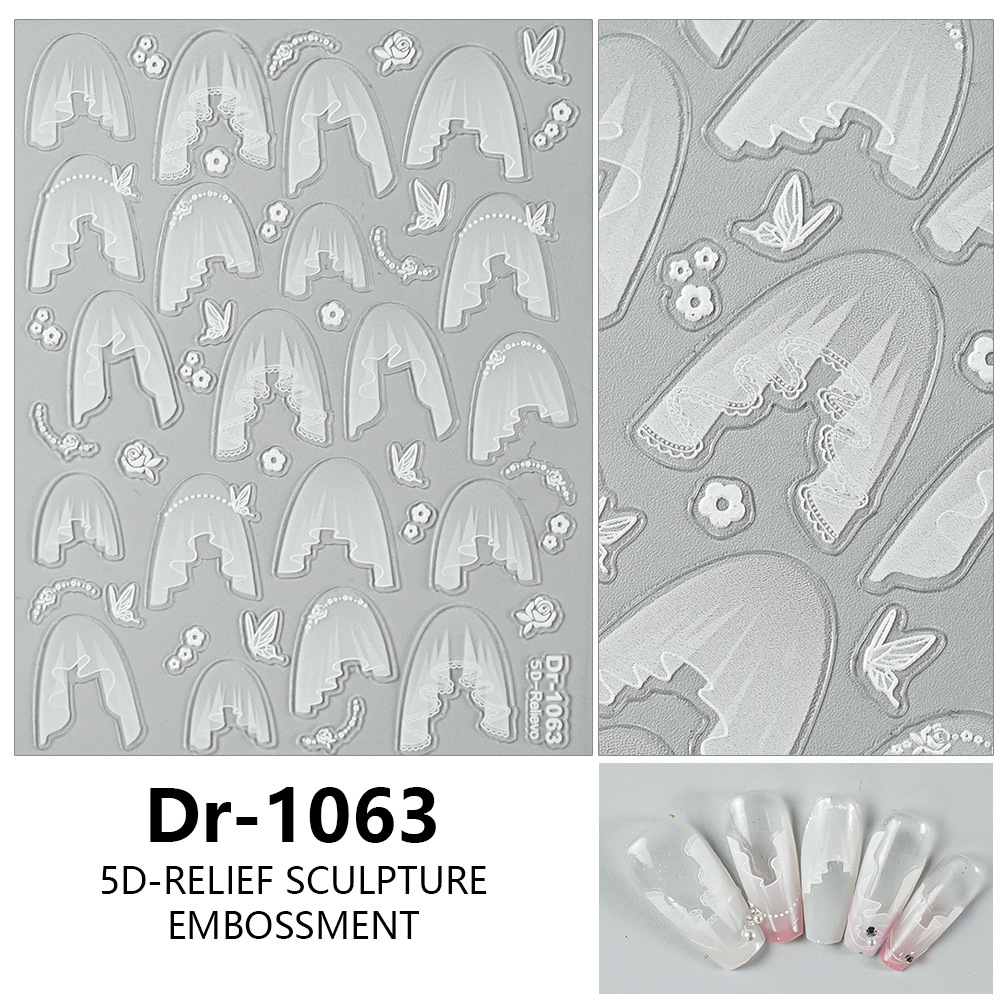 Redanco 새로운 5D 양각 인터넷 연예인 레이스 Tulle 쉘 라이트 네일 아트 스티커 3 차원 네일 스티커 Dr-1070