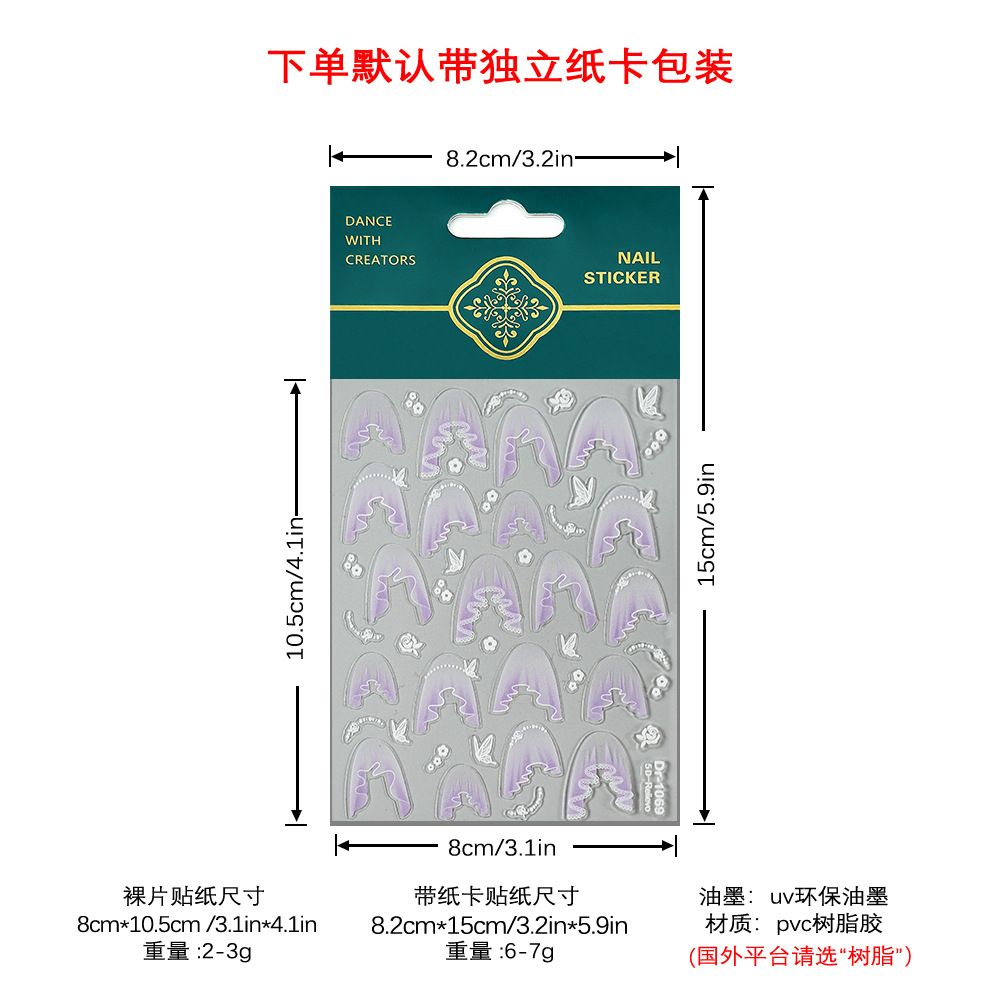 Redanco 새로운 5D 양각 인터넷 연예인 레이스 Tulle 쉘 라이트 네일 아트 스티커 3 차원 네일 스티커 Dr-1070스토어 가기