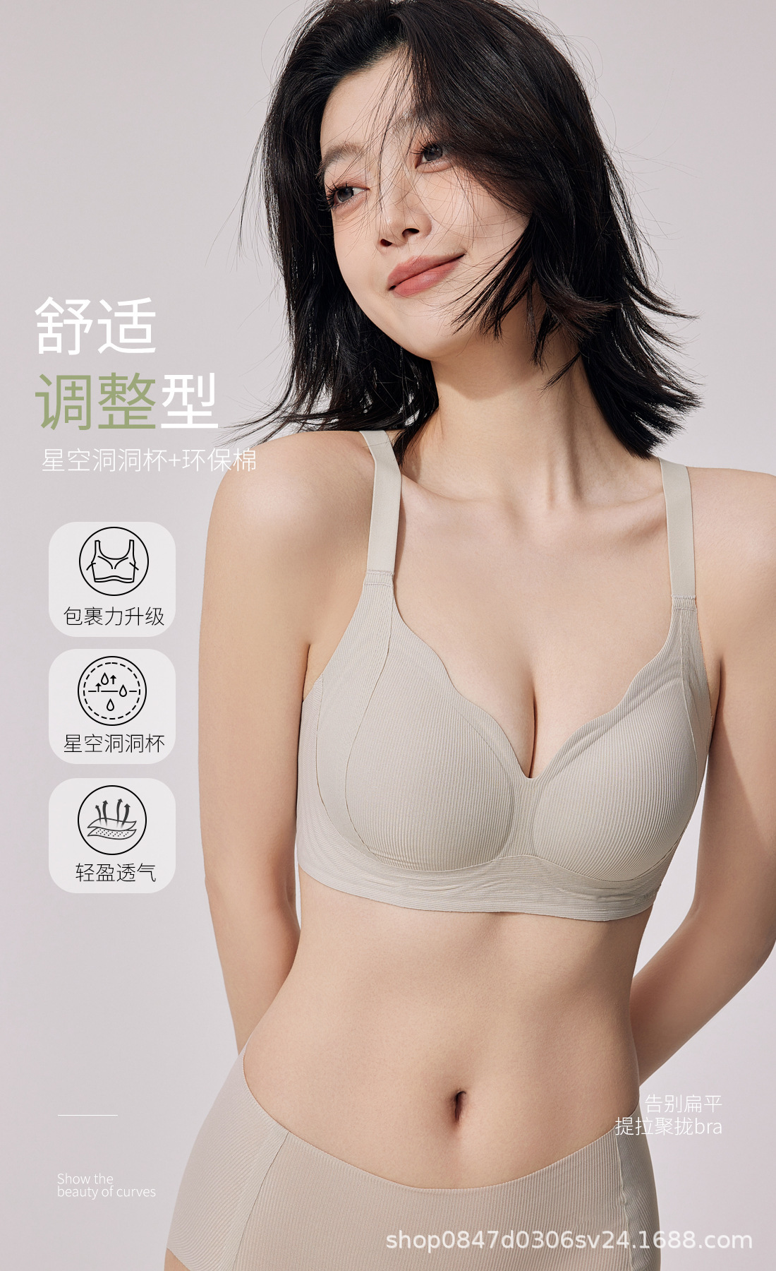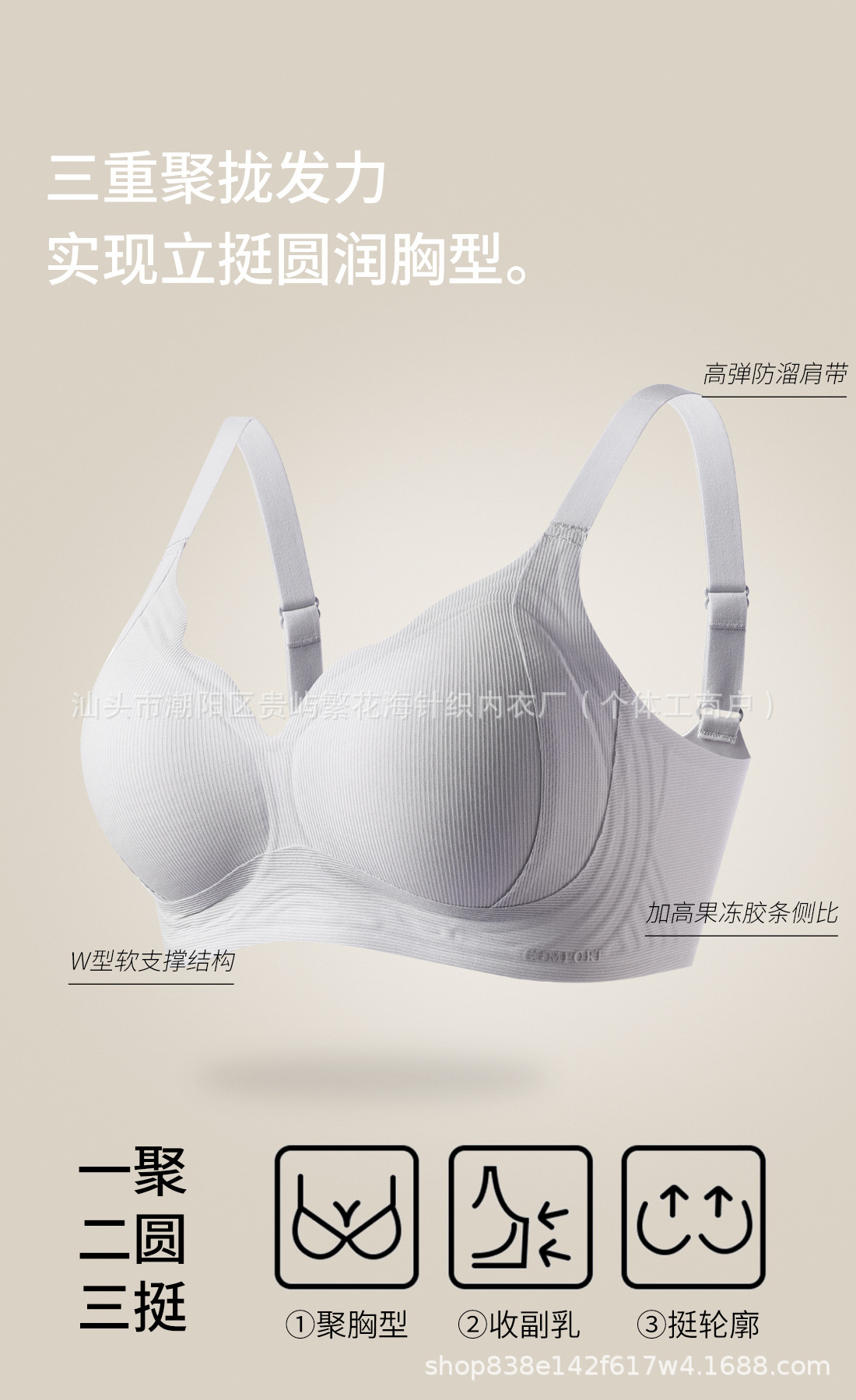 원래 Tracless 속옷 여성의 큰 가슴은 작은 가슴 2025 새로운 소프트 지원 모임 파름 얇은 아름다운 뒷브래지어