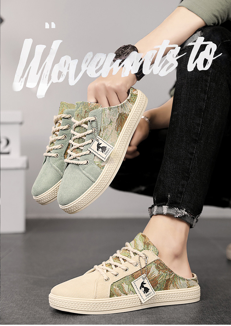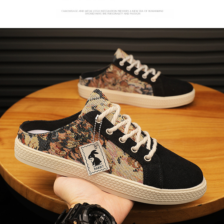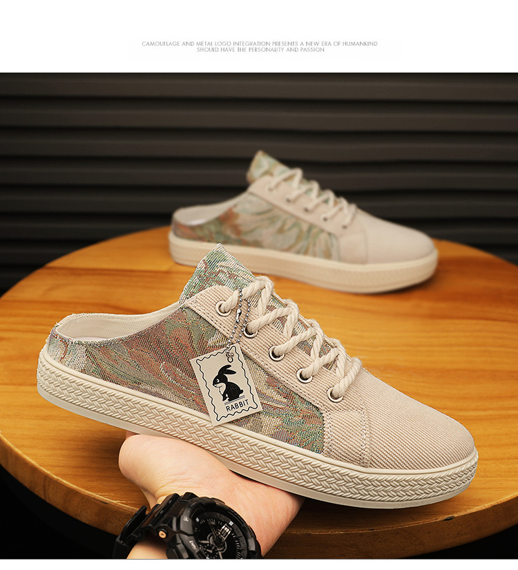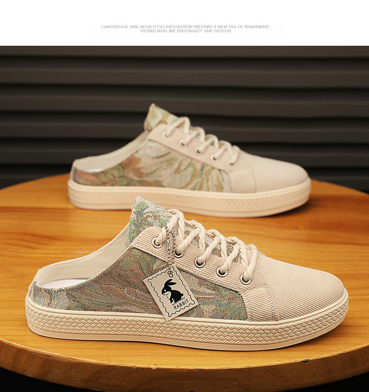 Baotou 하프 슬리퍼 남자 여름 2025 새로운 도착 남자 슬립 온 통기성 힐리스 패셔너블 아웃웨어 남성용 단순 신발스토어 가기