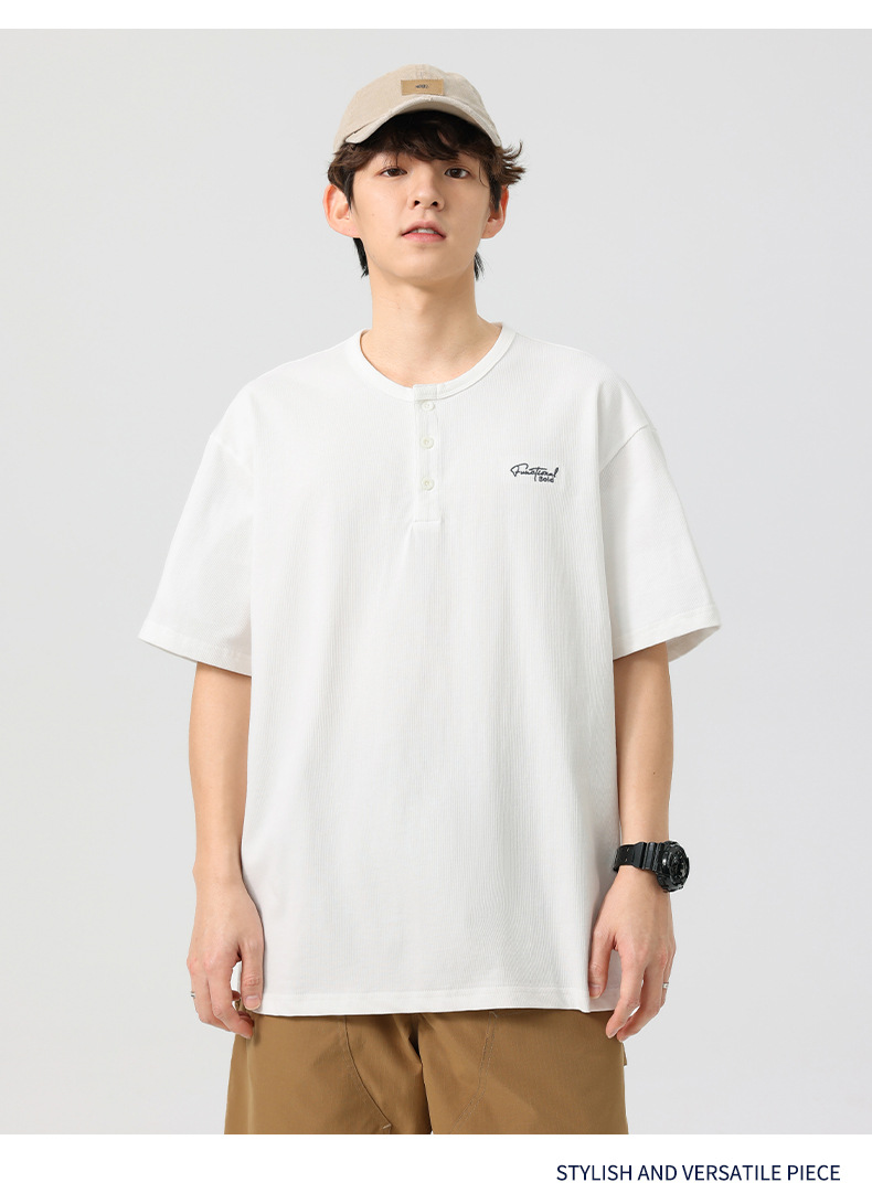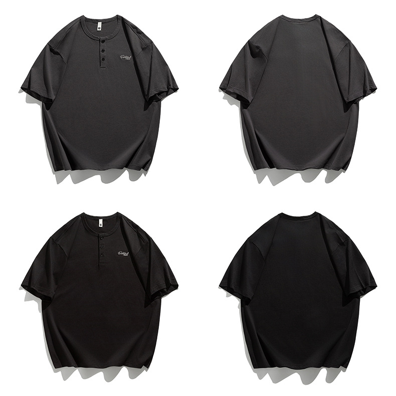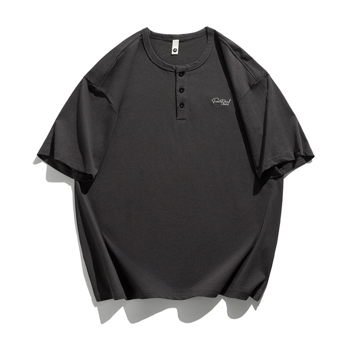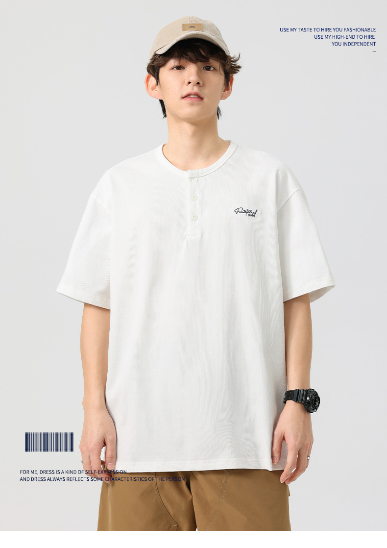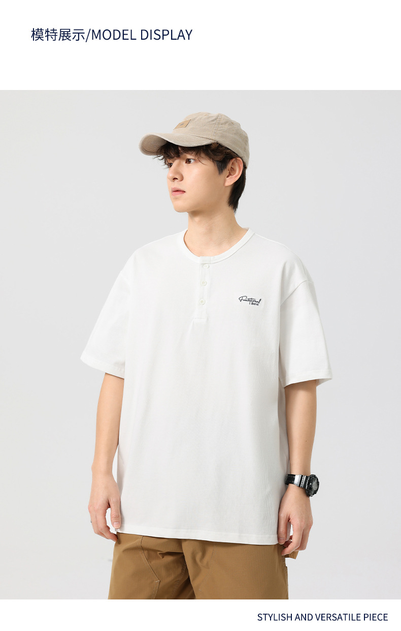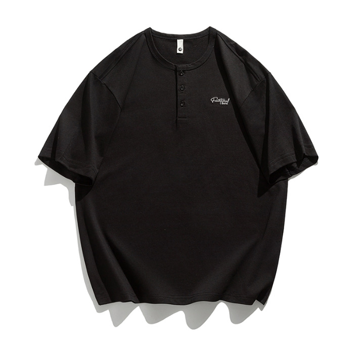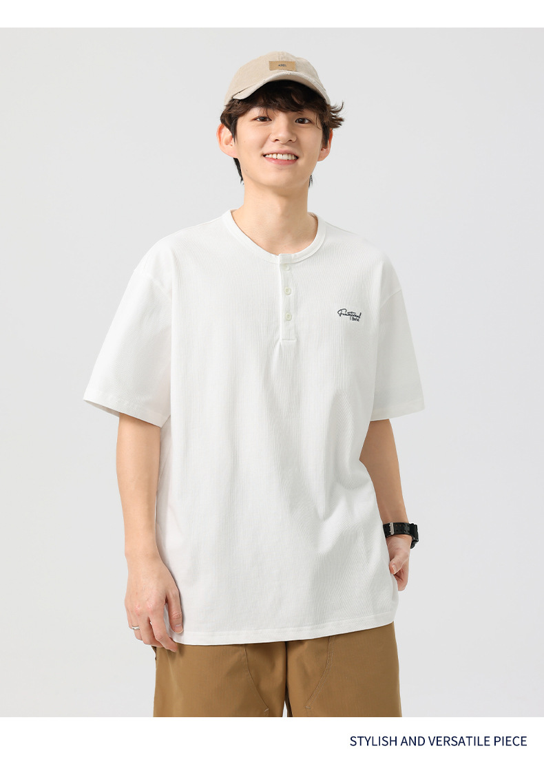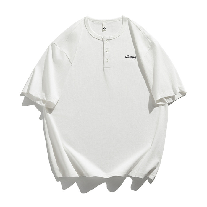 여름 반팔 티셔츠 남자 크루 넥 버튼 하프 카디건 무거운 편지 자수 캐주얼 반팔베이스 탑스토어 가기