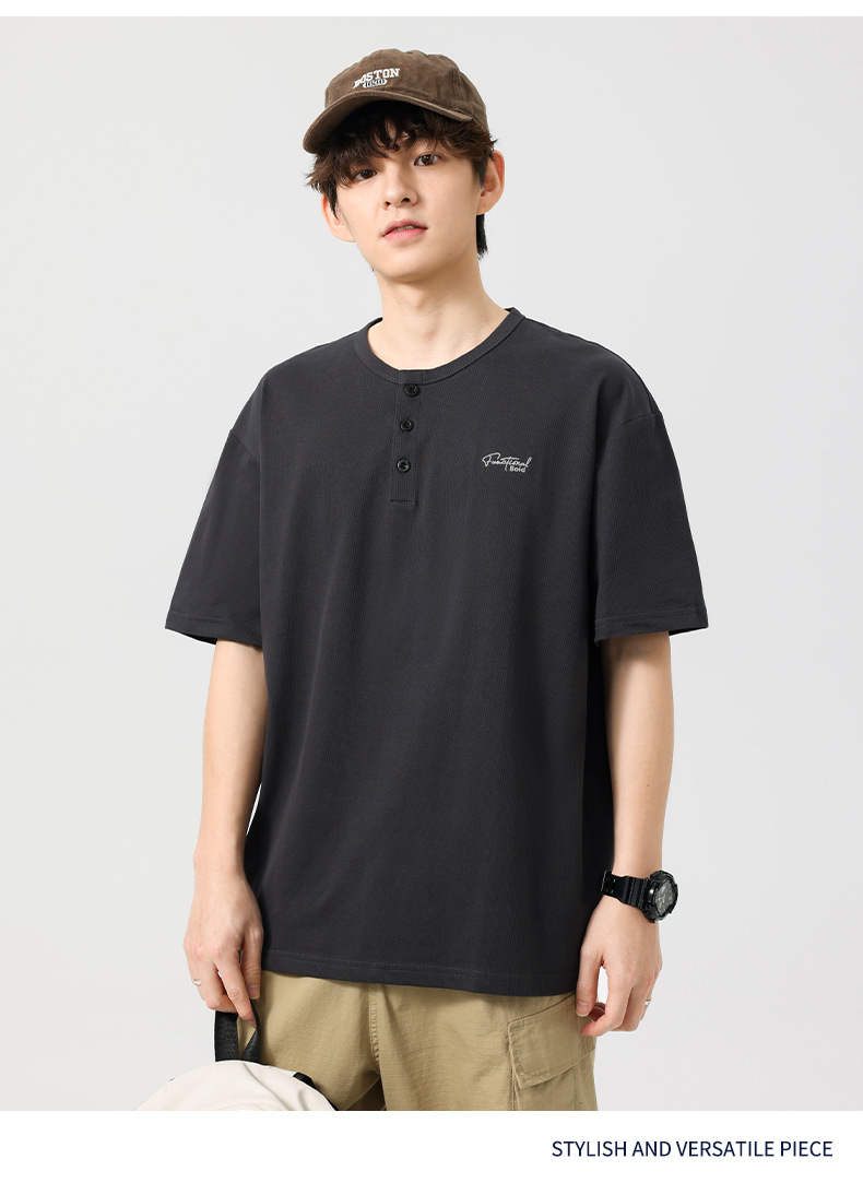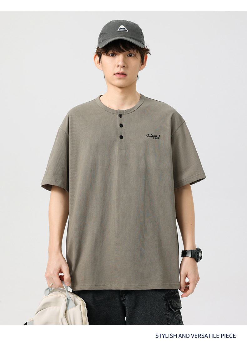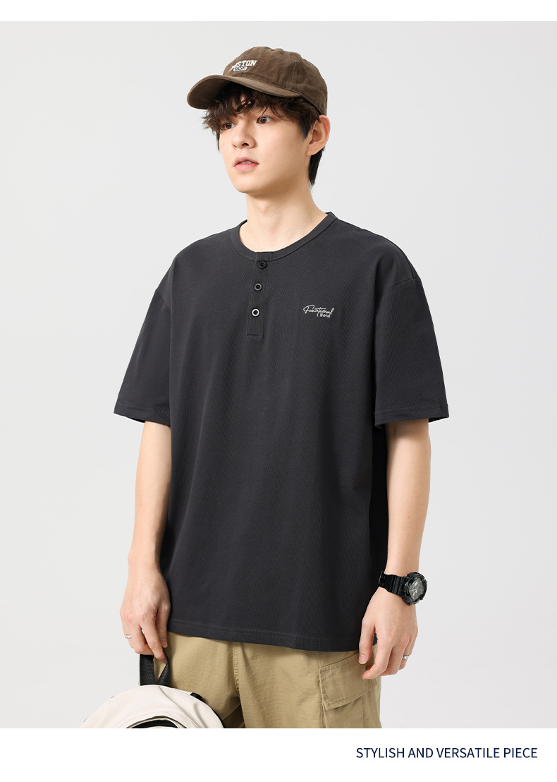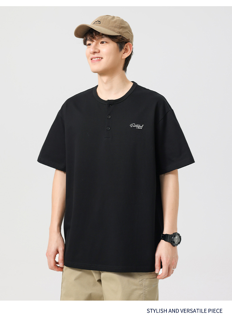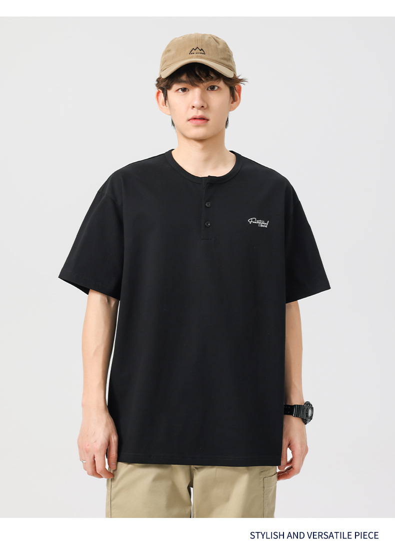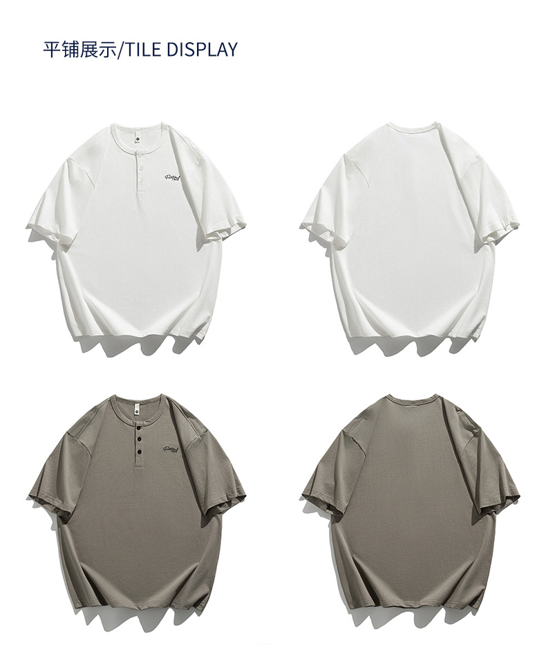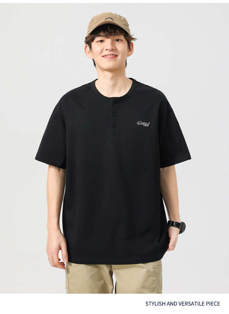 여름 반팔 티셔츠 남자 크루 넥 버튼 하프 카디건 무거운 편지 자수 캐주얼 반팔베이스 탑스토어 가기