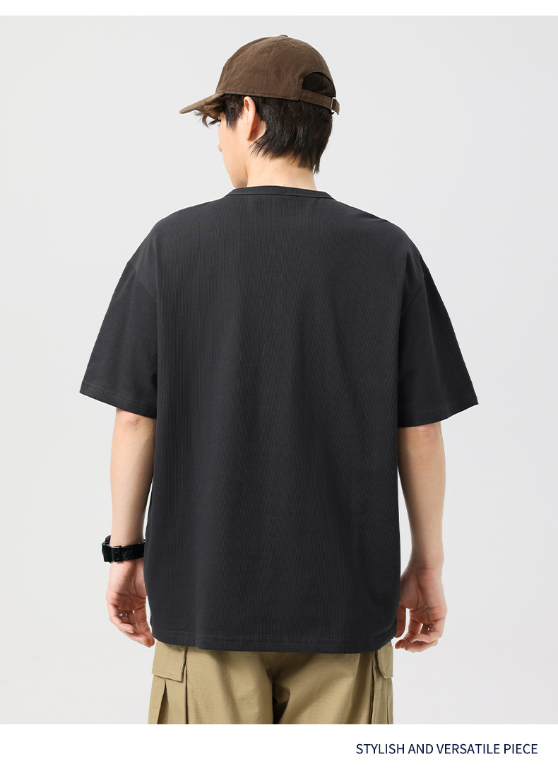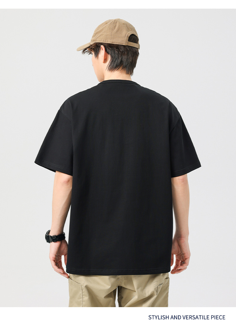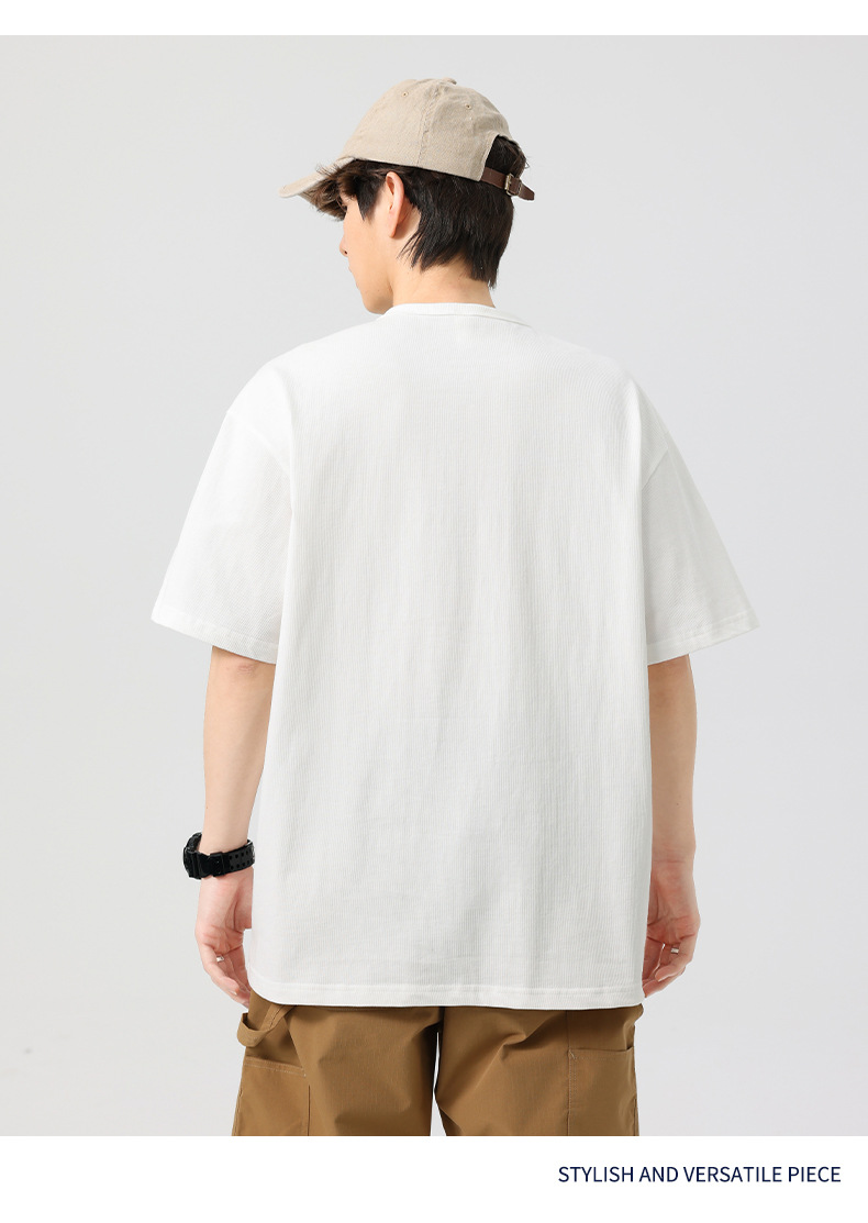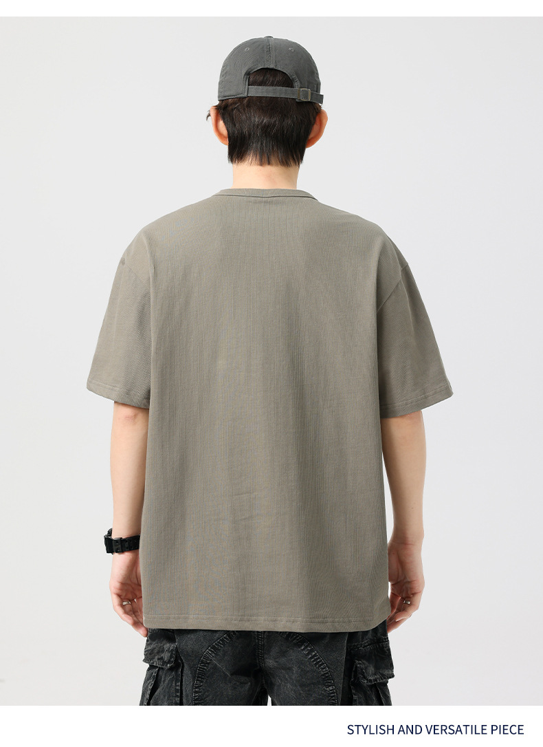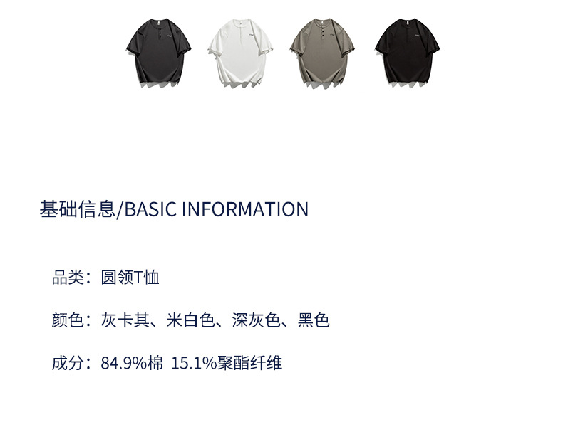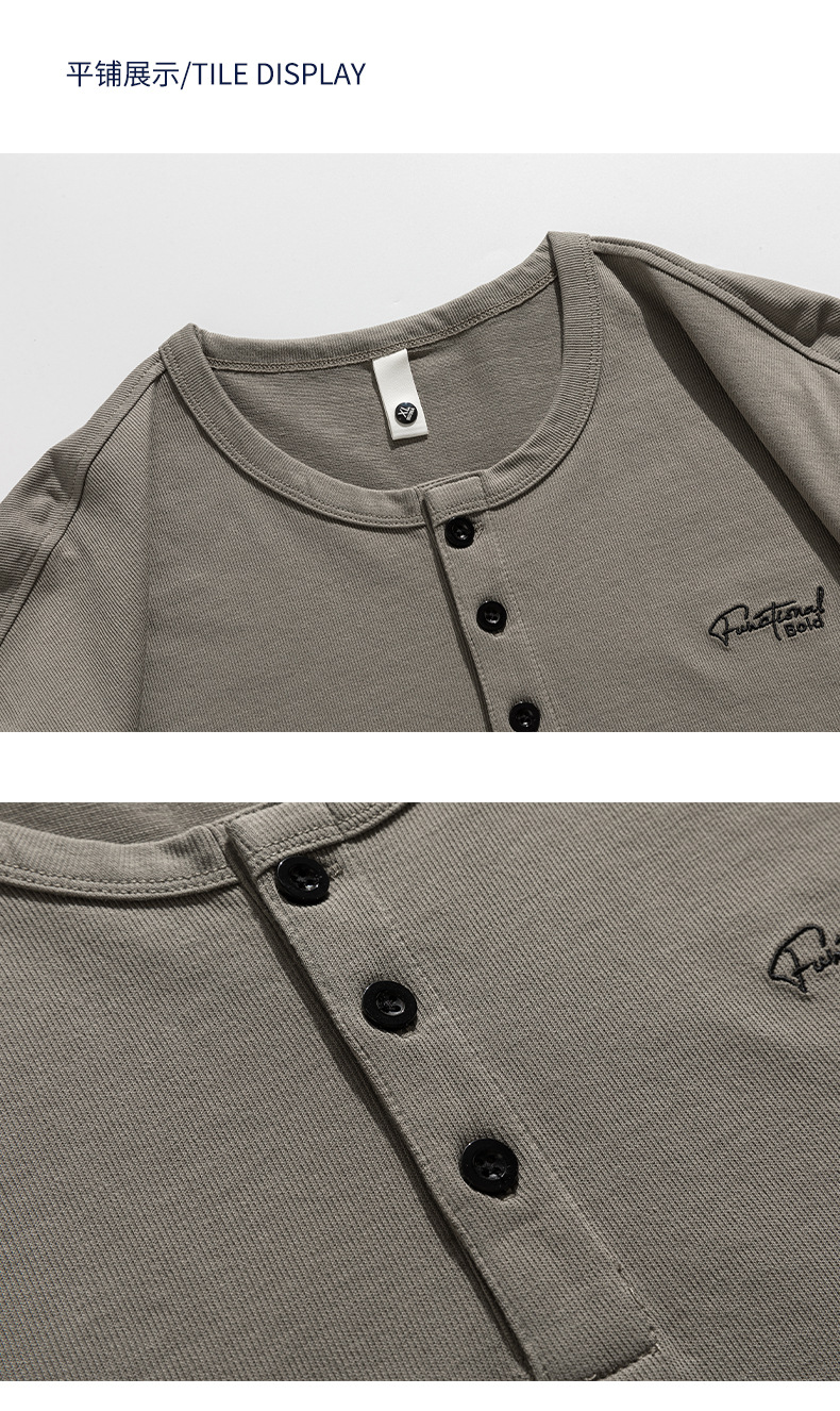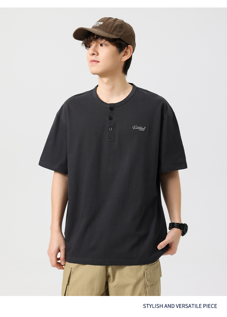 여름 반팔 티셔츠 남자 크루 넥 버튼 하프 카디건 무거운 편지 자수 캐주얼 반팔베이스 탑스토어 가기