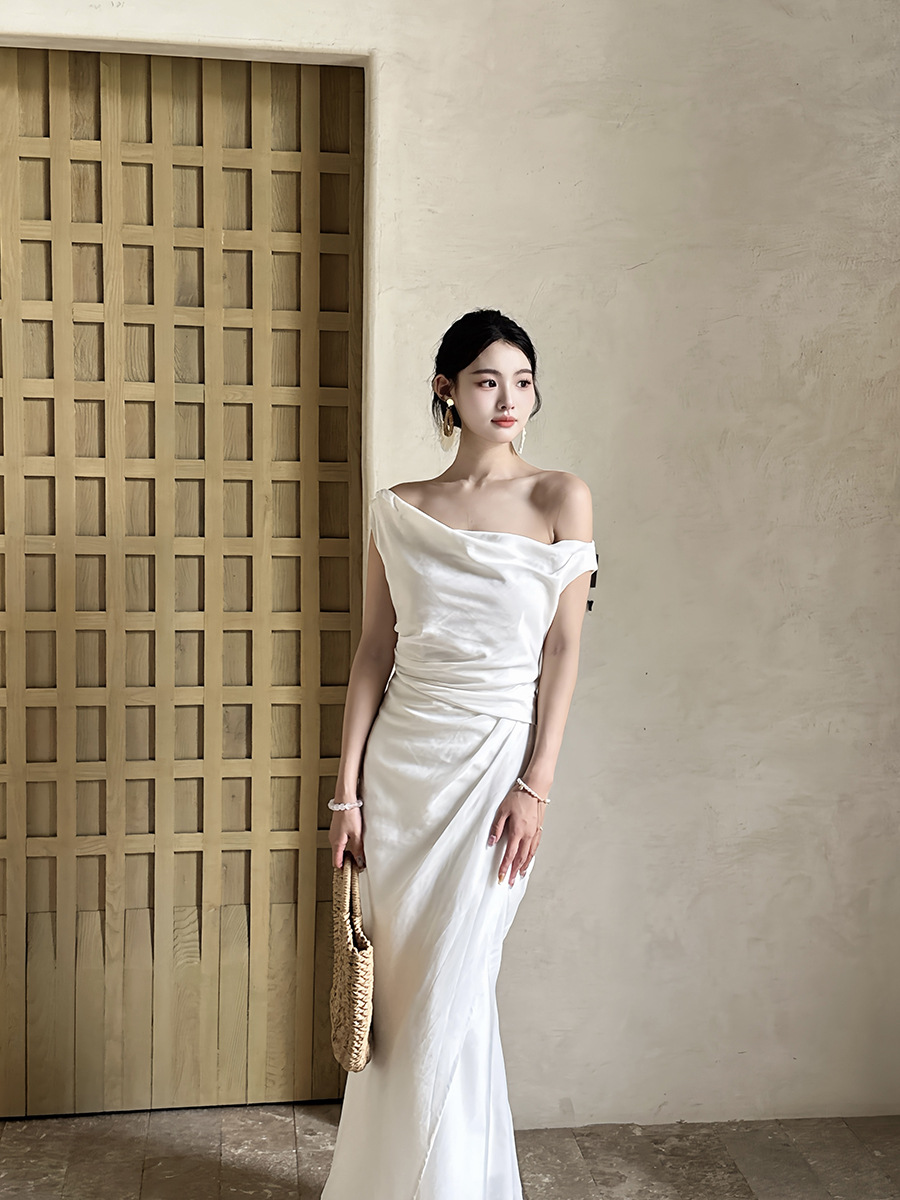 [빛의 사람들의 치마] 순수한 욕망 꼬치 어깨 원피스 여성 슬림핏 꽉 조이는 허리 슬리밍 피쉬 스커트 하이 엔드 롱 스커트