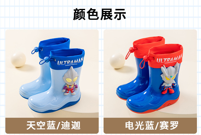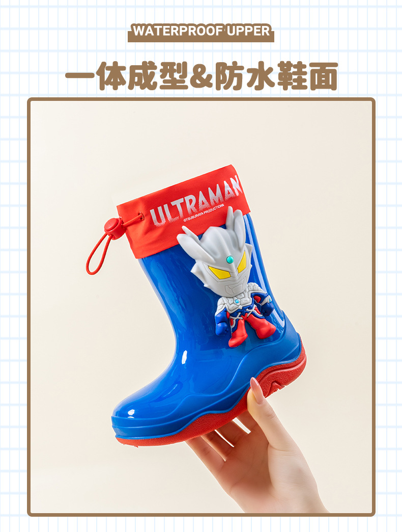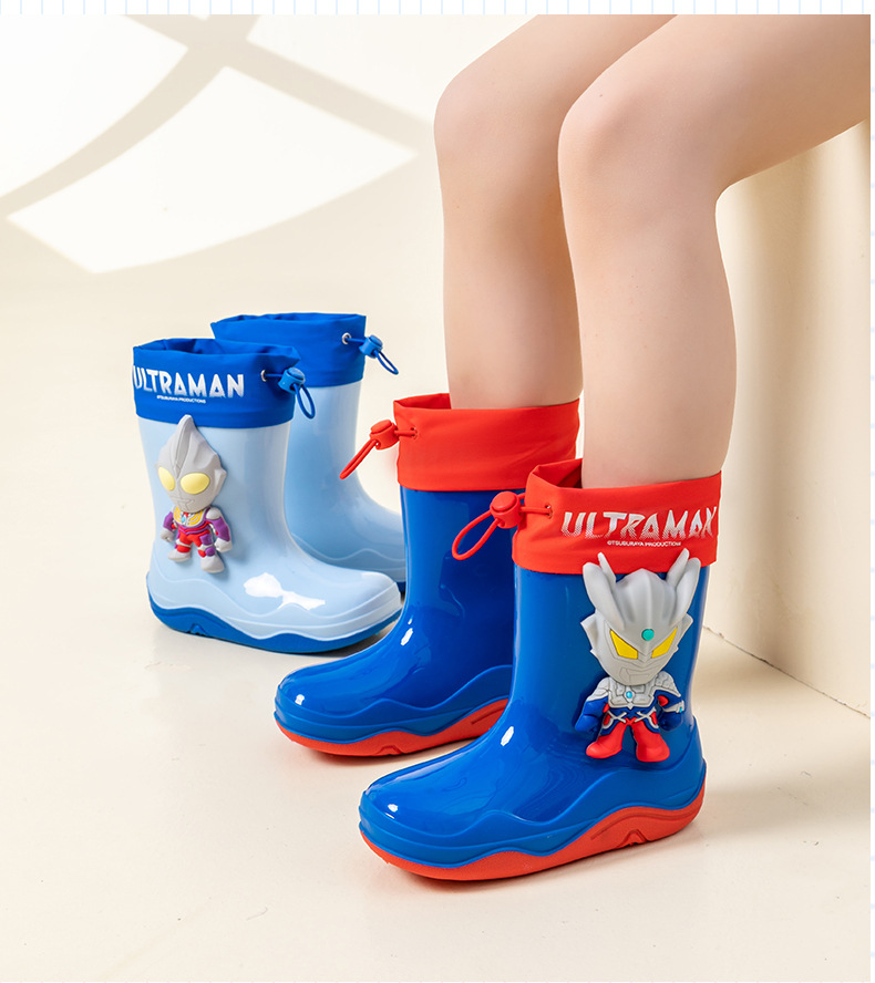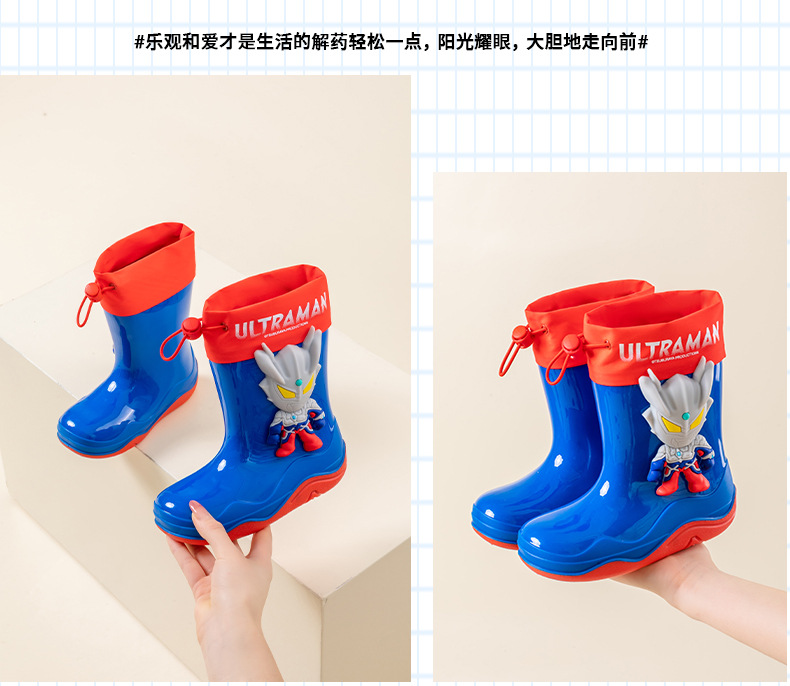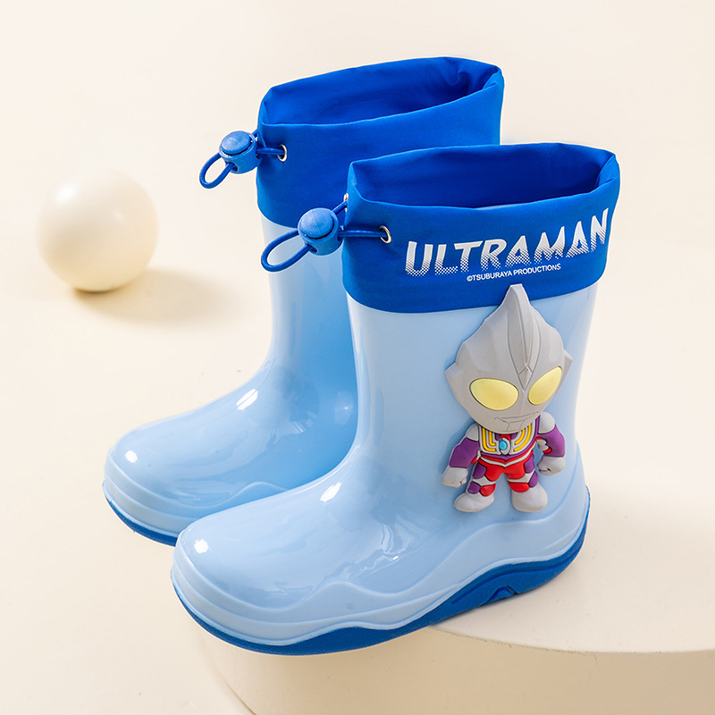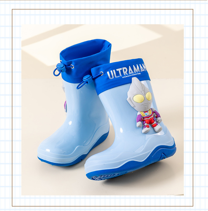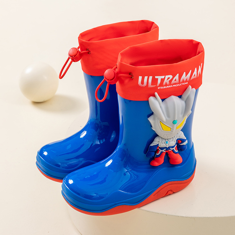 남학생을위한 울트라 맨 어린이 장화 아기 유치원 초등학생 레인 부츠 소년 만화 미끄럼 방지 방수 워터 슈즈 소프트