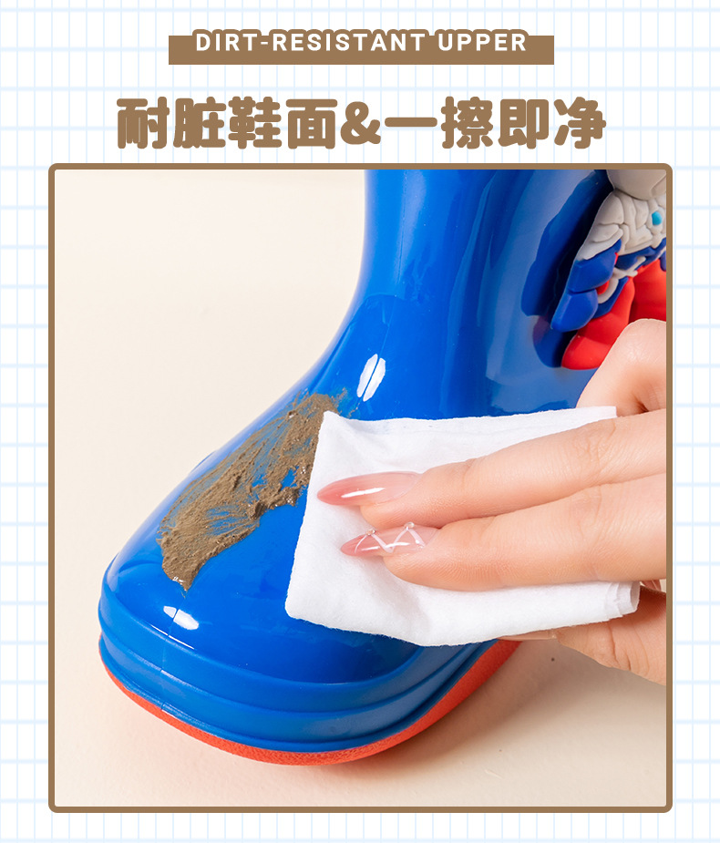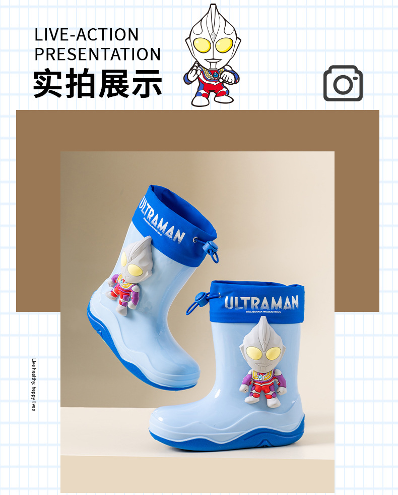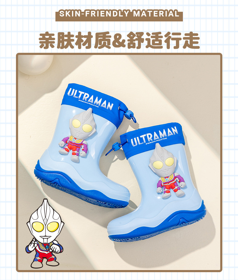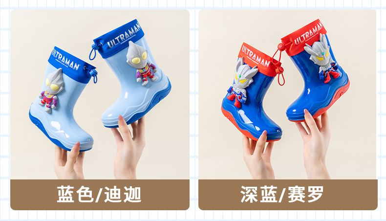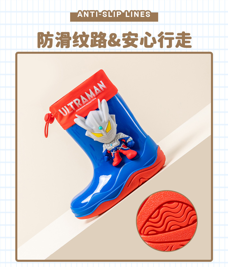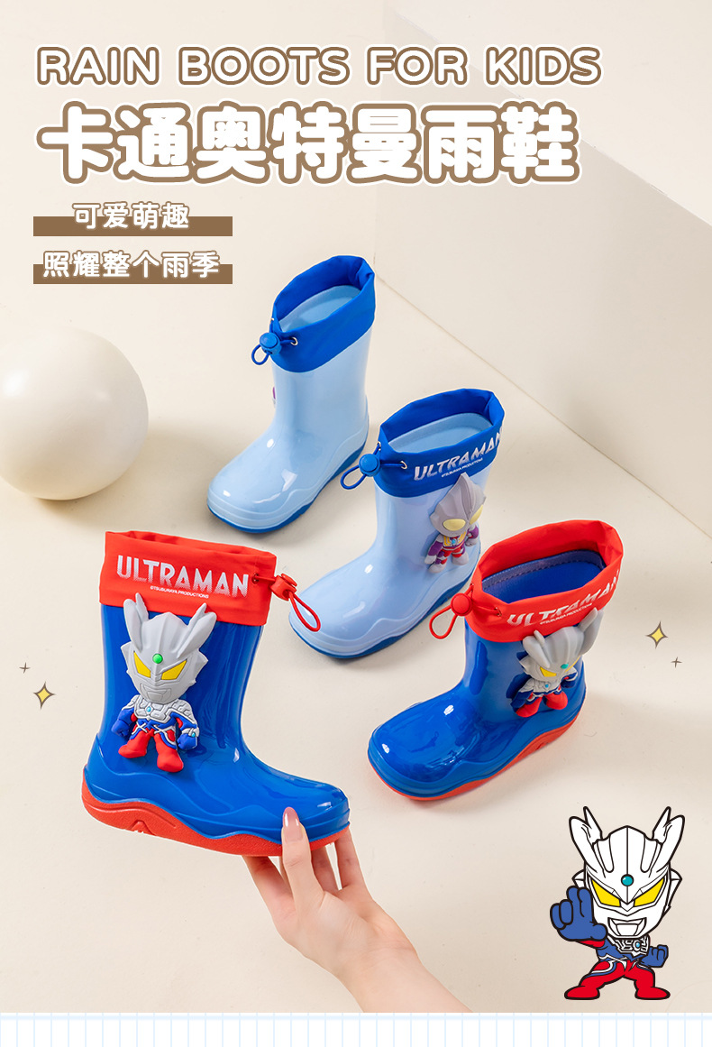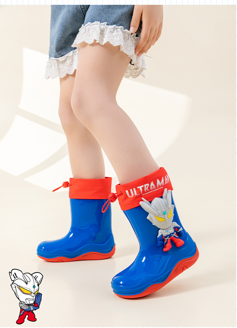 남학생을위한 울트라 맨 어린이 장화 아기 유치원 초등학생 레인 부츠 소년 만화 미끄럼 방지 방수 워터 슈즈 소프트