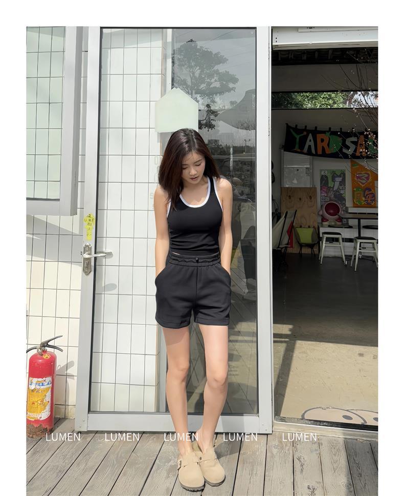 LULU 동일 소프트 스트롬 올 매치 피트니스 스포츠 레저 소프트 왁스 스킨 친화적 인 4 인치 A 라인 허리 피트니스 반바지스토어 가기