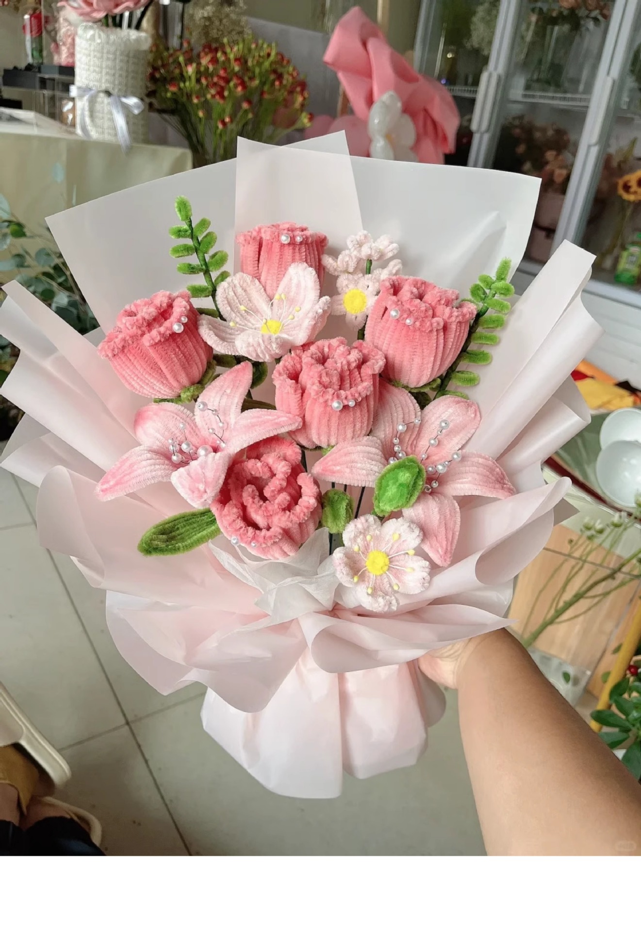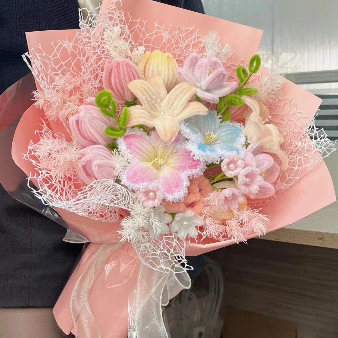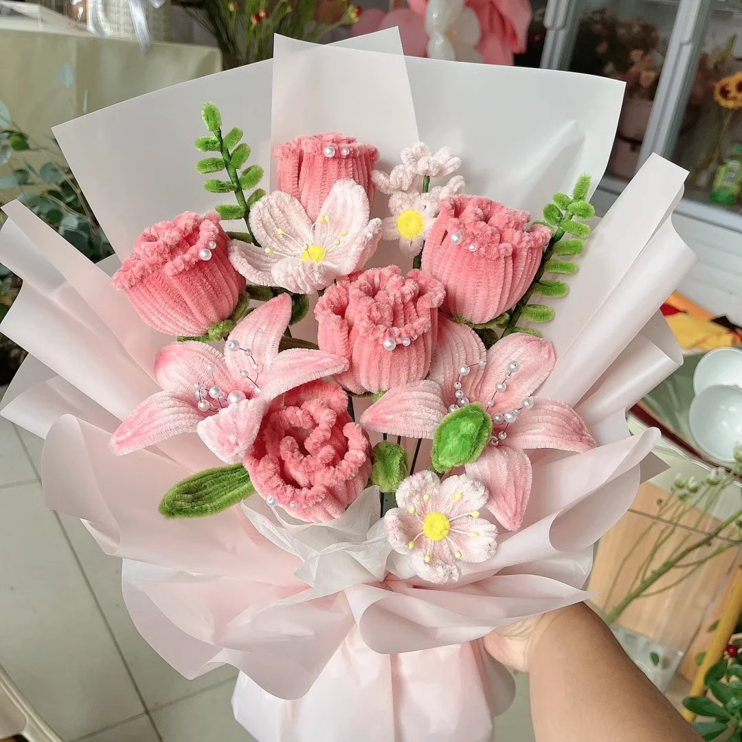 • 핑크 튤립 장미 꽃다발 재료 패키지에는 튜토리얼이 포함되어 있습니다.