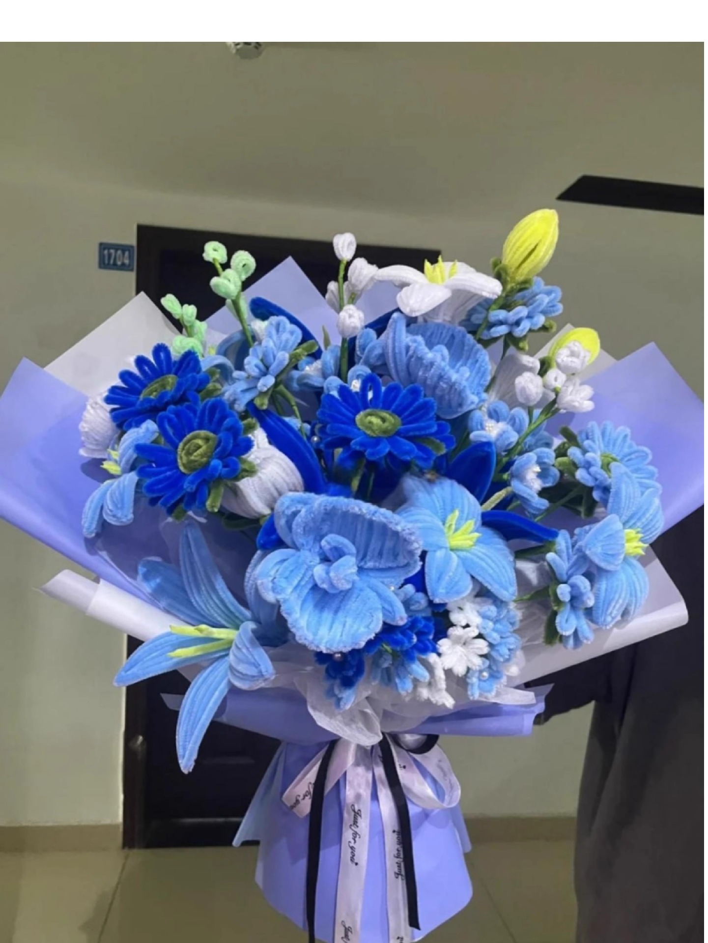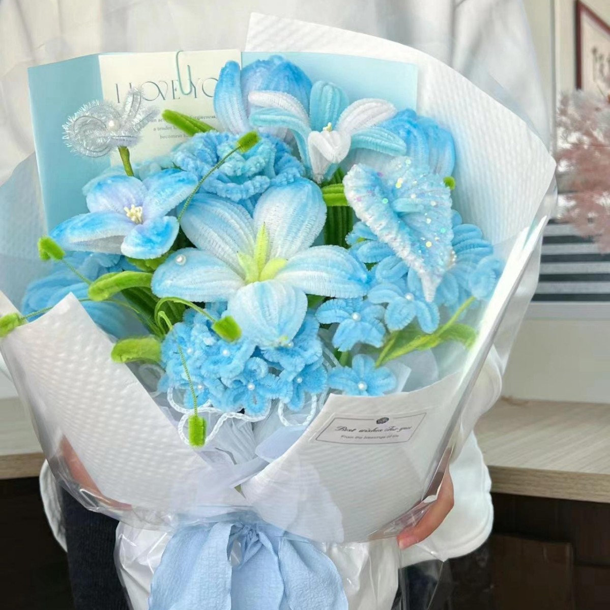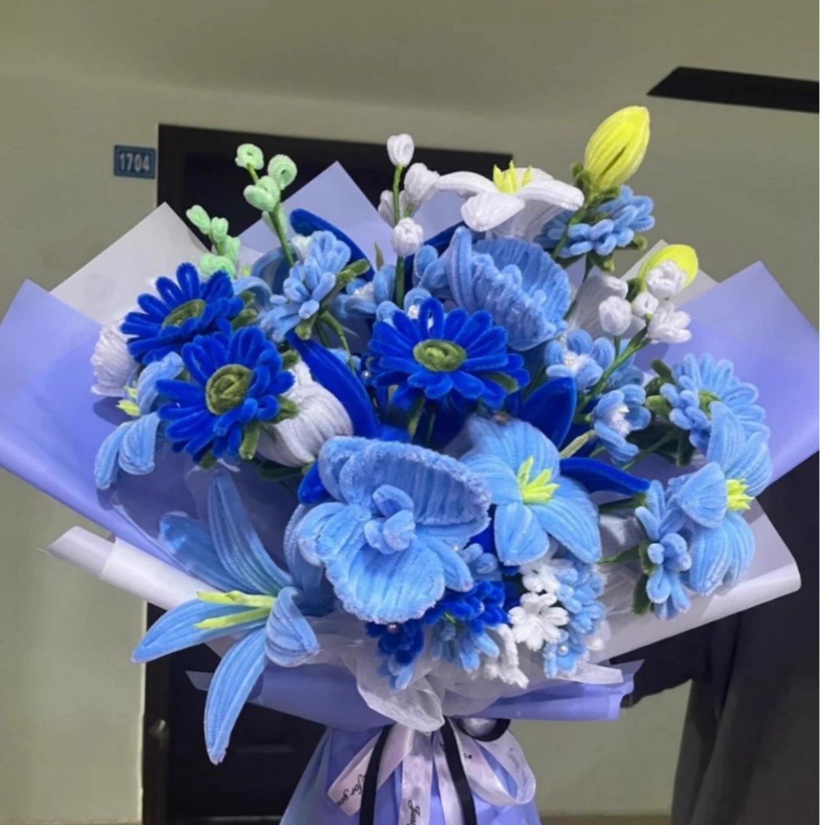 • 튜토리얼이 포함된 파란색 아프리카 꽃다발 재료 패키지