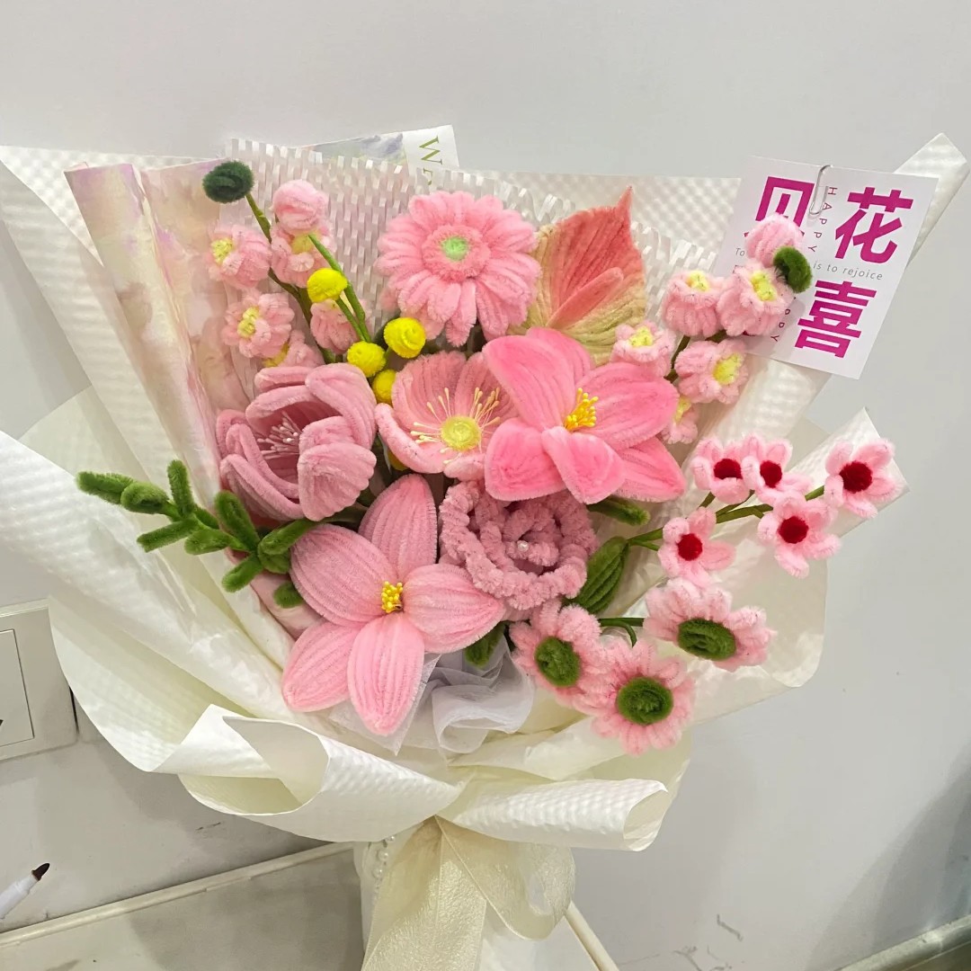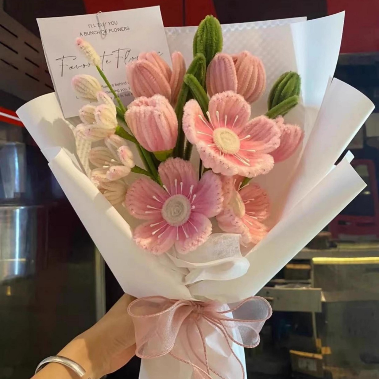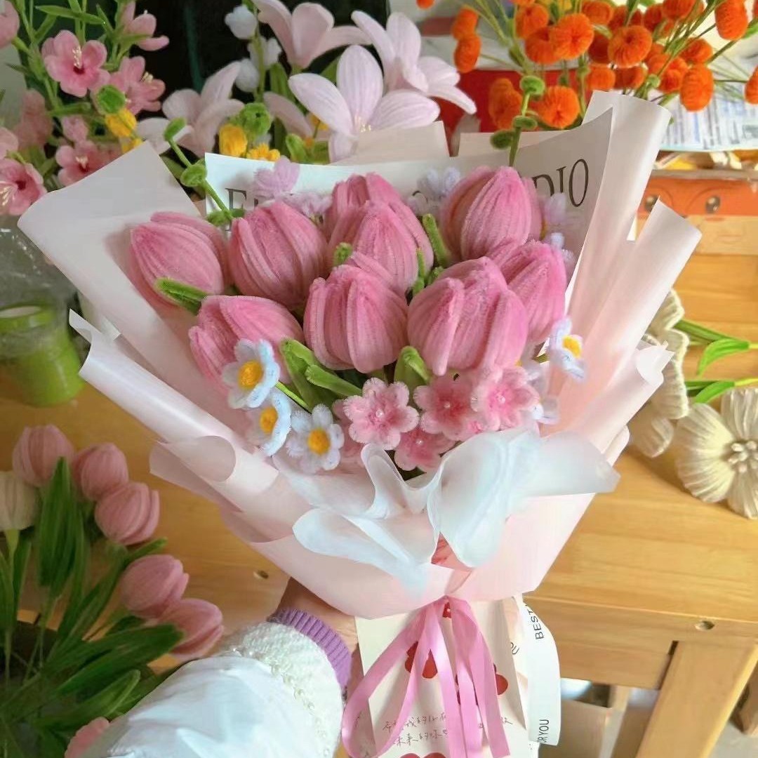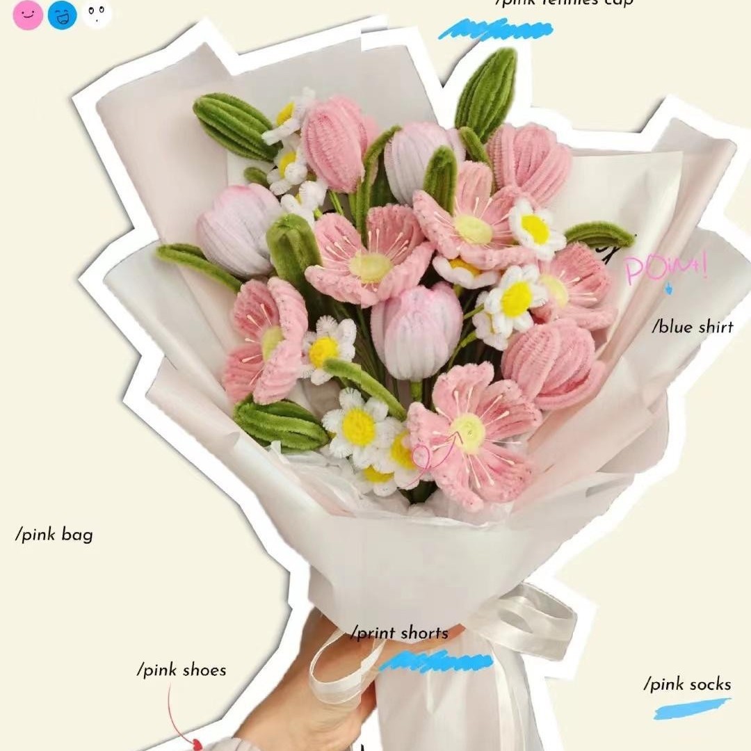 • 핑크 튤립 카모마일 꽃다발 재료 패키지에는 튜토리얼이 포함되어 있습니다.