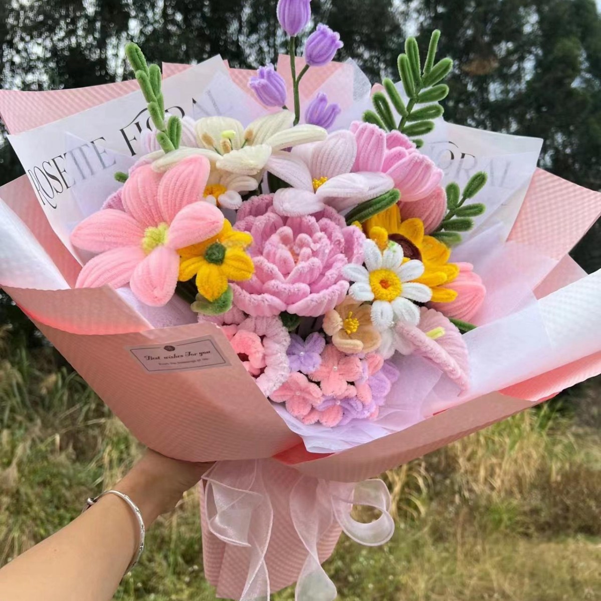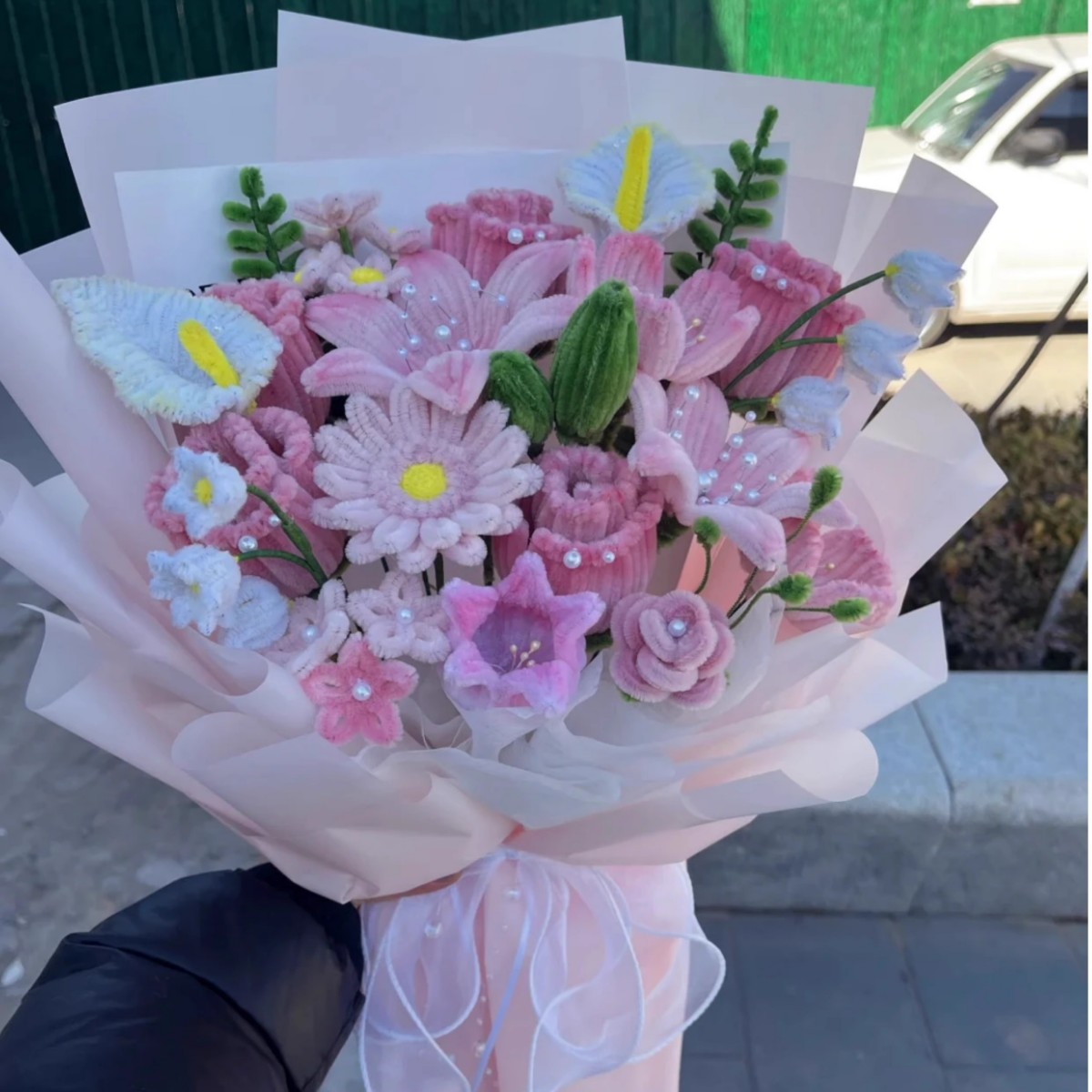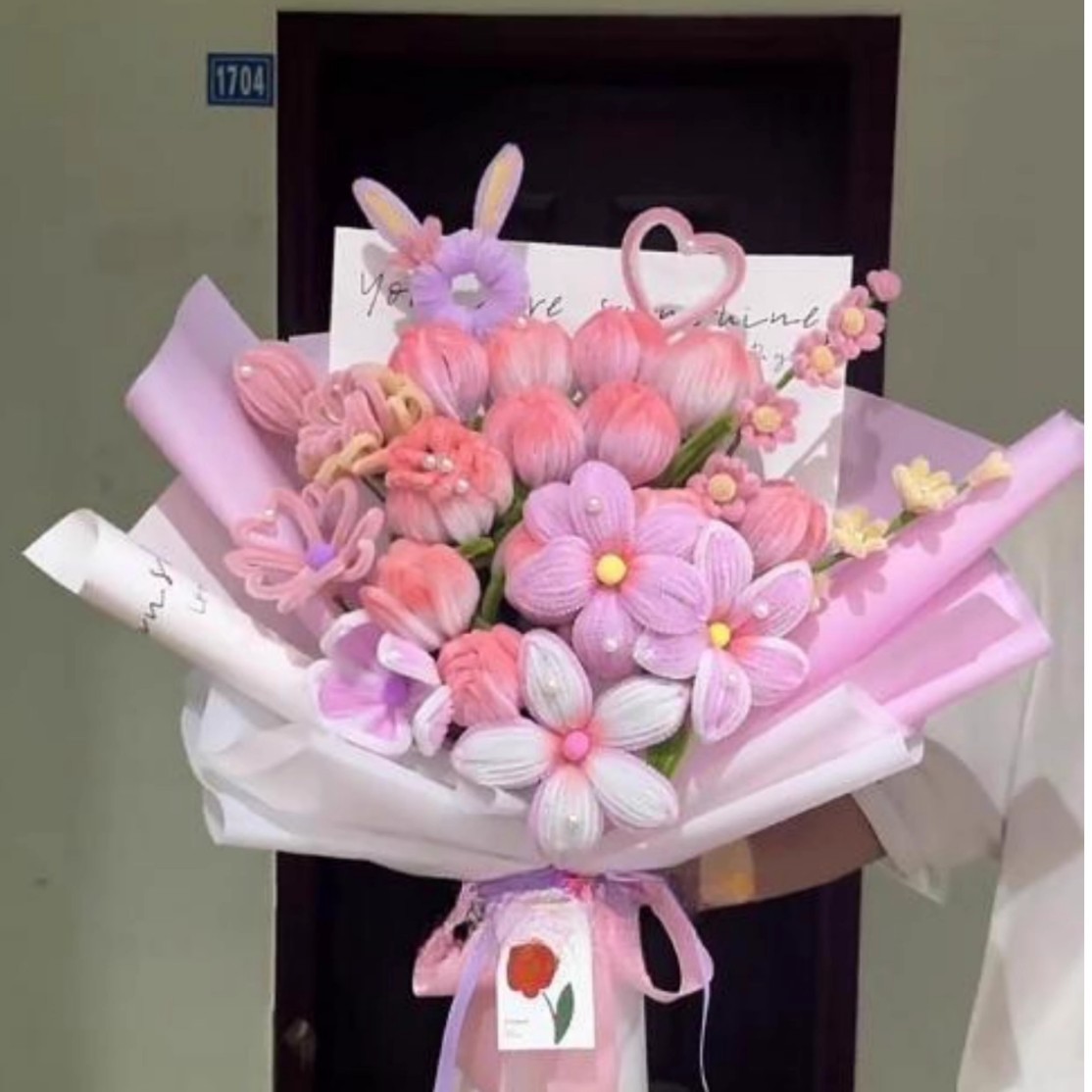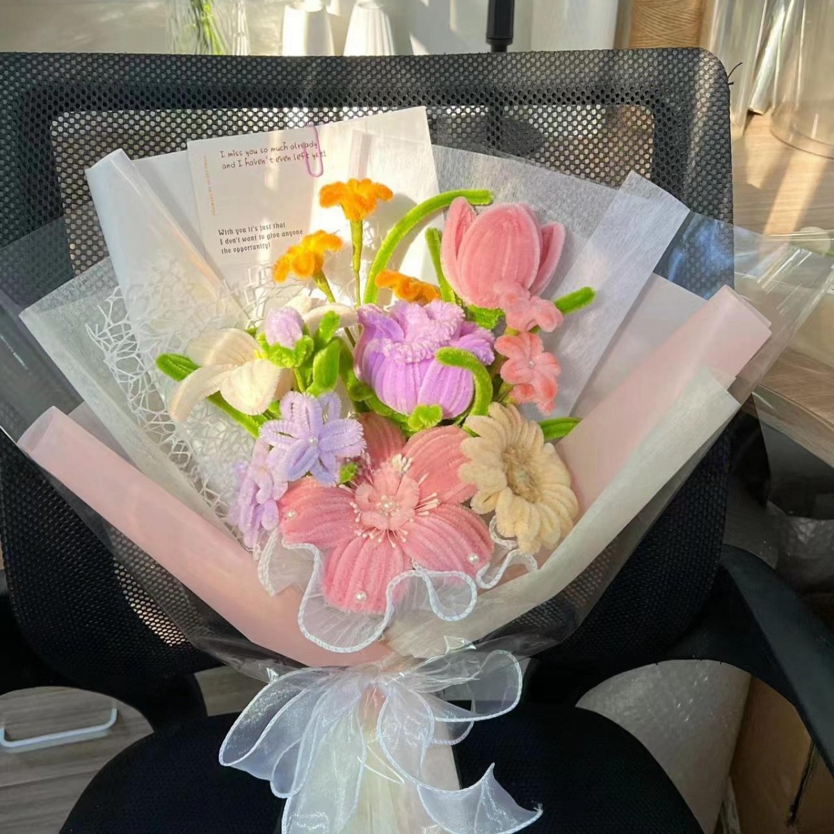 • 핑크 튤립 카모마일 꽃다발 재료 패키지에는 튜토리얼이 포함되어 있습니다.