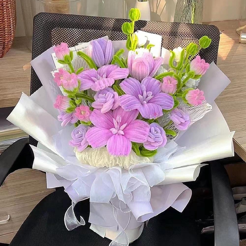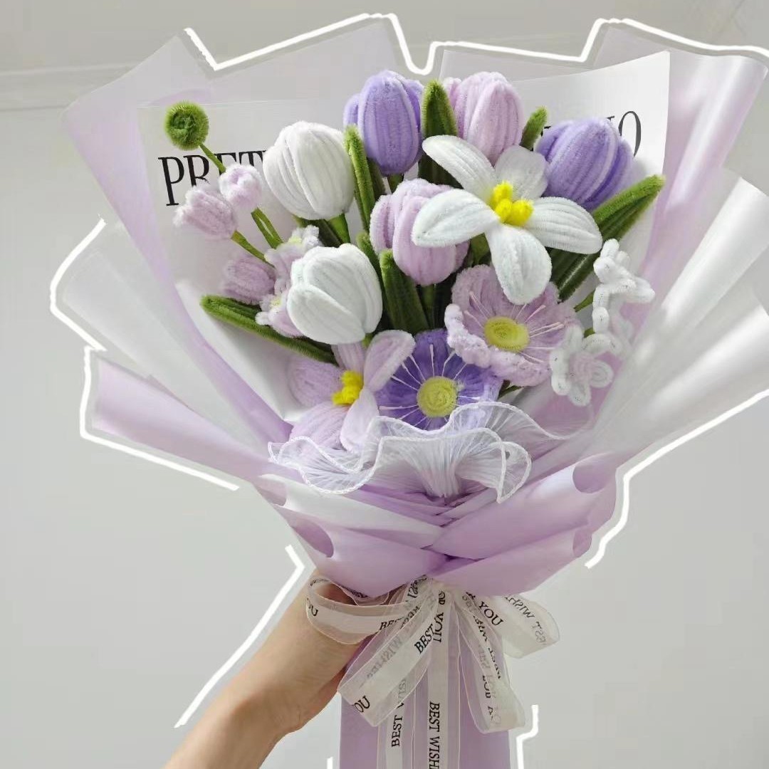 • 보라색 튤립 장미 꽃다발 재료 패키지에는 튜토리얼이 포함되어 있습니다.