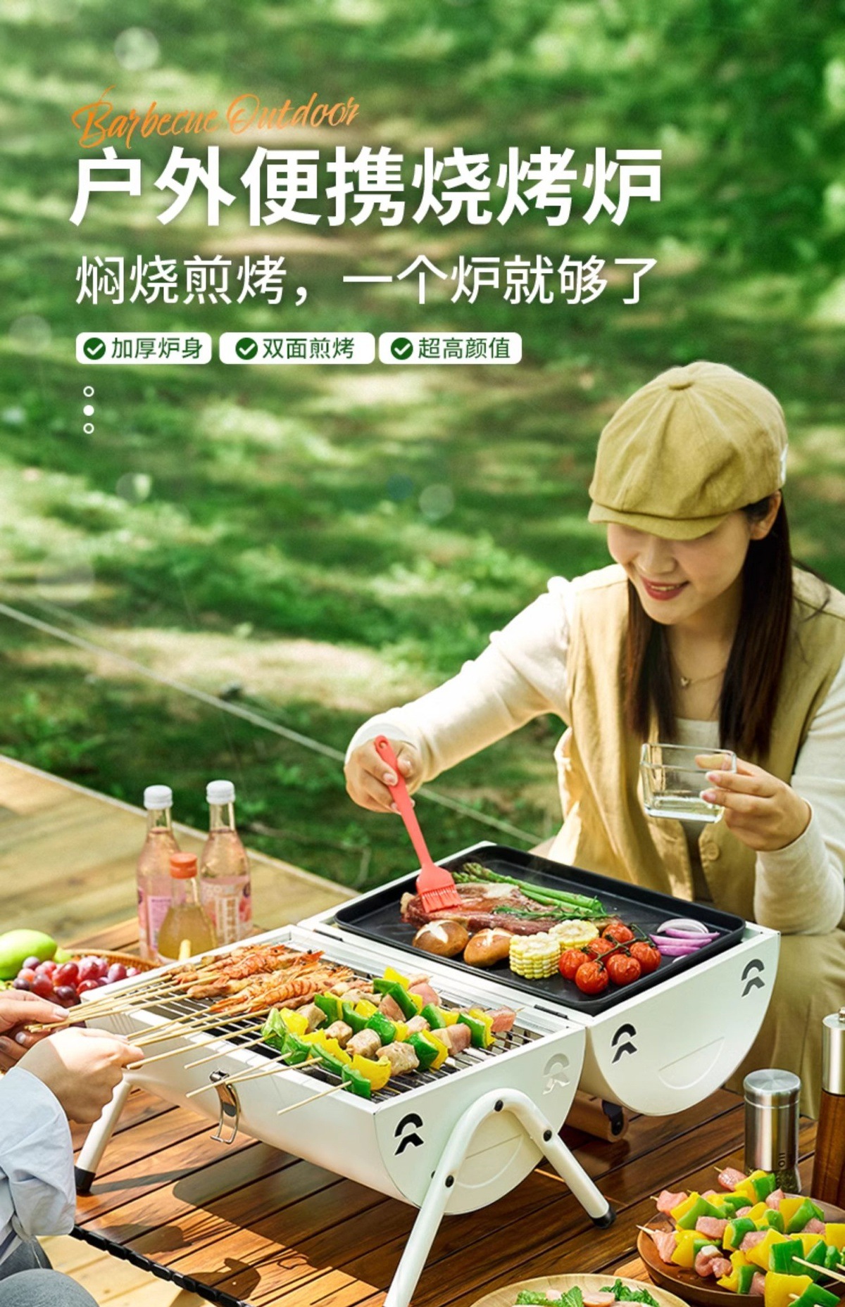 가정용 야외 접이식 휴대용 꼬치 그릴, 숯불 그릴, 인터넷 연예인 소형 바베큐 스탠드 전체 세트스토어 가기
