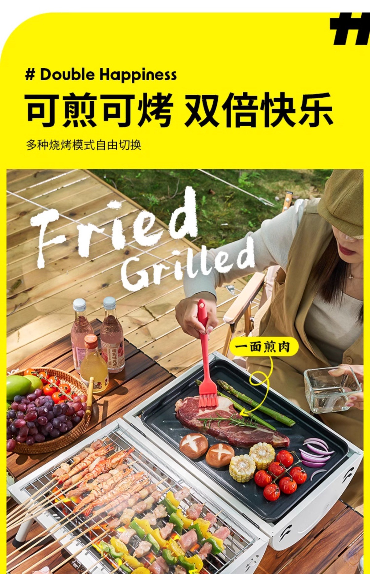 • 고급 그레이 - [이중 그릴망 + 프라이팬, 튀김 및 베이킹 가능] + 숯 5kg + 점화 및 튀김 도구