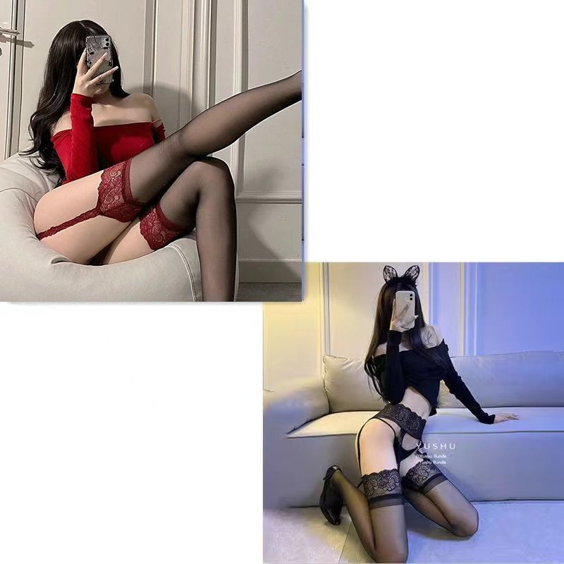• 빨간색 다리 고리 무테 가터 스타킹