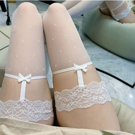 • 나비 다리 링 가터 스타킹 화이트