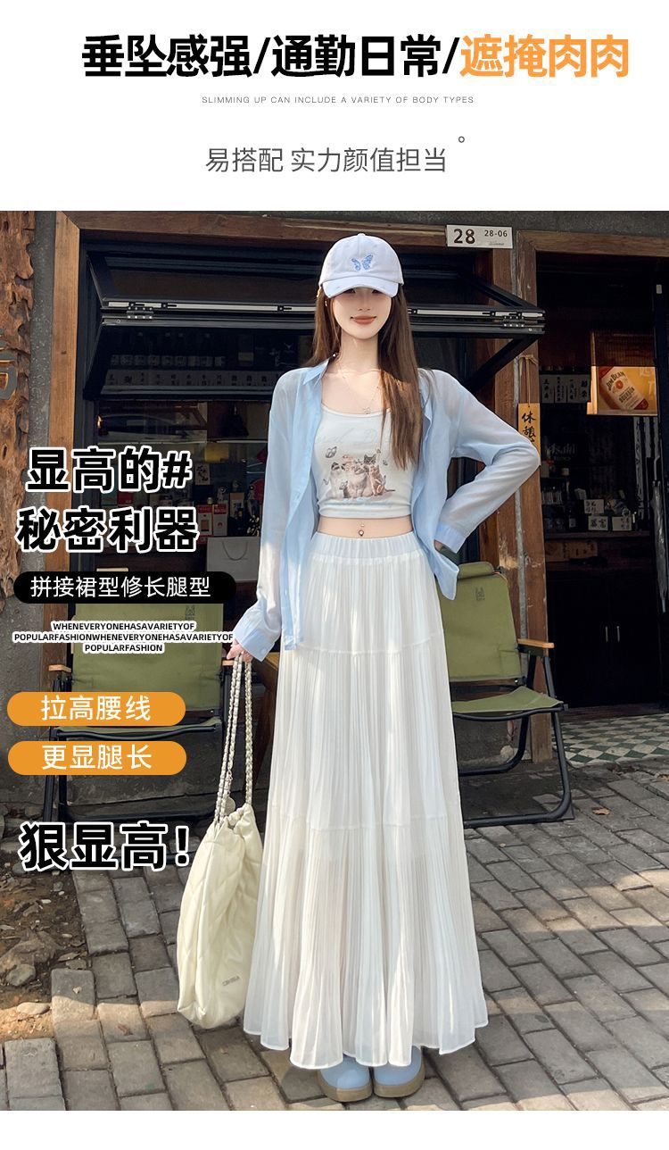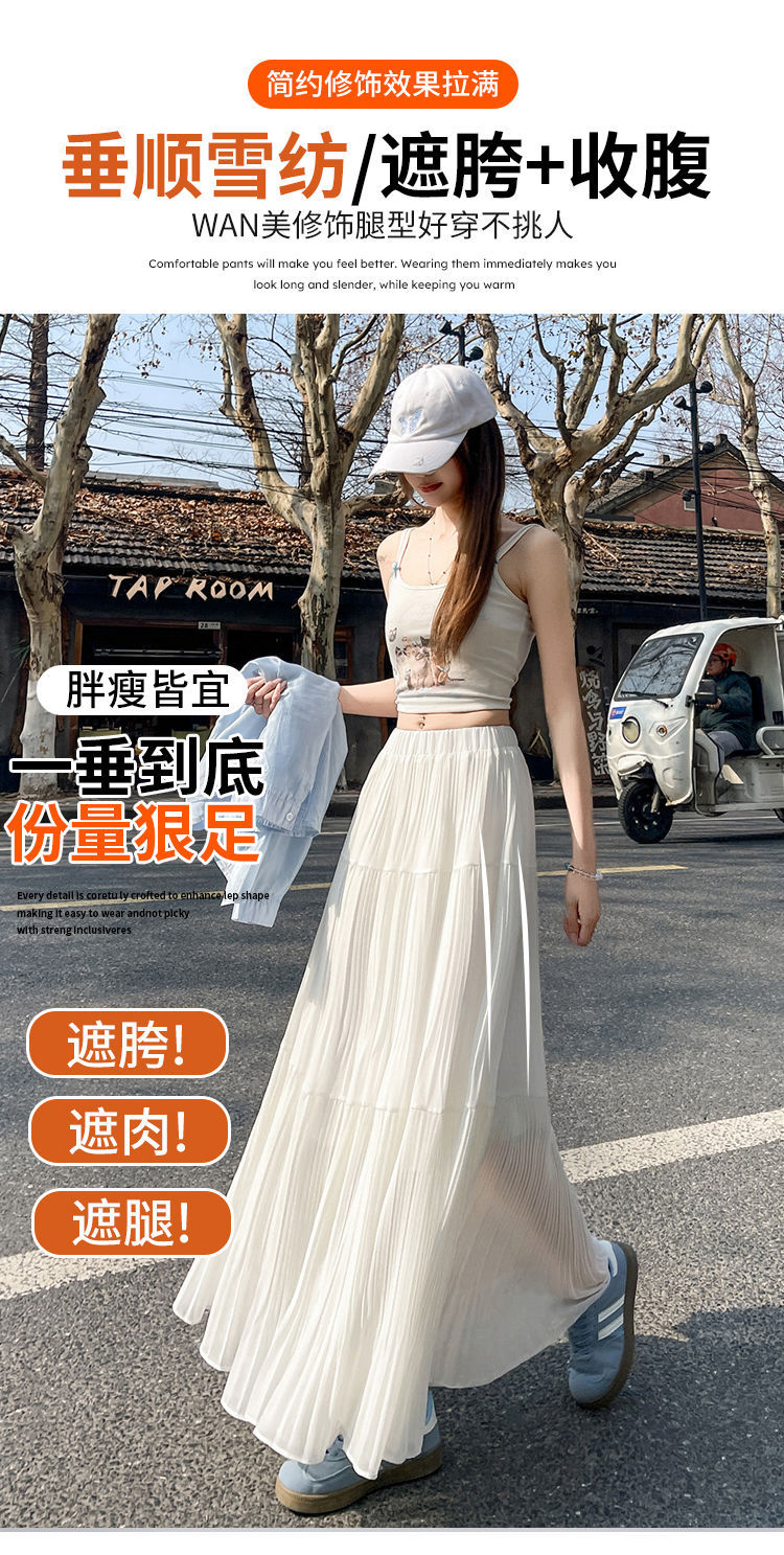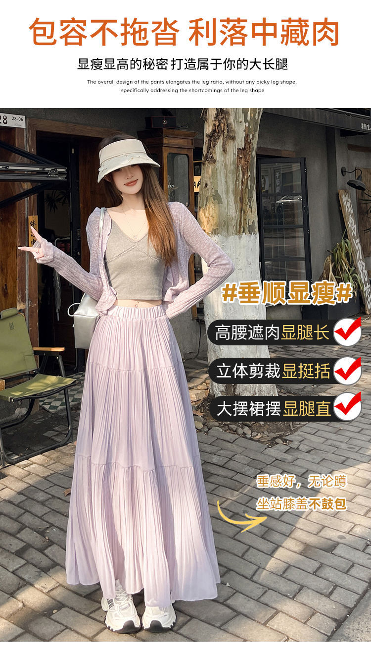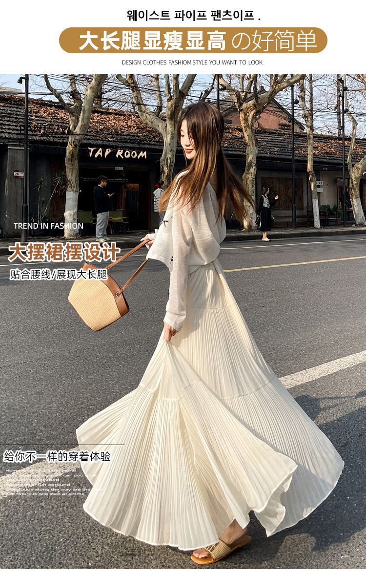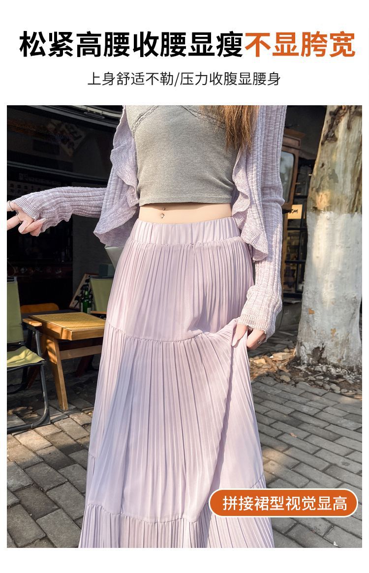 (안감 포함) 주름 공예 플리츠 스커트 여성 봄과 가을 여름 새로운 높은 허리 A 라인 엉덩이 커버 긴 스커트스토어 가기